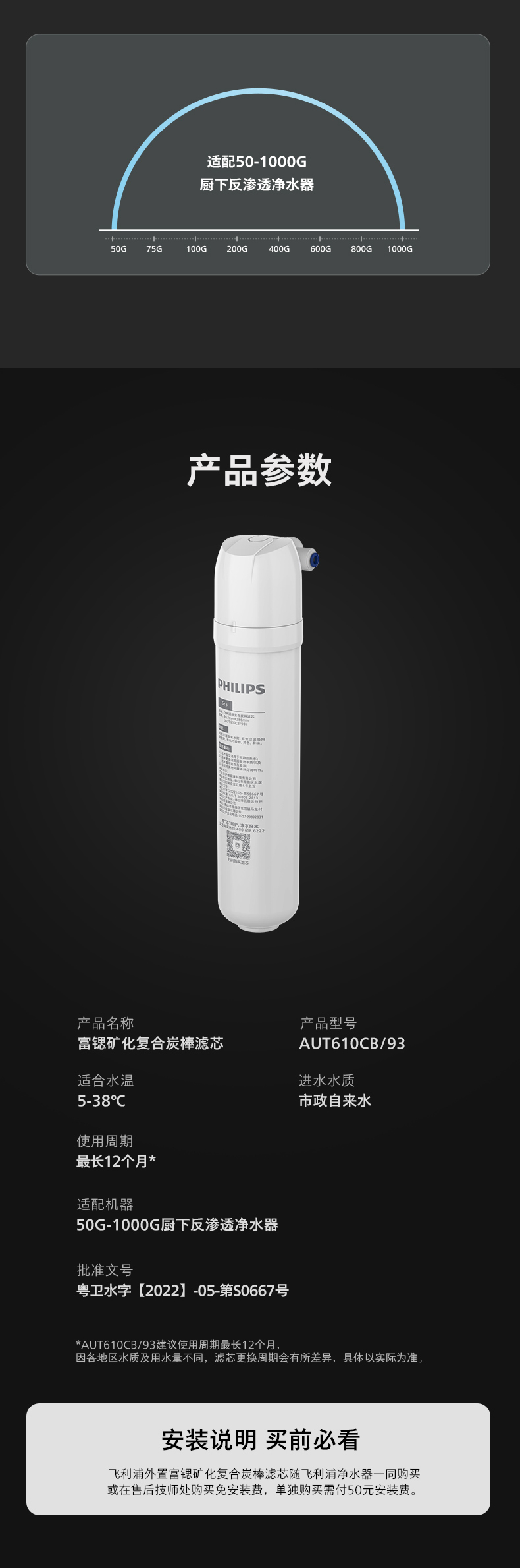 飞利浦(PHILIPS)厨下净水器滤芯AUT610CB/93 适用:AUT610CB/93