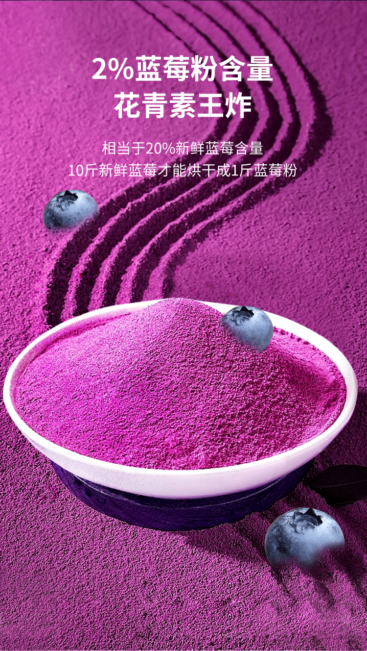 ①添加蓝莓纯粉加入,保护眼睛,增进记忆,减缓衰老