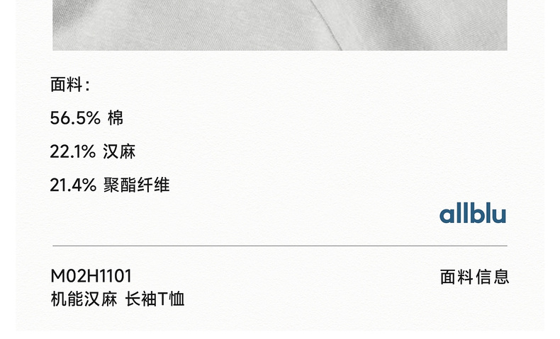 【春Vol.2】allblu男装“不易皱能防晒”26新款【机能汉麻】长袖T恤|清爽