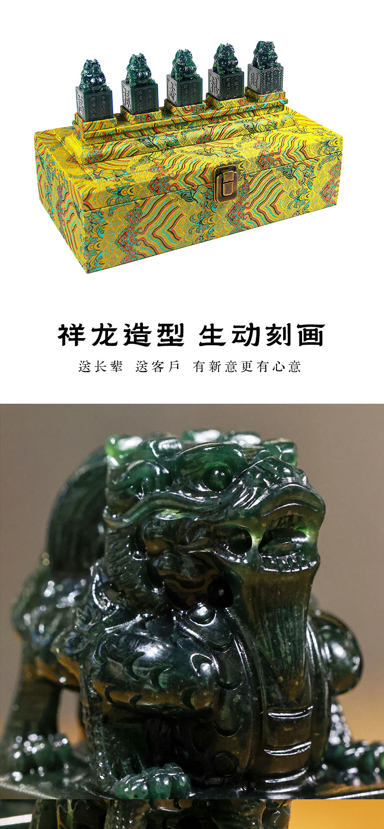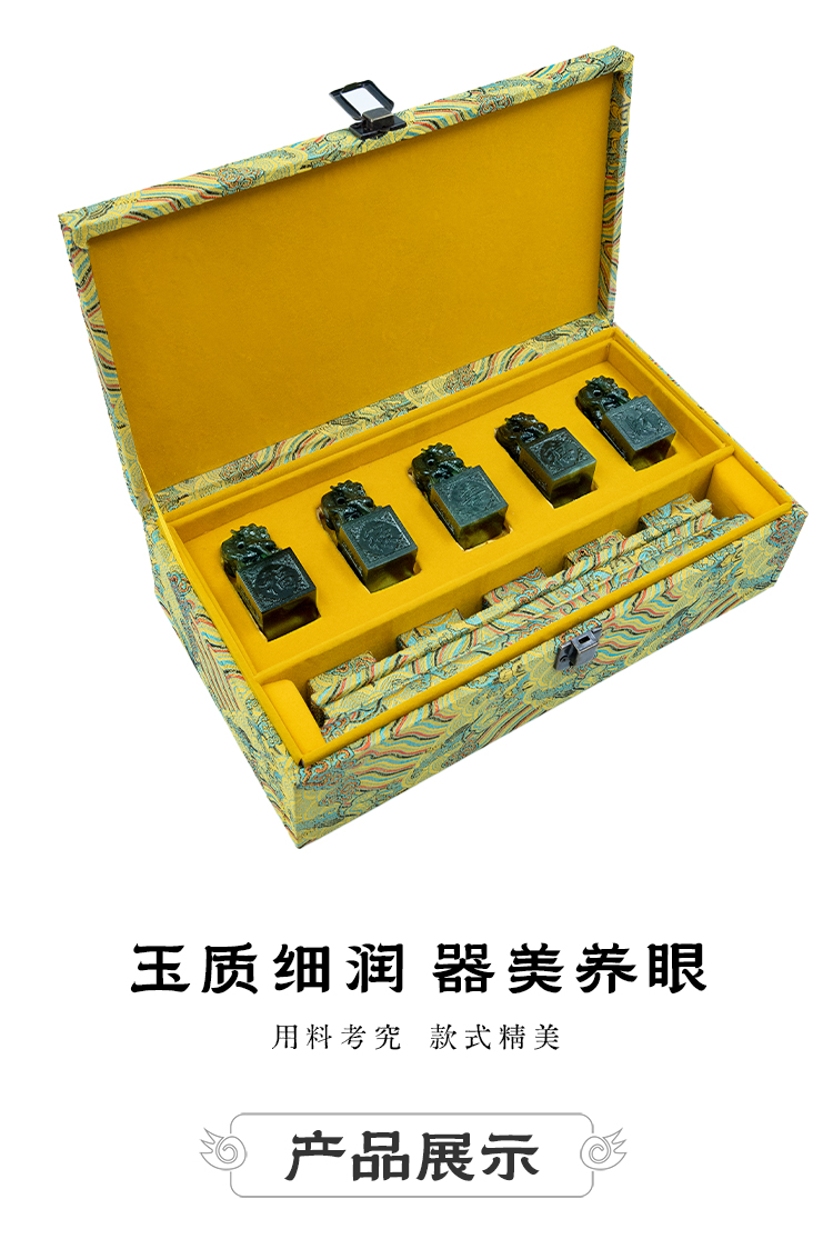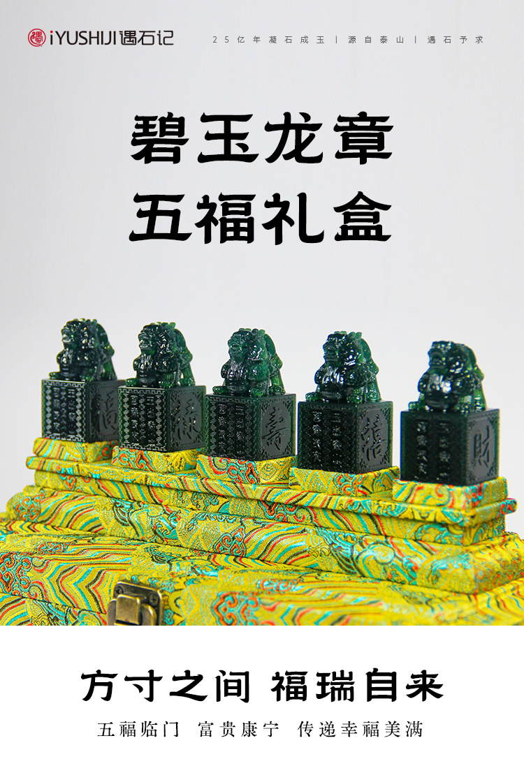 遇石记泰山玉福禄寿禧财五联章印章礼盒