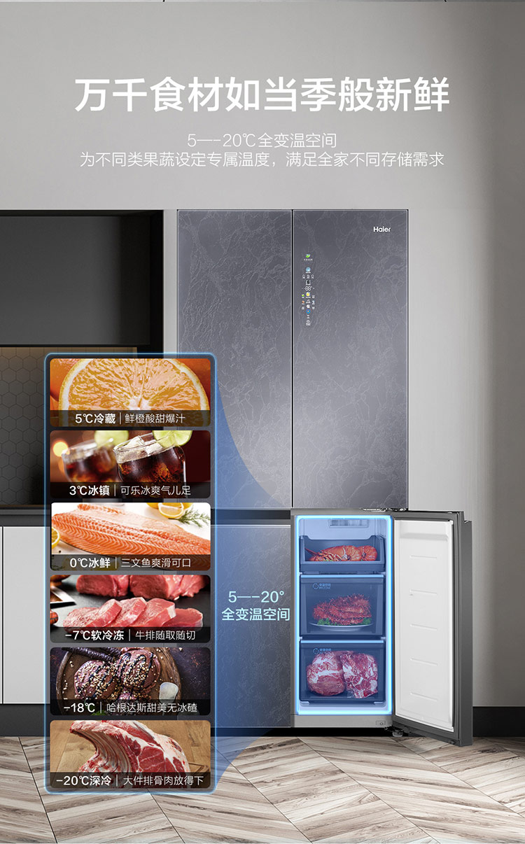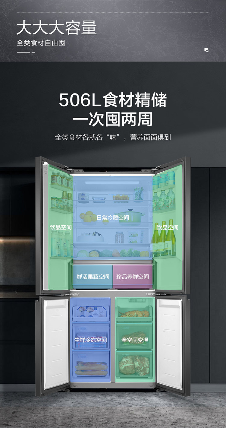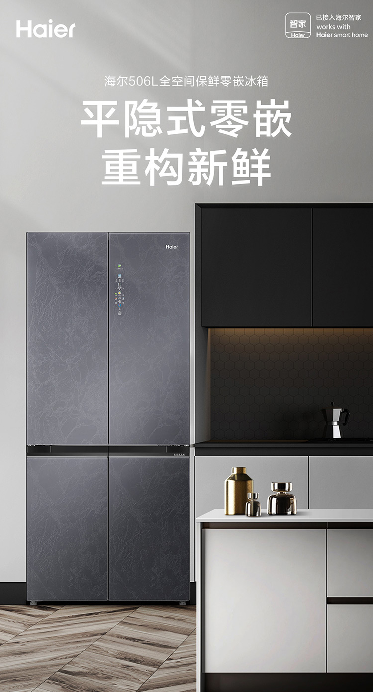 海尔(Haier)506升十字对开门冰箱风冷全空间保鲜平隐式零嵌BCD-506WGHTD14S3U1