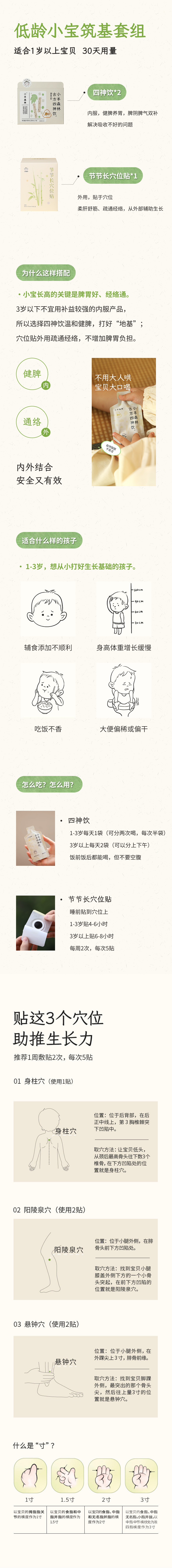 低龄小宝筑基组:节节长穴位贴*1+四神饮*2 加赠小盒四神饮*1盒和正气锦囊(实物)【下单即赠价值299元线上长高课,联系养护顾问领取】