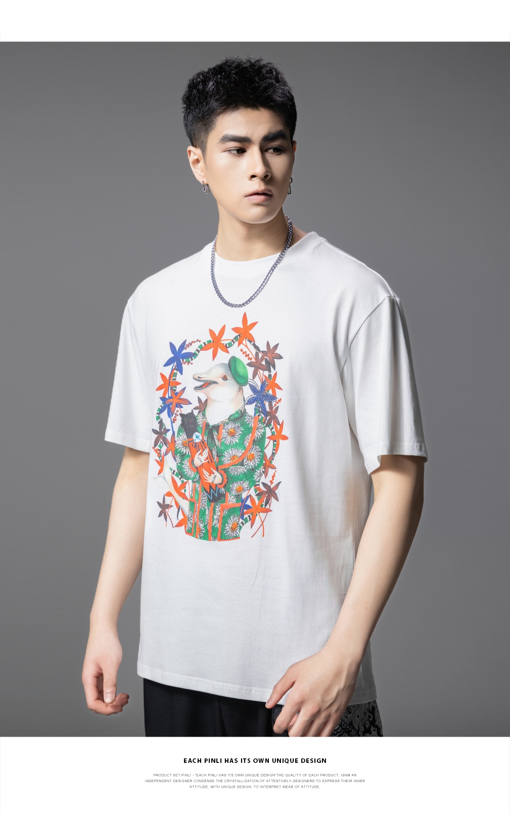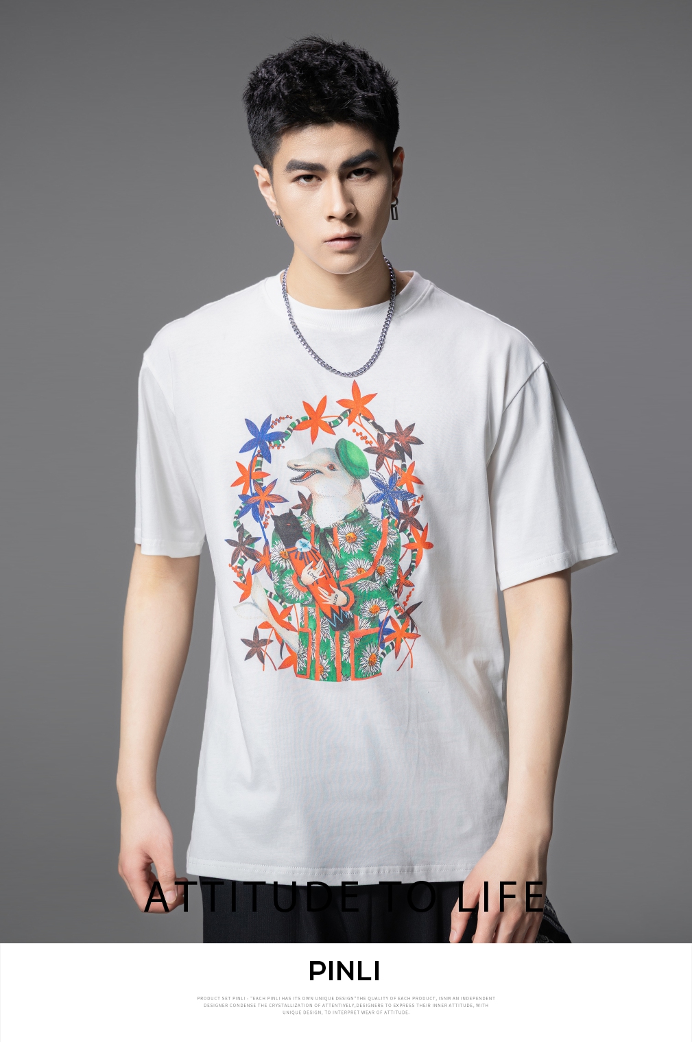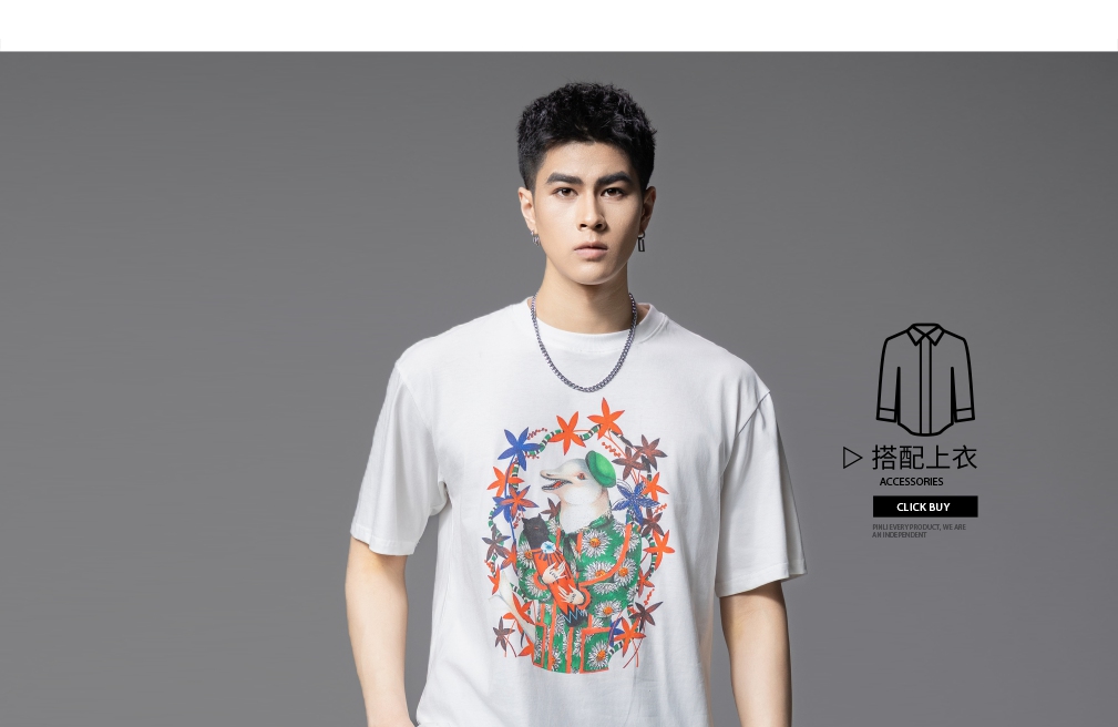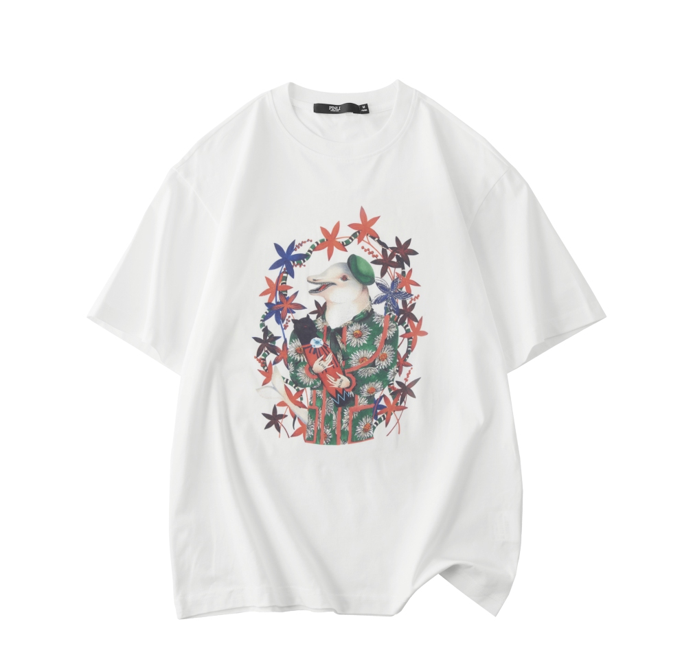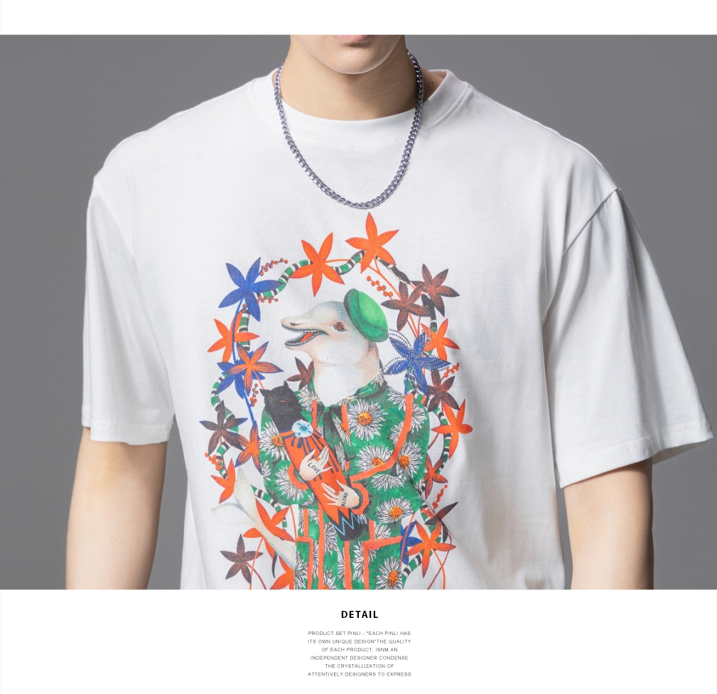 PINLI品立2025夏季新款圆领动物印花烫钻短袖T恤男士体恤衫上衣潮BG252111039