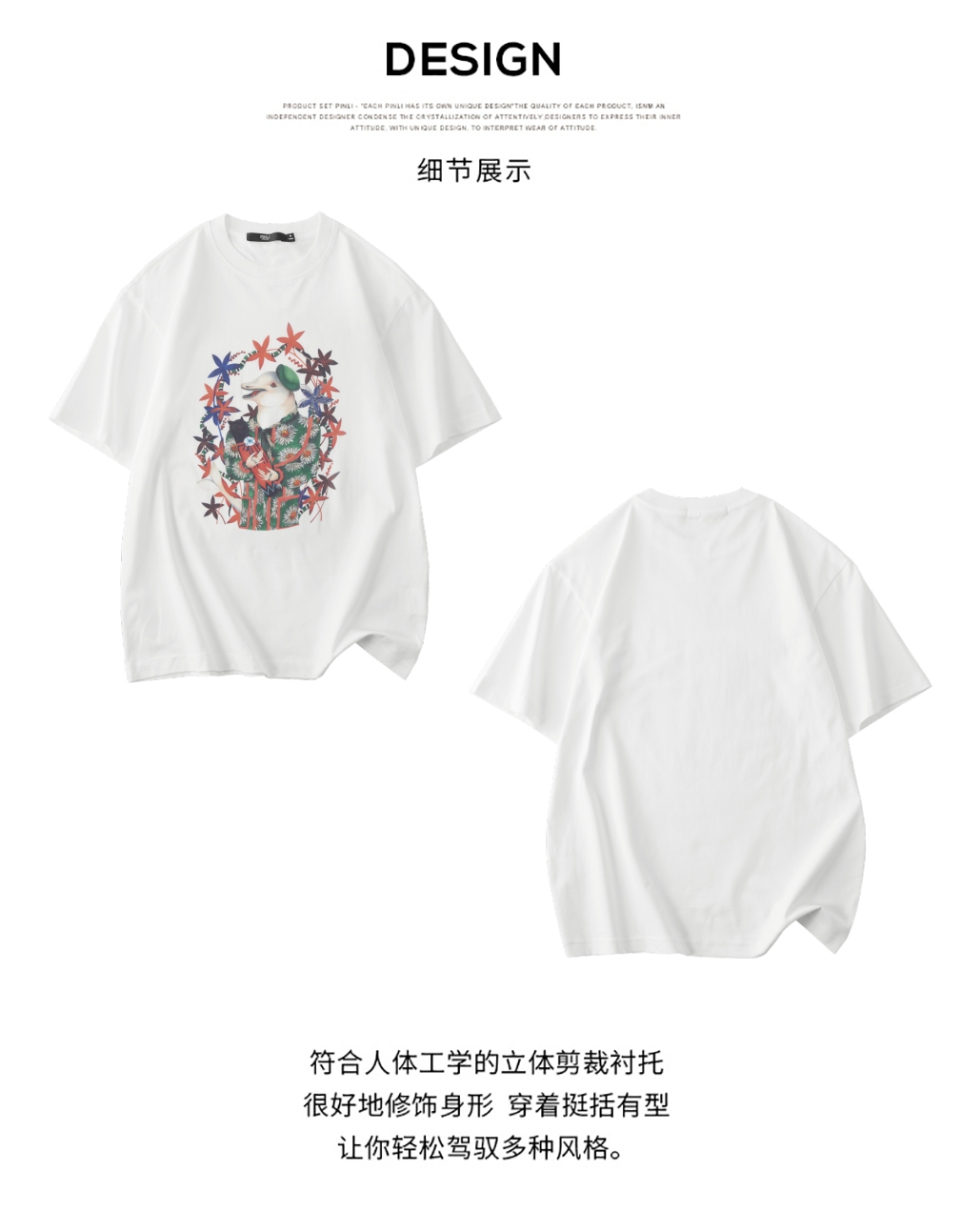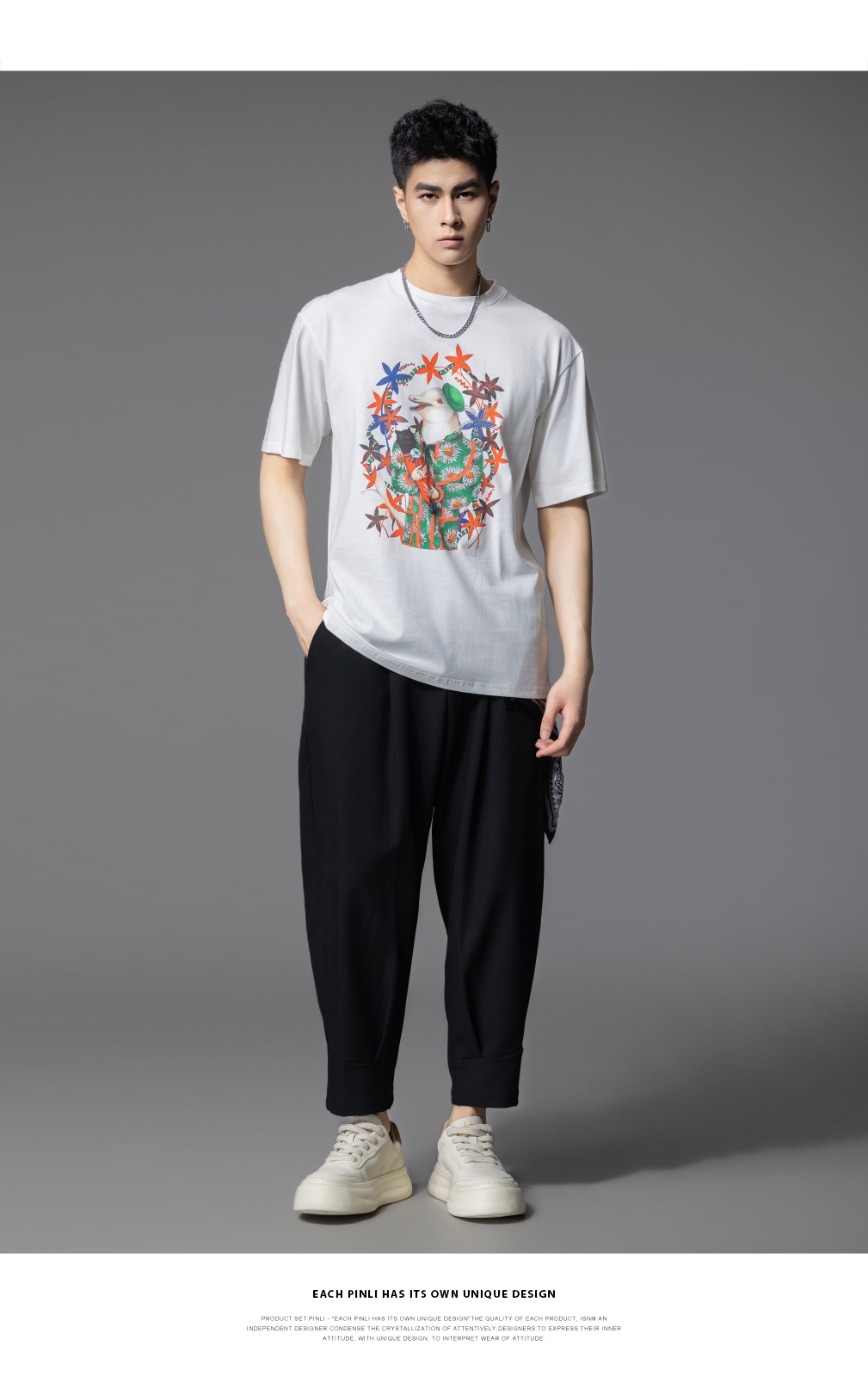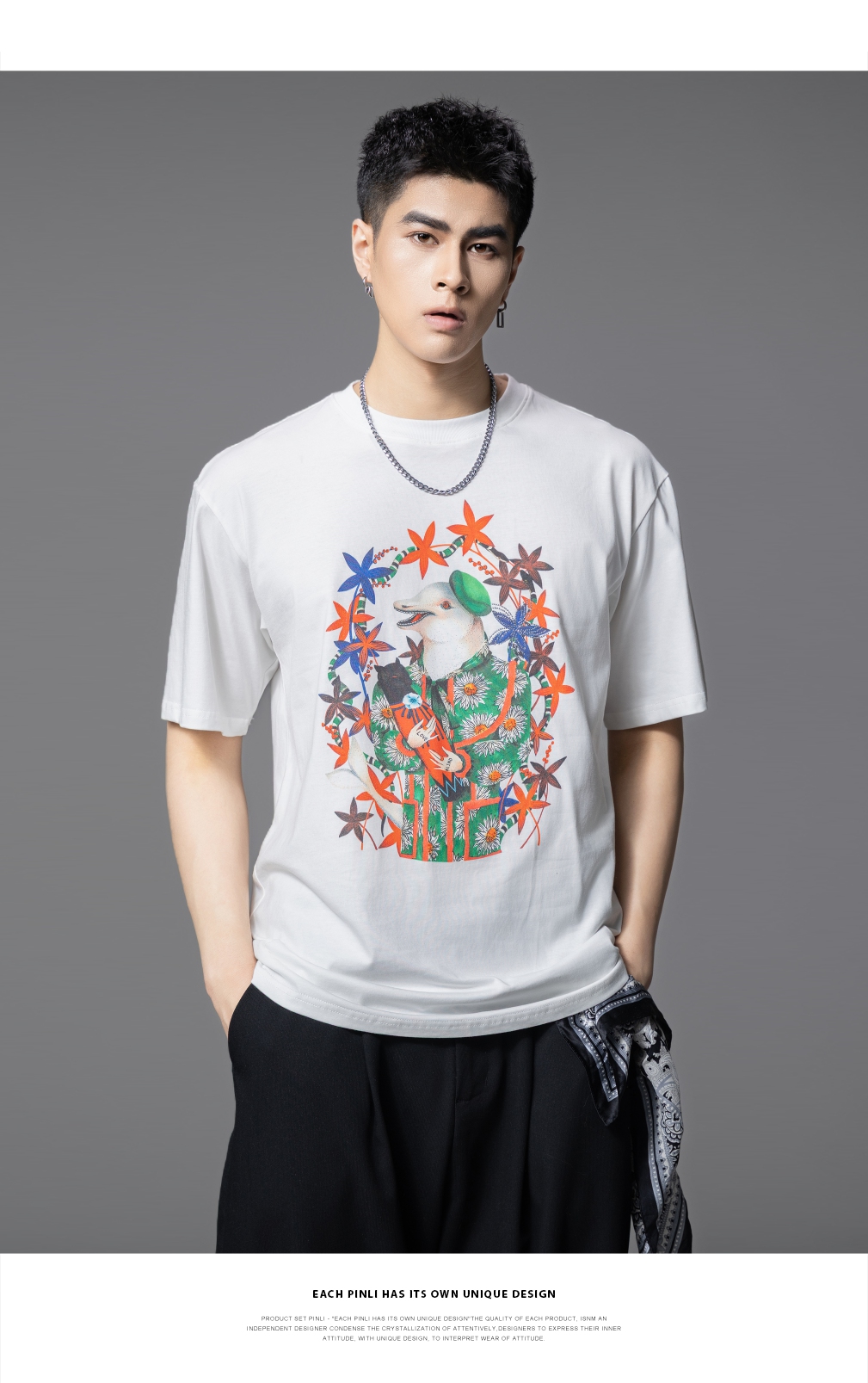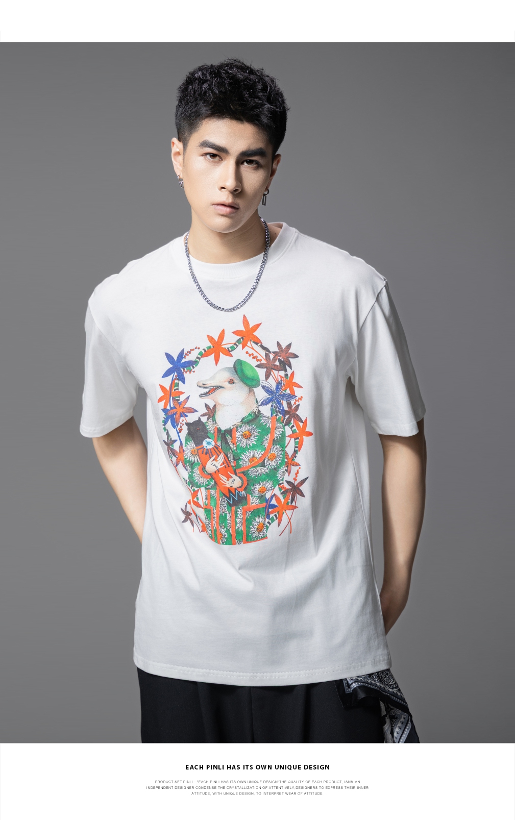 PINLI品立2025夏季新款圆领动物印花烫钻短袖T恤男士体恤衫上衣潮BG252111039