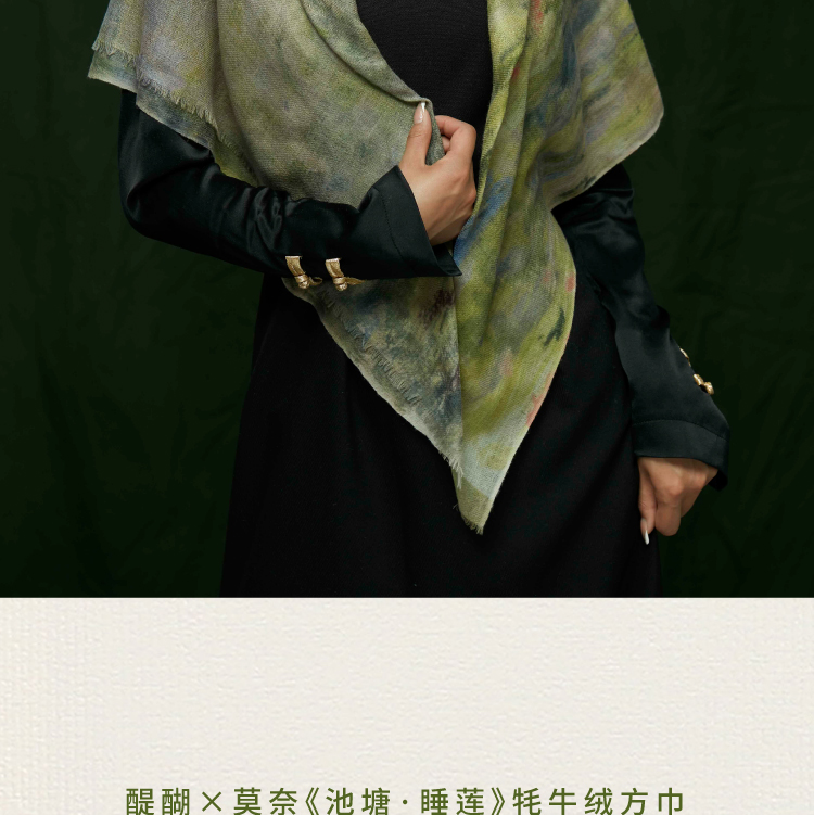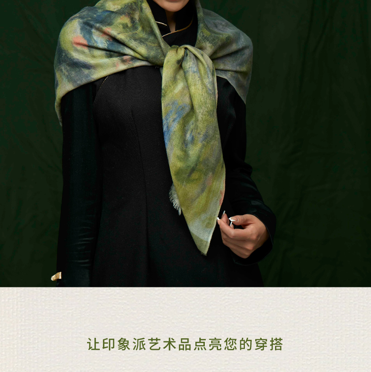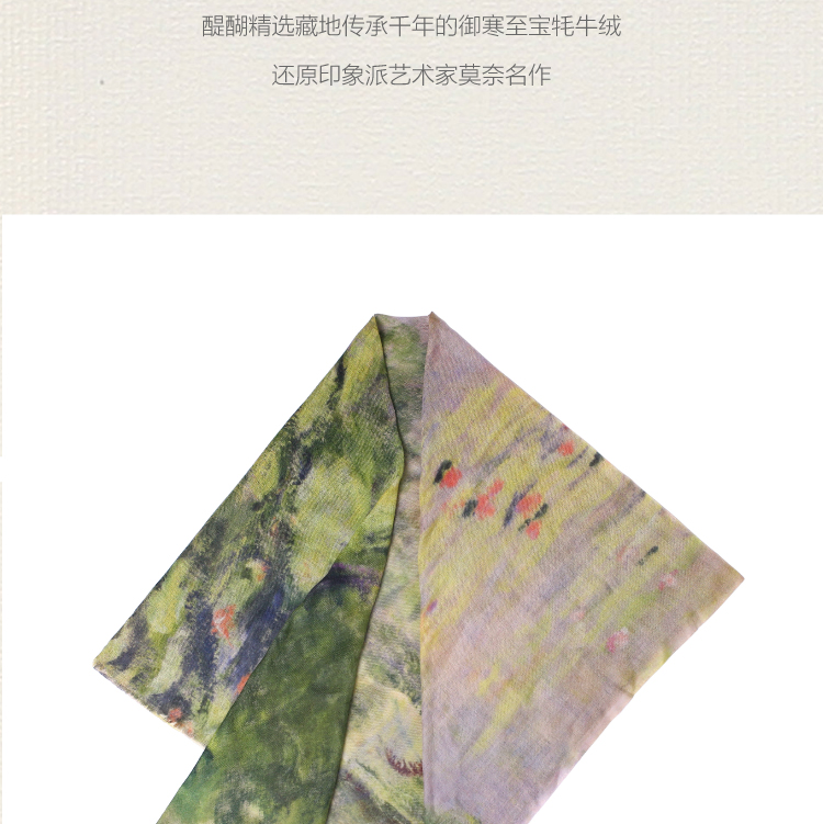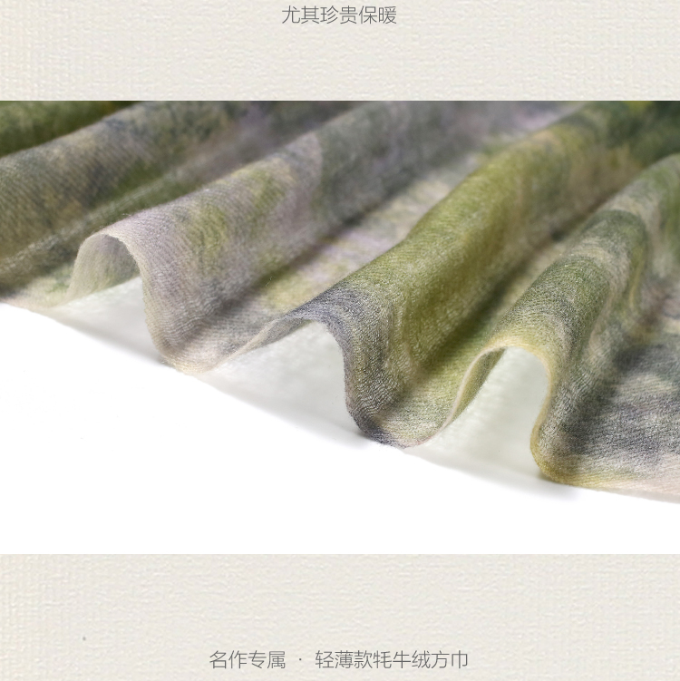 醍醐莫奈池塘睡莲牦牛绒围巾印象派油画轻奢薄款防晒牦牛绒方巾