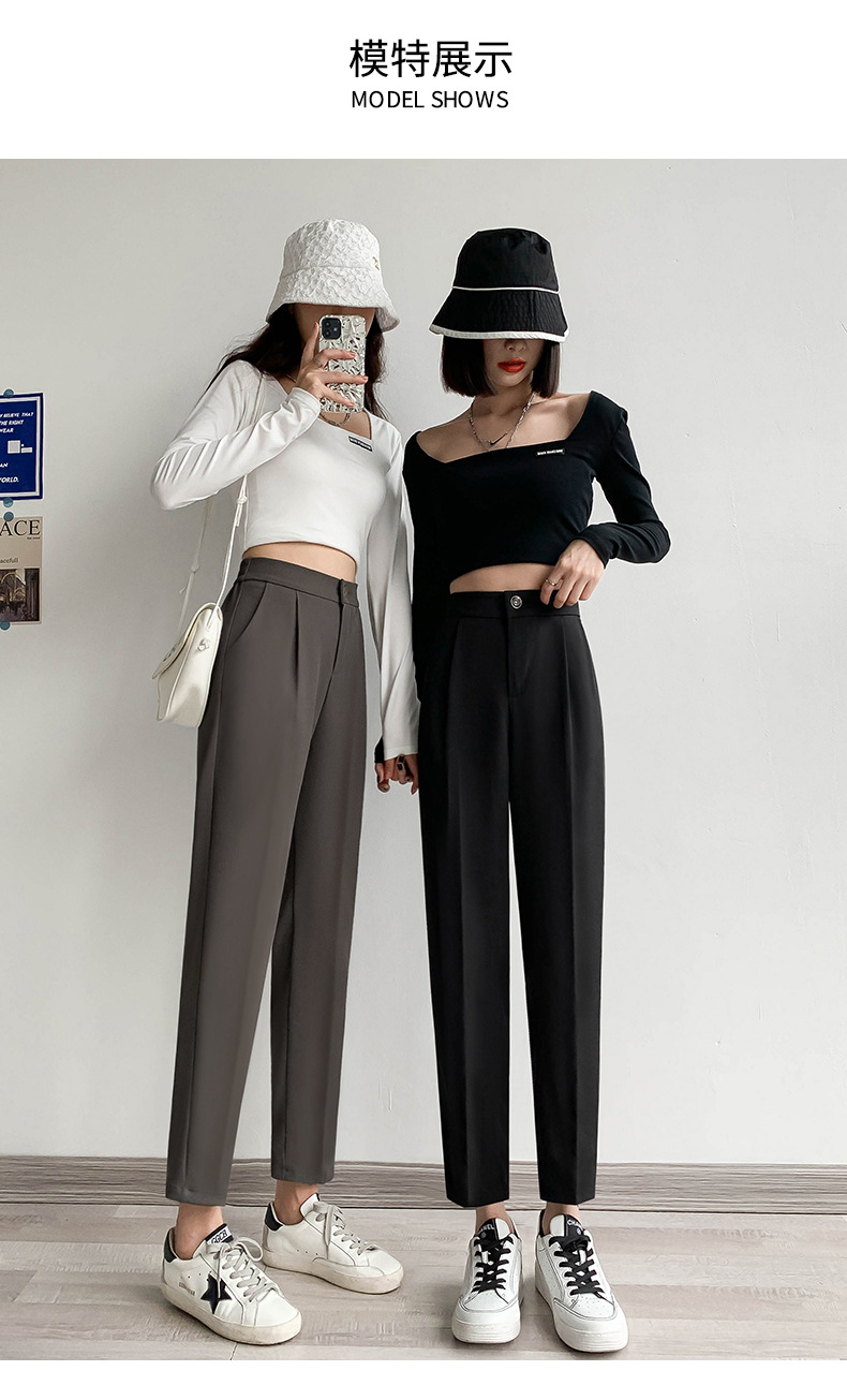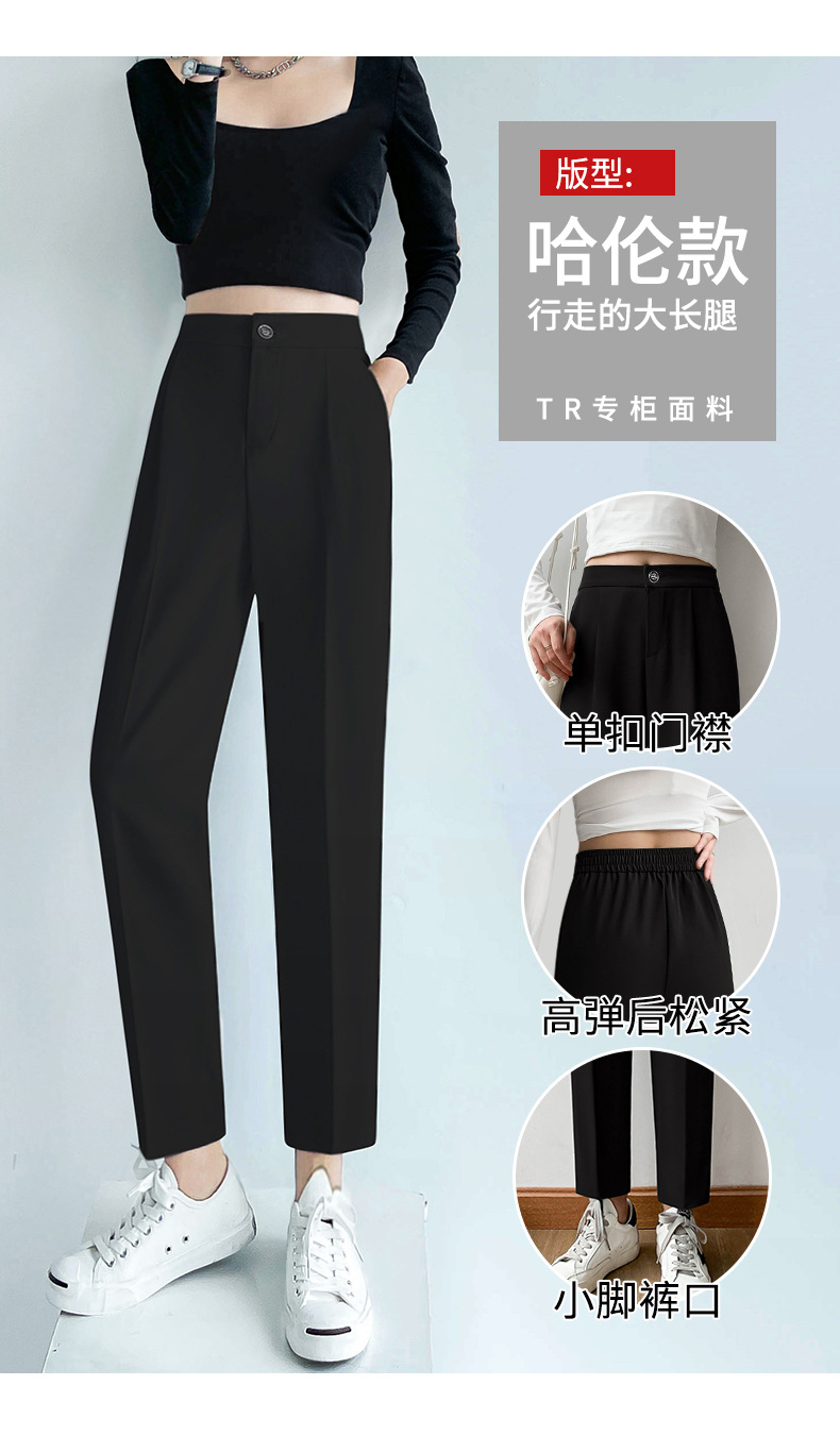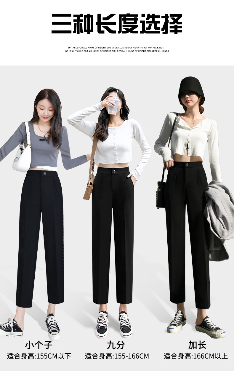 夏季新款女士黑色西装哈伦裤,宽松舒适,直筒垂感烟管裤,九分高腰显瘦,展现女性优雅与自信。适合商务会议、晚宴等多种场合穿着,让你成为聚光焦点。