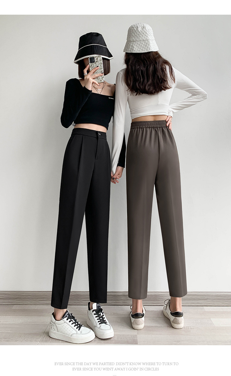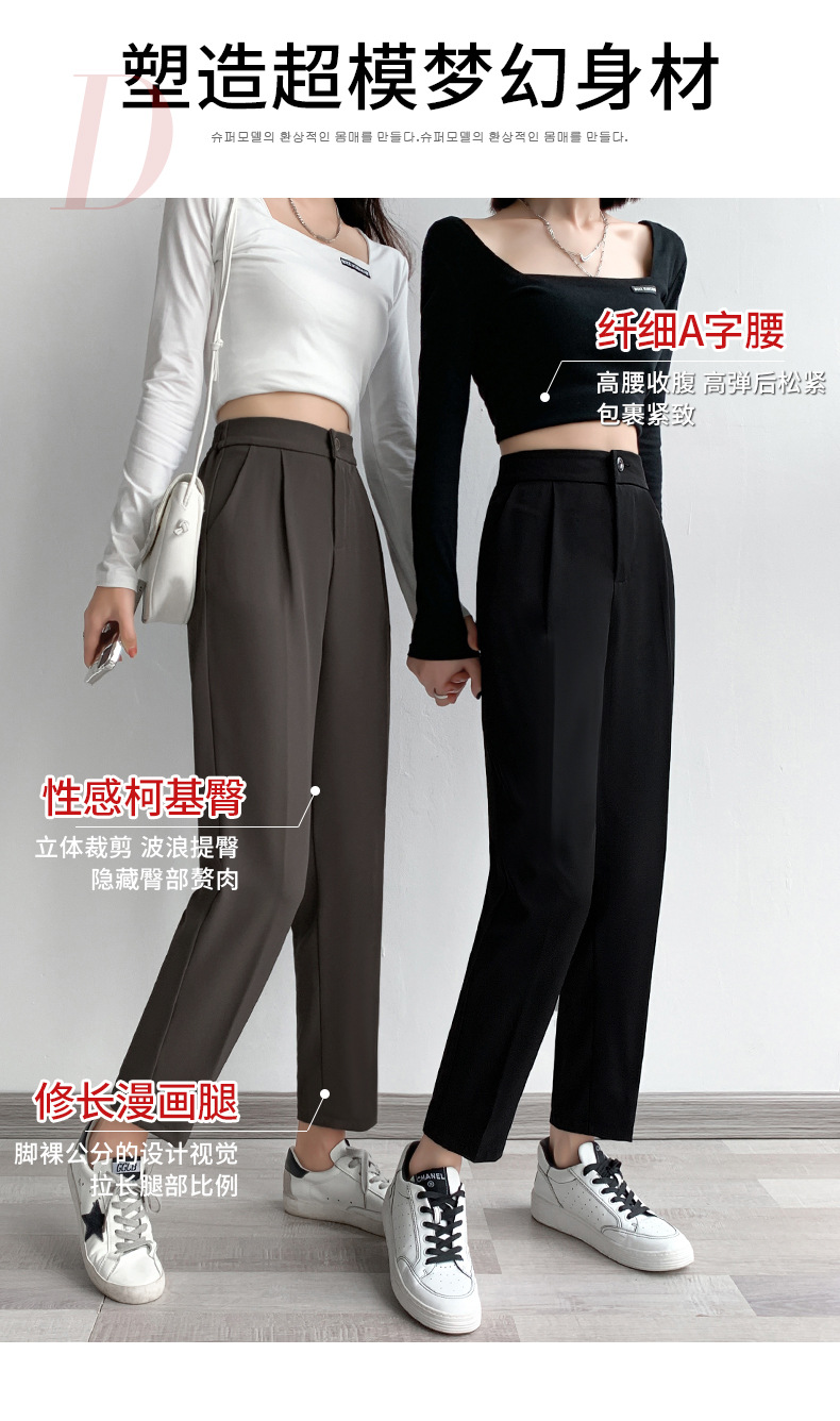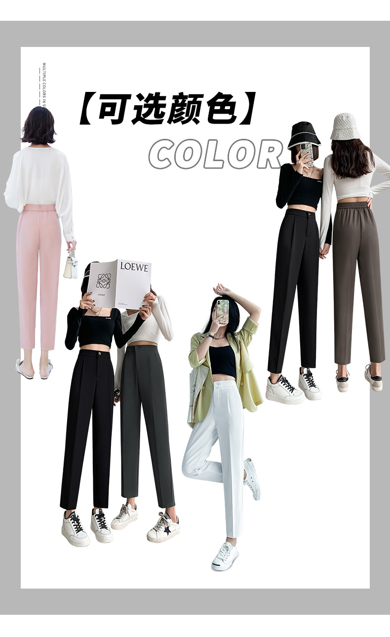 夏季新款女士黑色西装哈伦裤,宽松舒适,直筒垂感烟管裤,九分高腰显瘦,展现女性优雅与自信。适合商务会议、晚宴等多种场合穿着,让你成为聚光焦点。