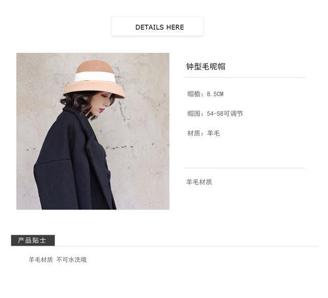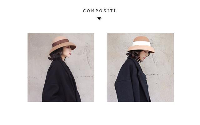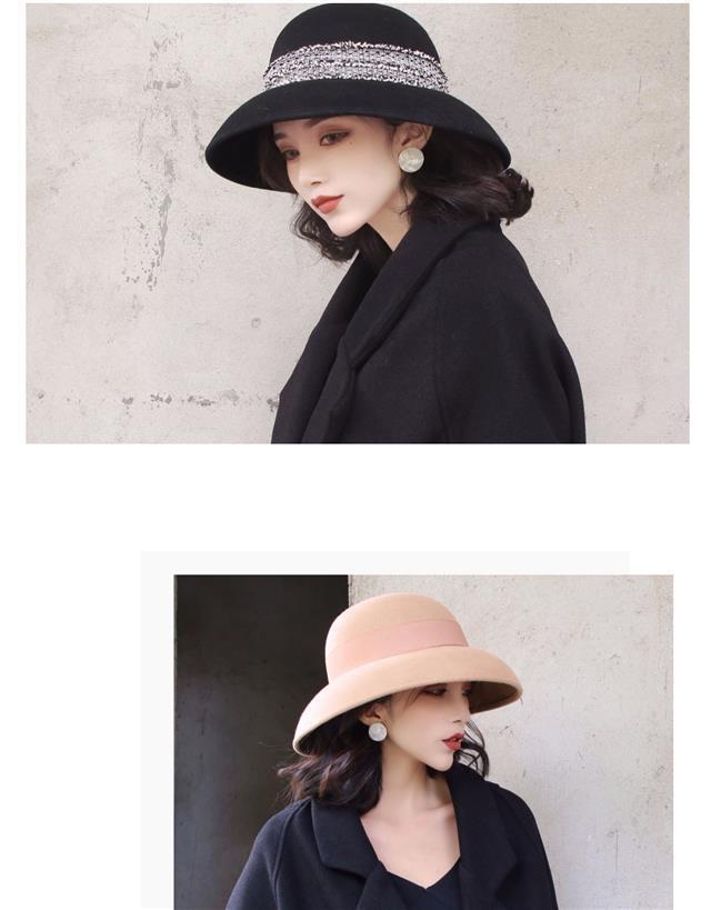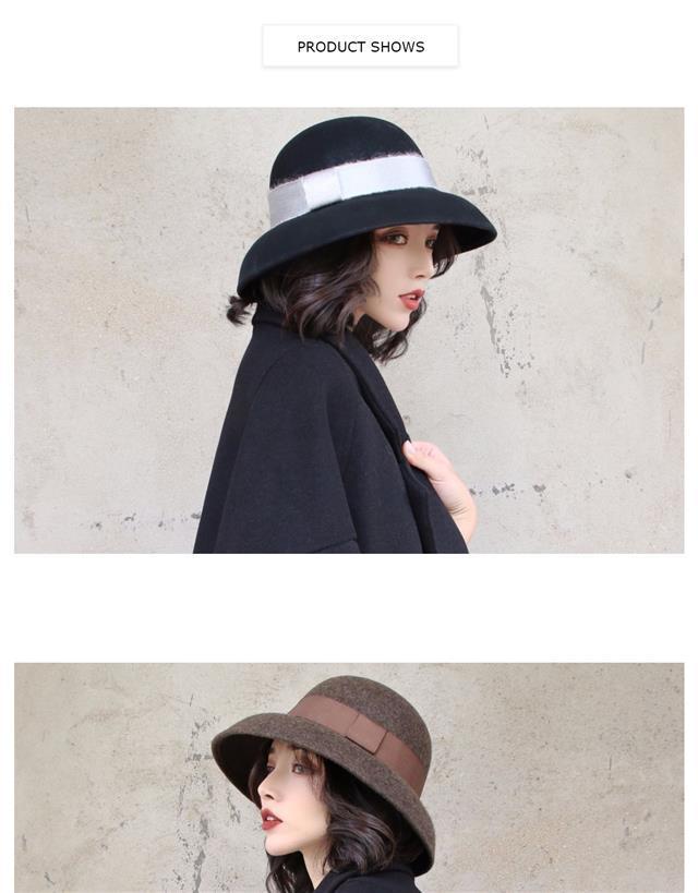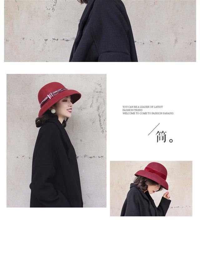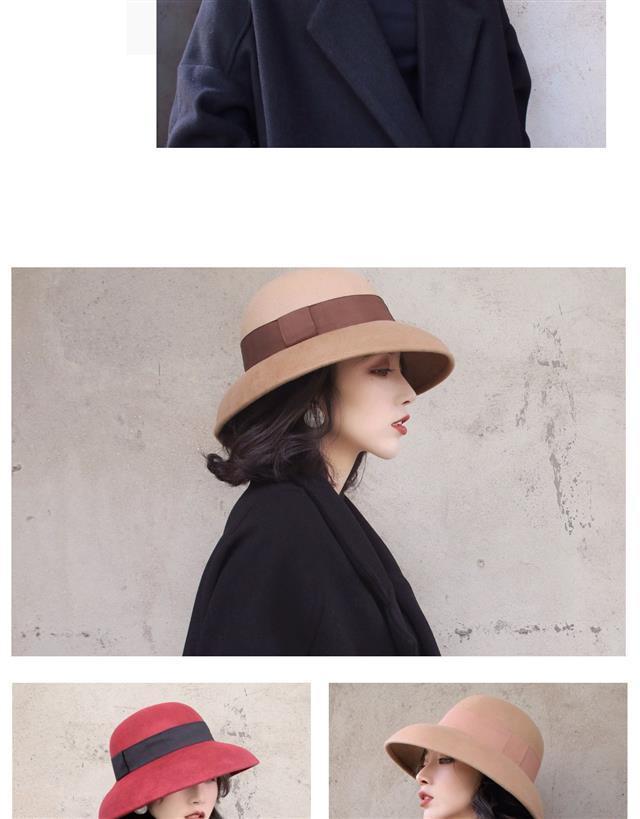 复古赫本风秋冬法式复古羊毛呢女士礼帽盆帽