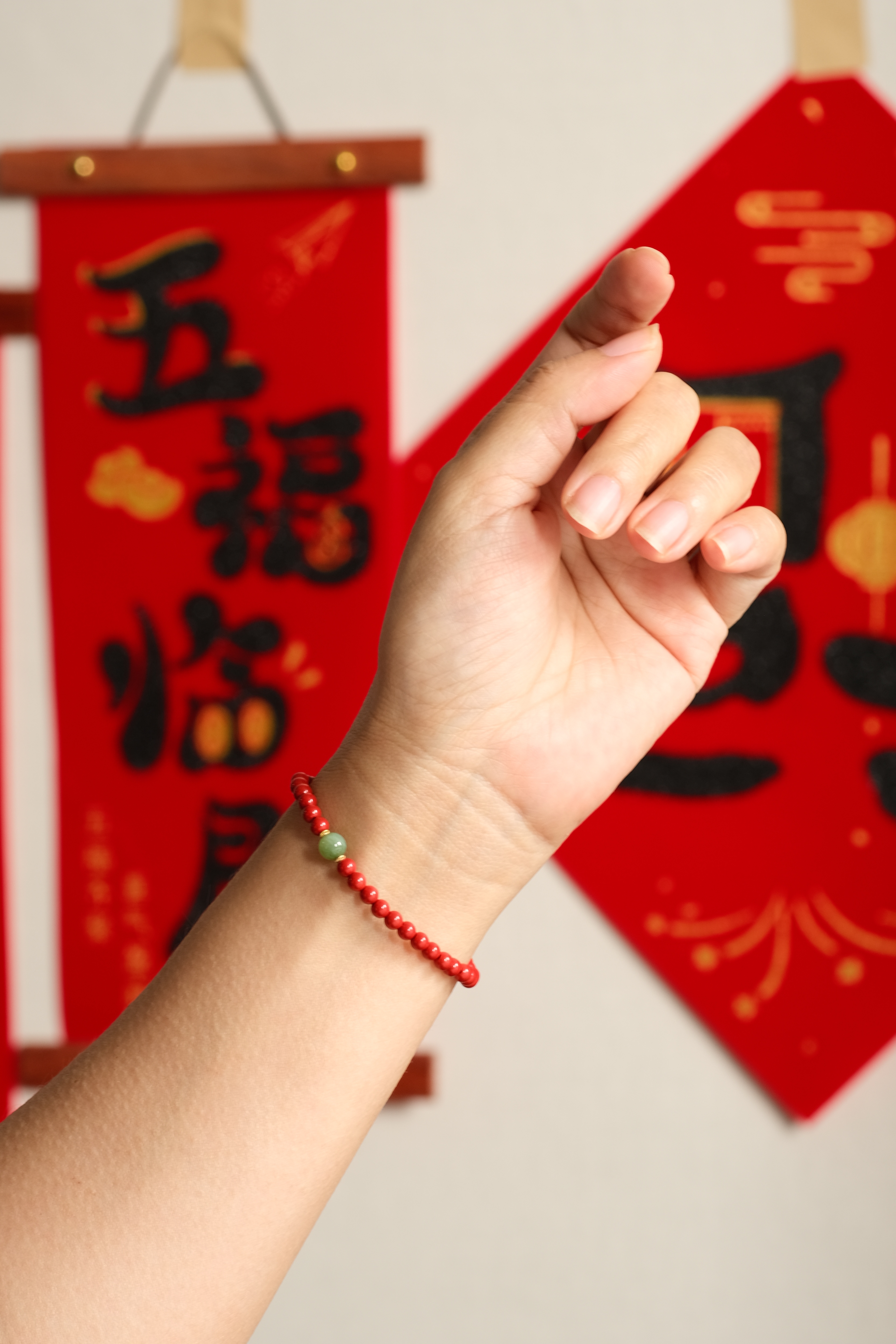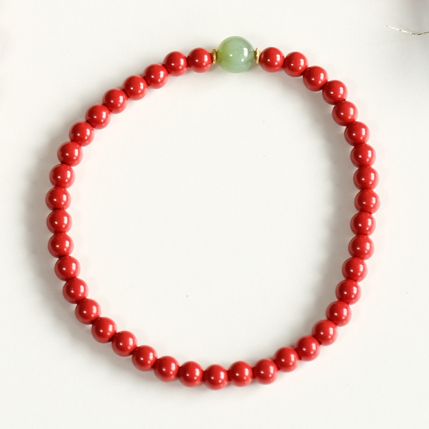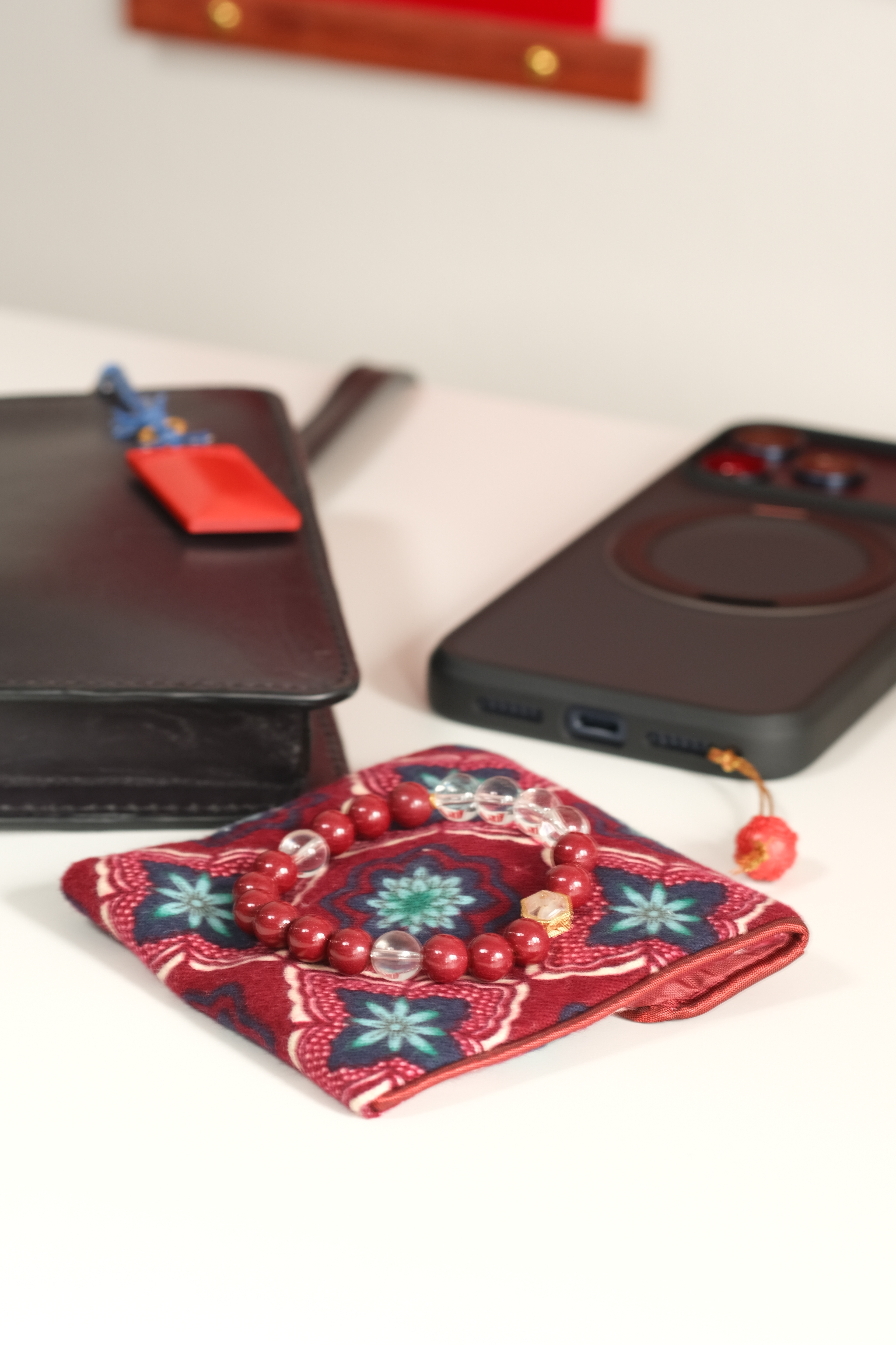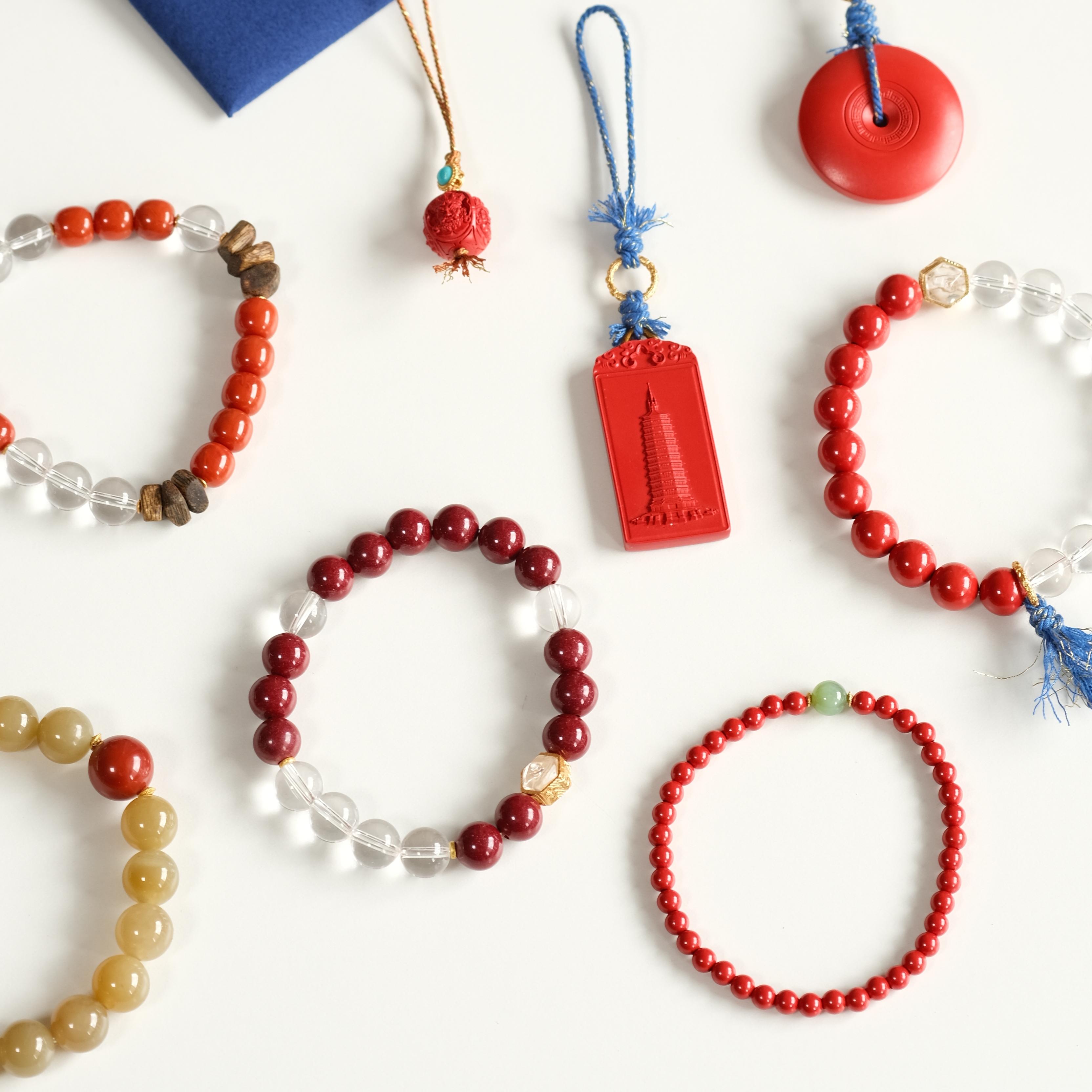 产品亮点:红砂纯正热烈,分别搭配水晶或温润的粉青碧玉,平衡五行而灵动。