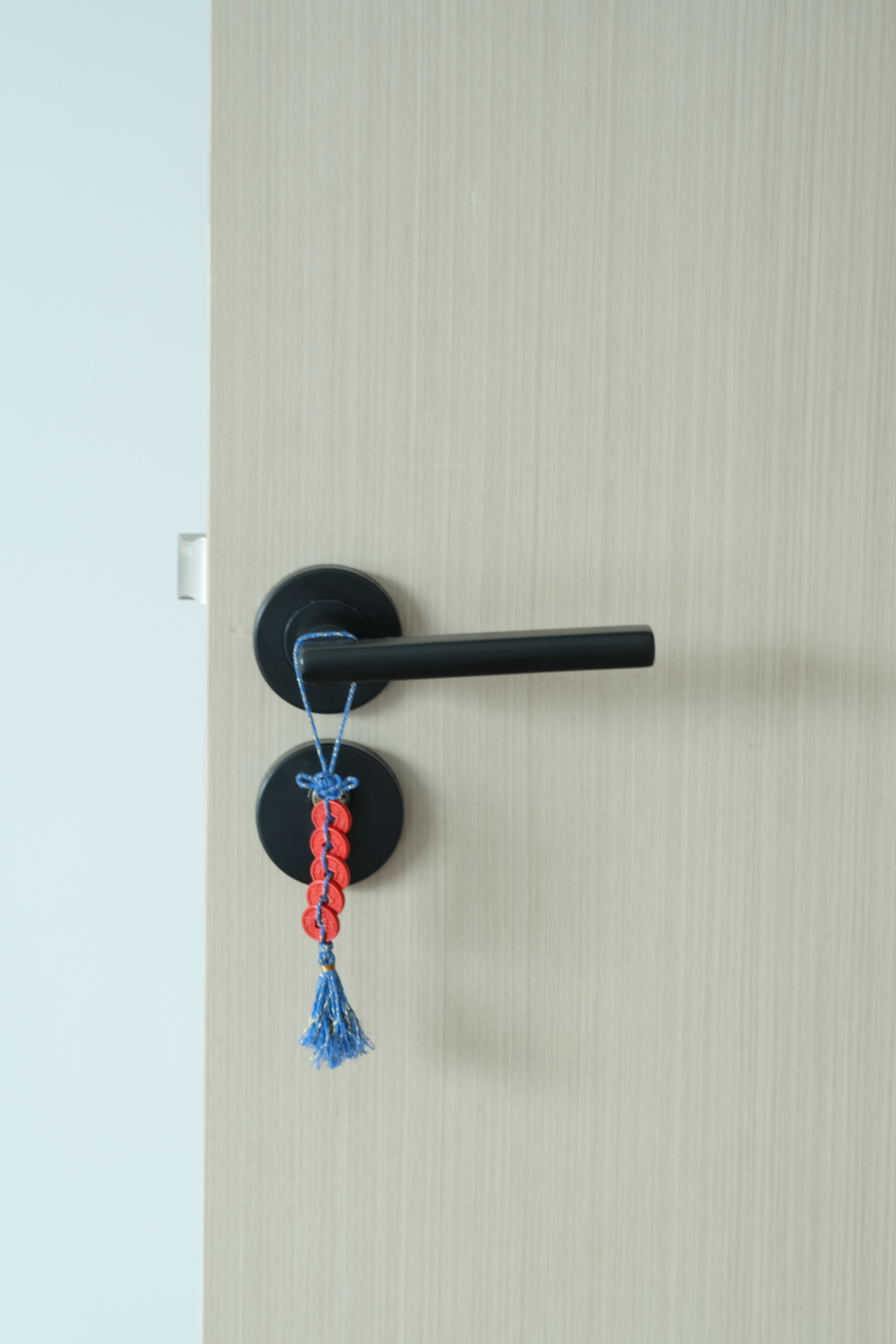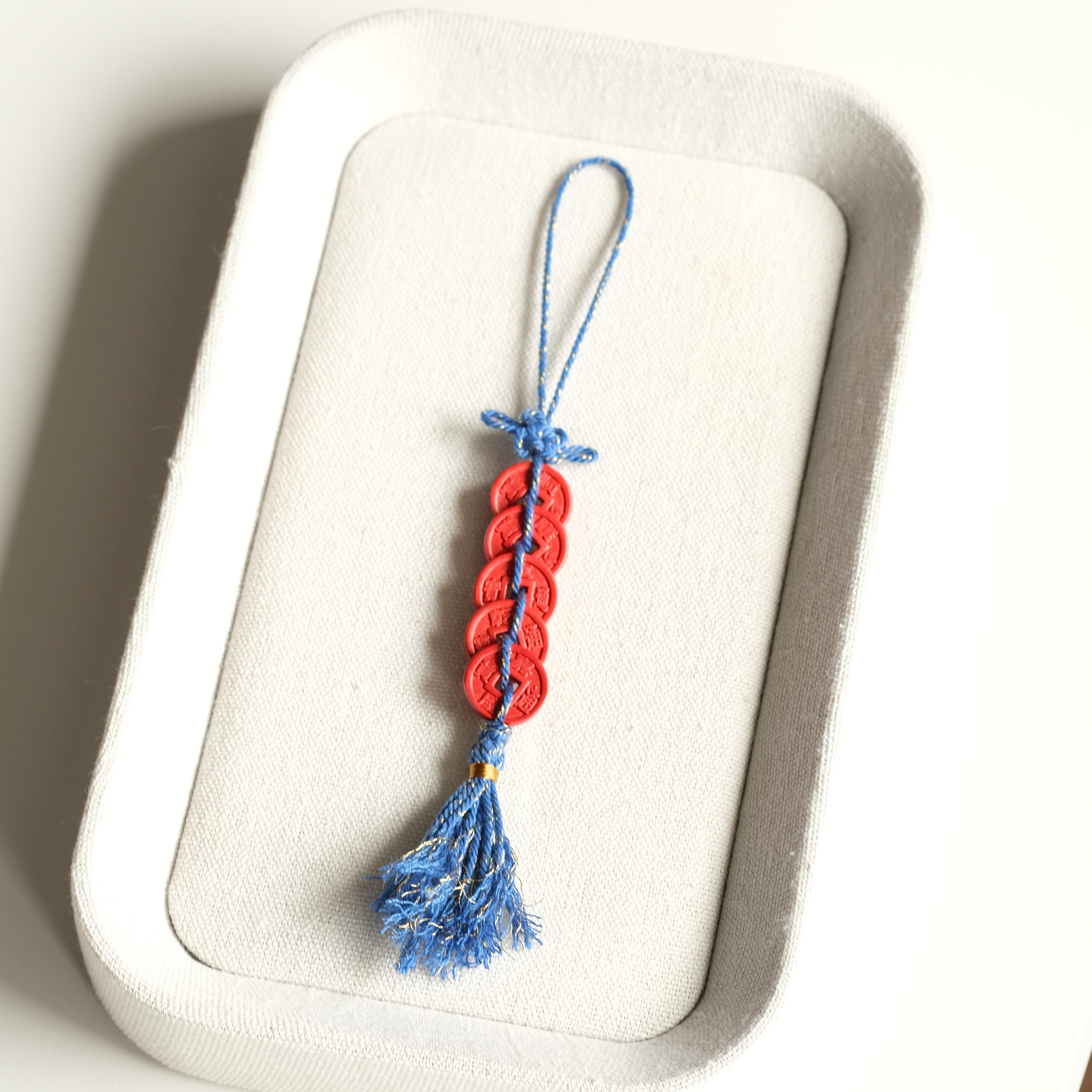 守护原理:结合五行铜钱与蓝色属水的特性,悬挂于家中大门,有助于净化入门气场,防邪祟干扰,特别寓意保护家中小孩、老人及自身能量(三火)偏低者的安宁。