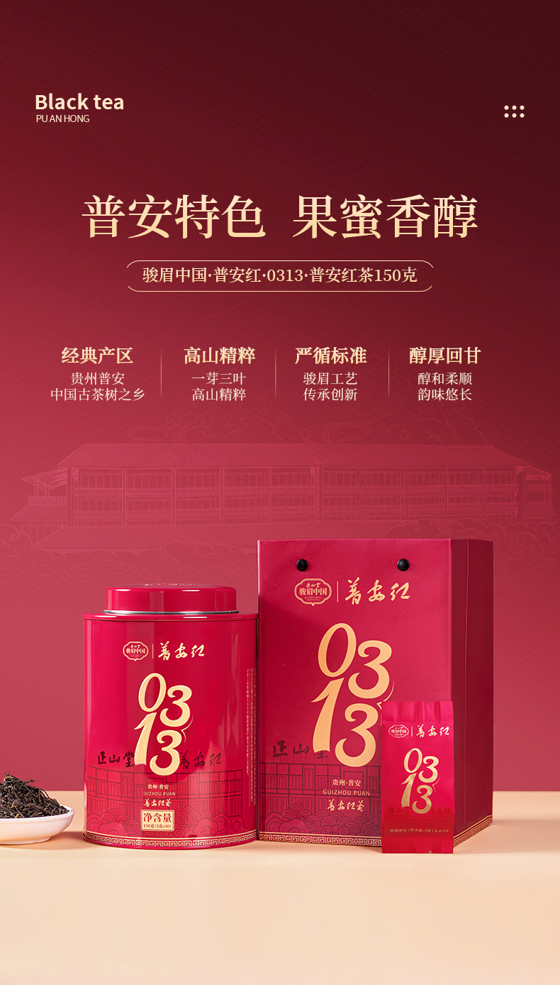 正山堂普安红 0313红茶 骏眉中国贵州大叶种茶叶罐装送礼150g