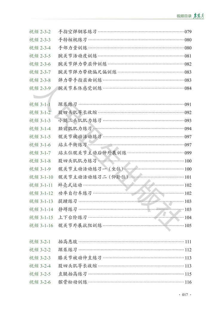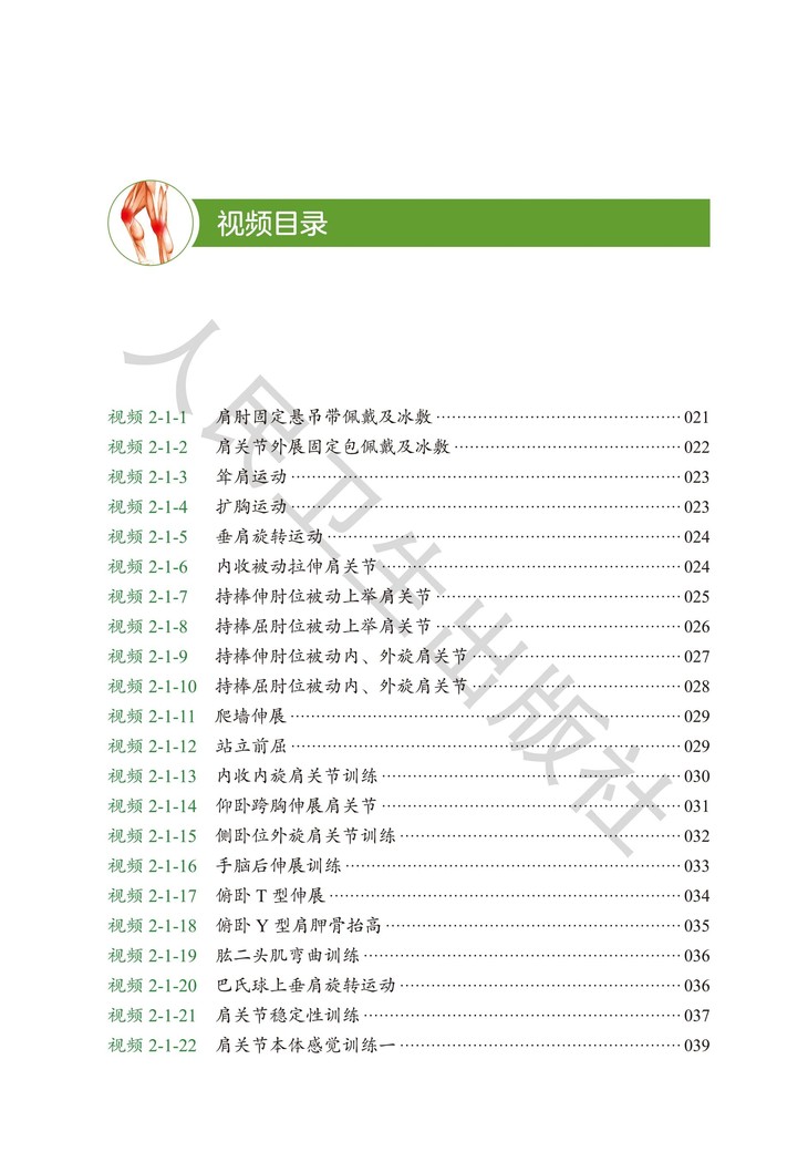 全书收录近80个视频,由运动医学专科医生演示每一个康复动作,高清拍摄,多机位、多角度展示,配以旁白解说和关键文字提示,满足不同康复阶段需求。