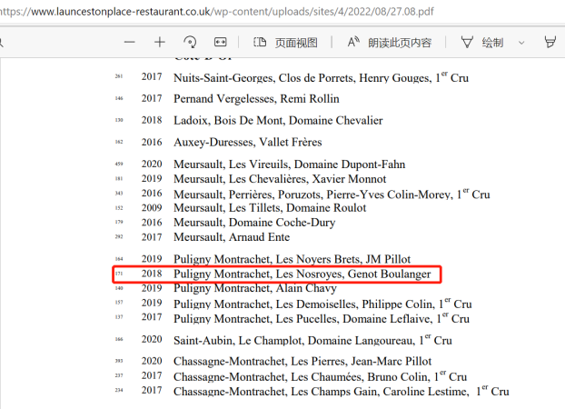 ⑤ 勃艮第另一权威、葡萄酒大师克莱夫·科茨(Clive Coates MW)也将其收录进《勃艮第葡萄酒》(The Wines of Burgundy)中,作为默尔索村的典型代表之一。