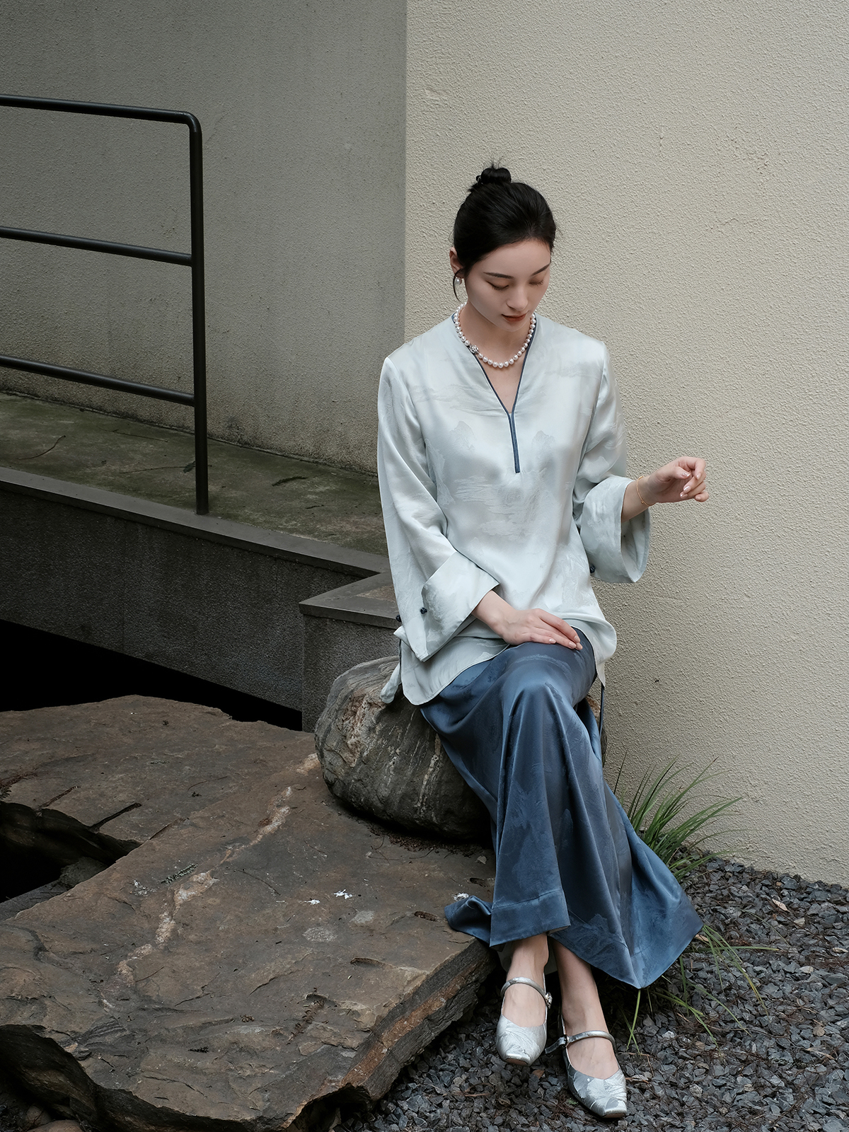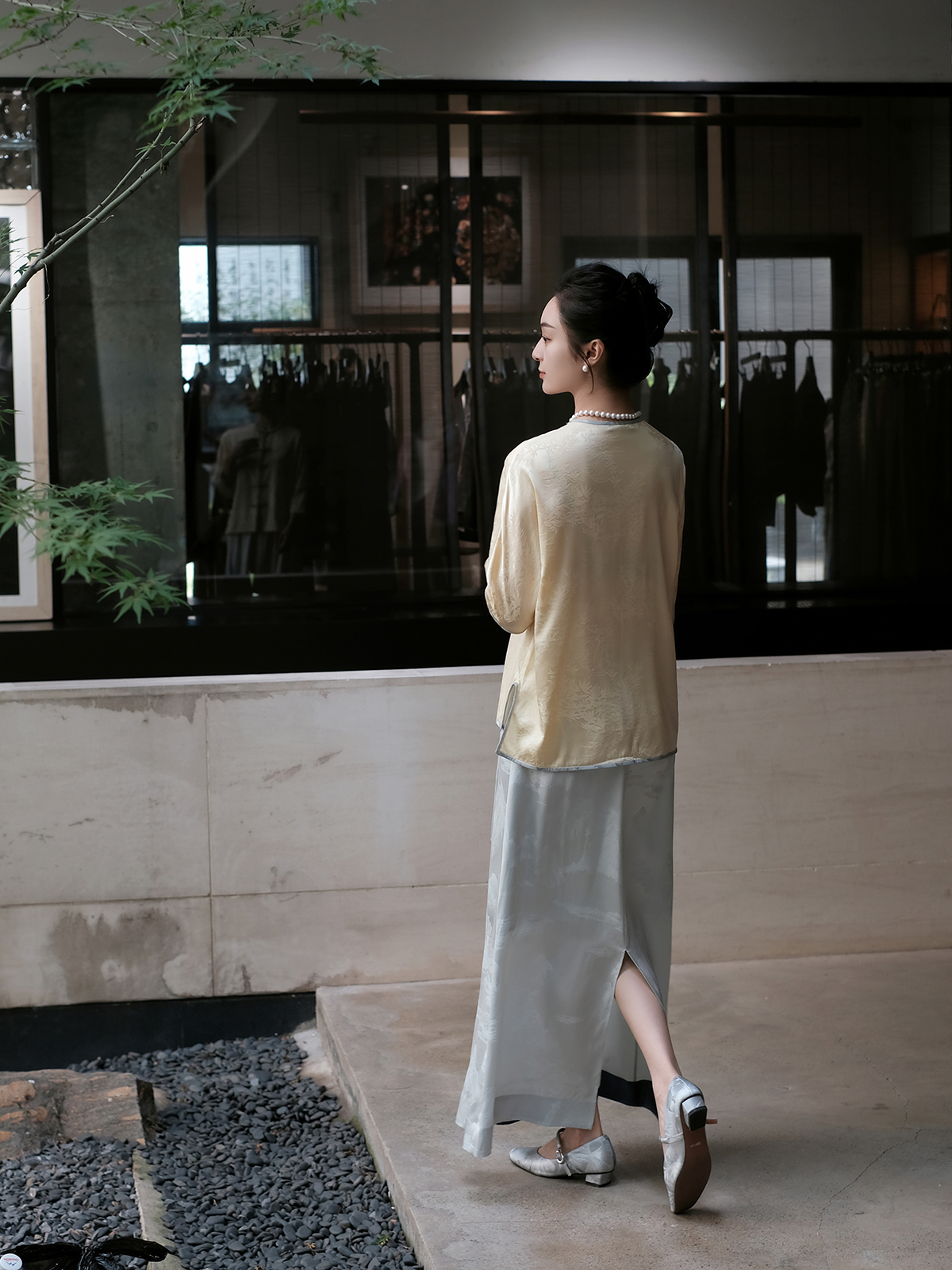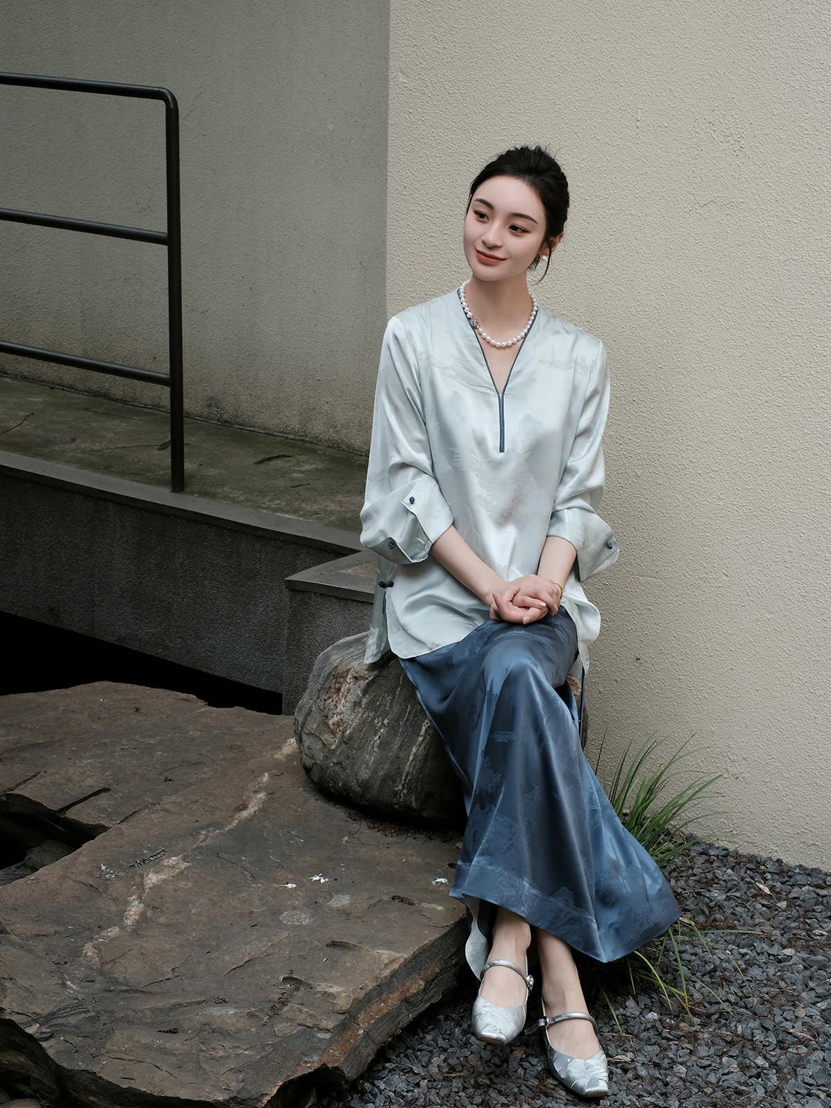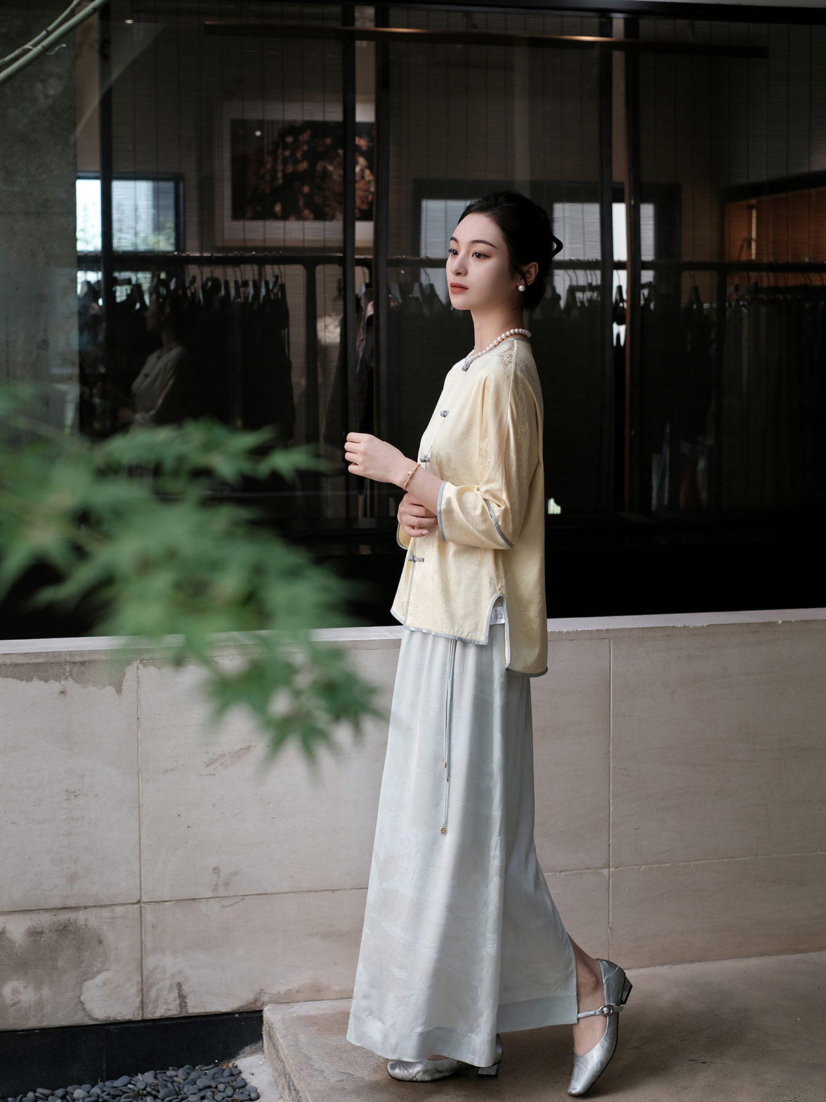 盛唐婧 |桃夭粉新中式国风提花上衣