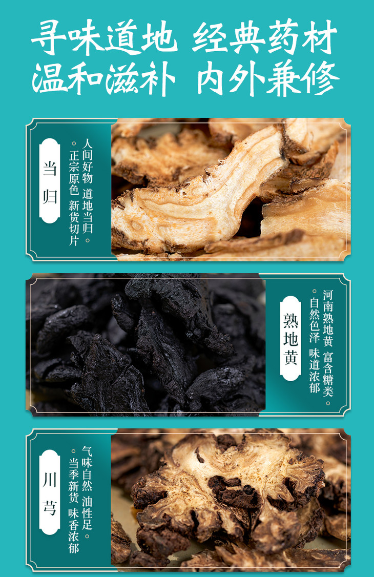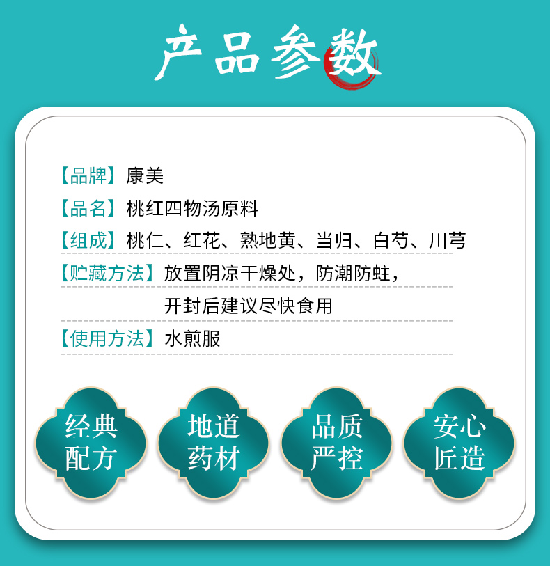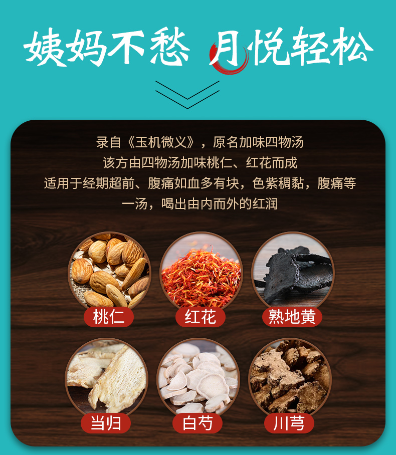 桃红四物汤51g/剂(桃仁/红花/熟地黄/当归/白芍/川芎) 录自《玉机微义》