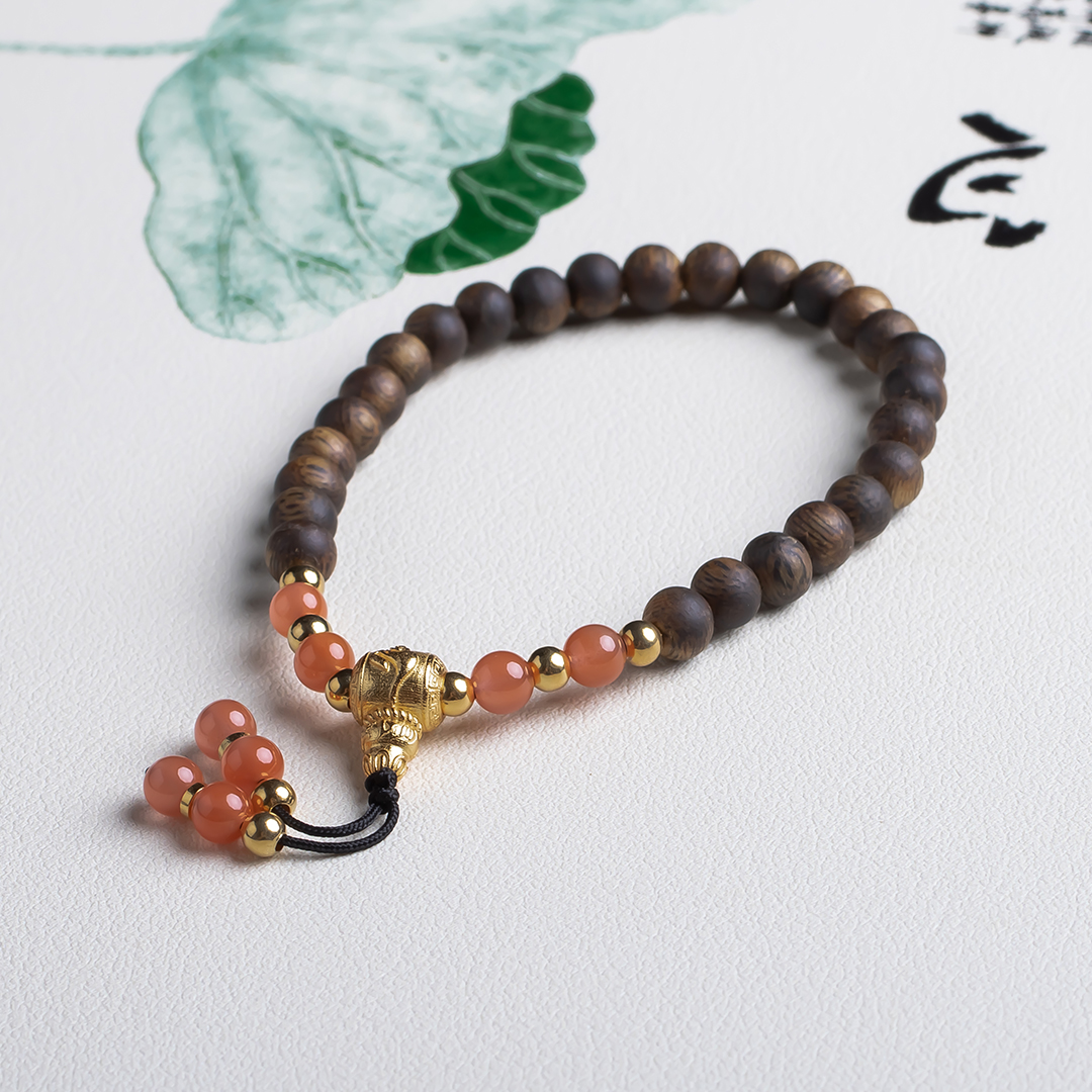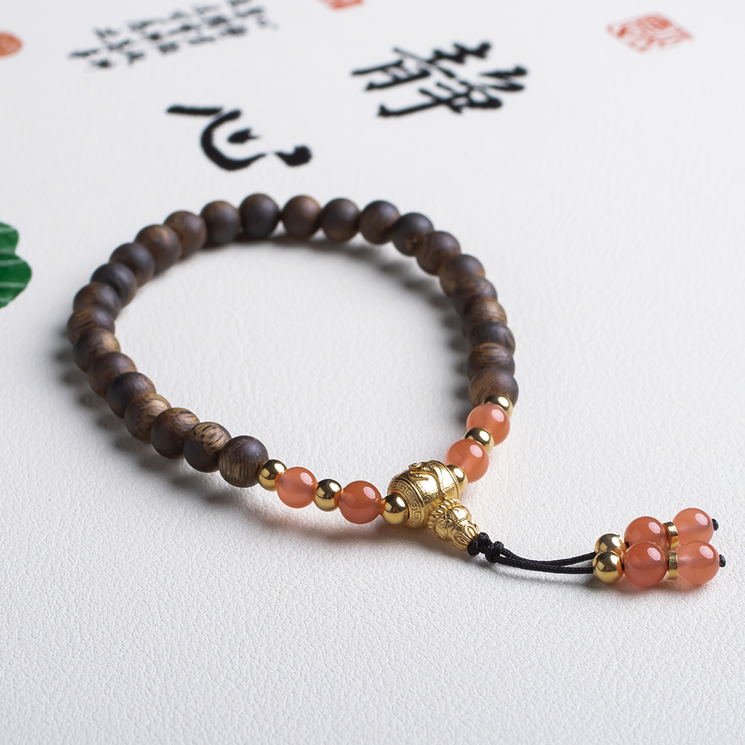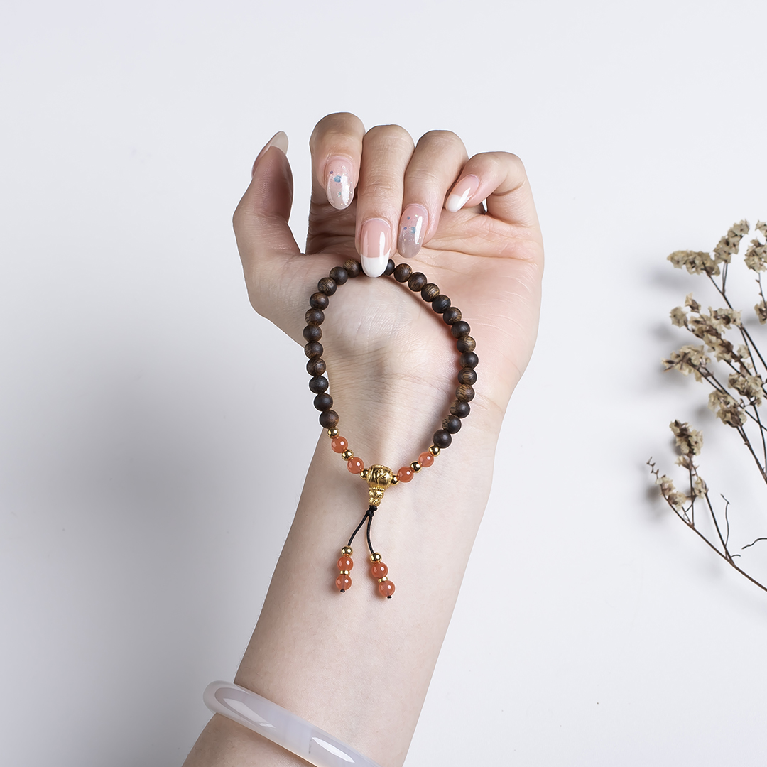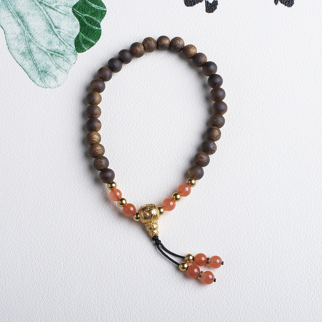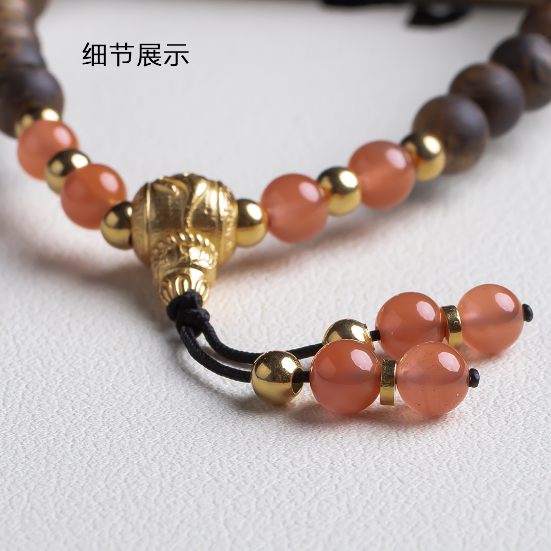 xy0489沉香+南红国风手持手串.银,天然沉香约5.4mm,原色原味,香味自然清甜,颜值漂亮的樱桃约的南红国风款式穿搭,上手时尚。