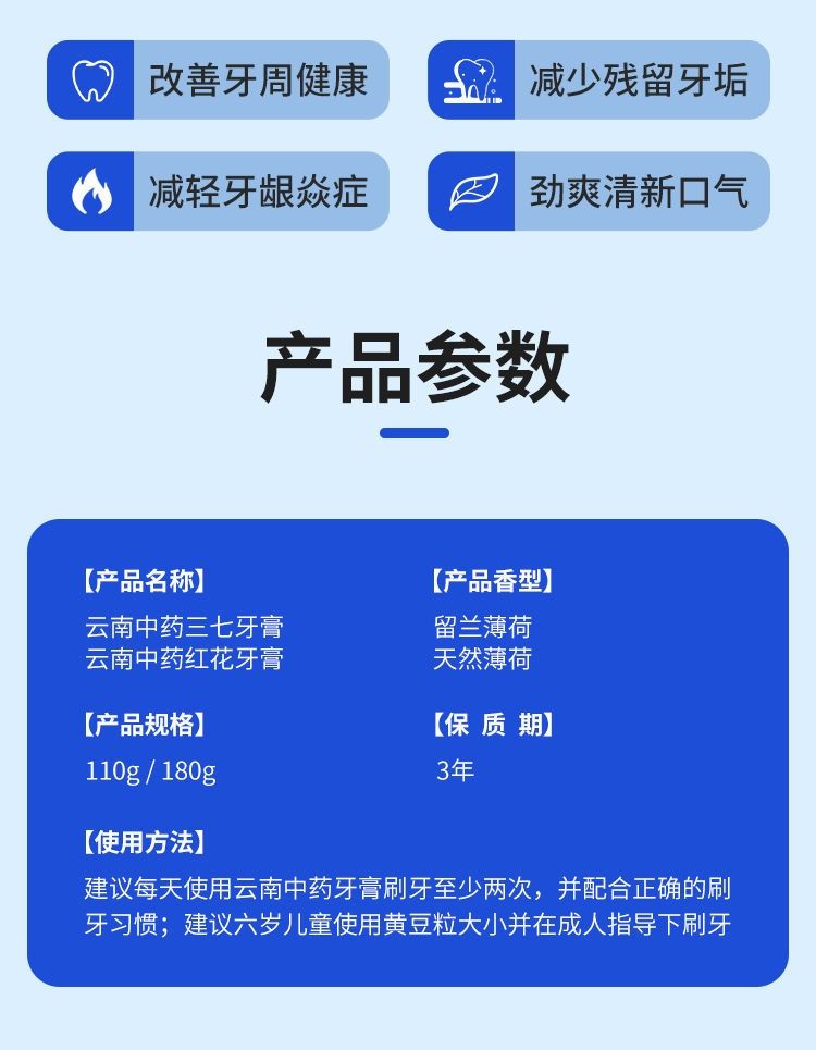 9.9抢3支【云南牙膏3支装❗️线下商超一支29.9元】云南牙膏110g/支,植物清新口气一整天、呵护口腔问题❗️