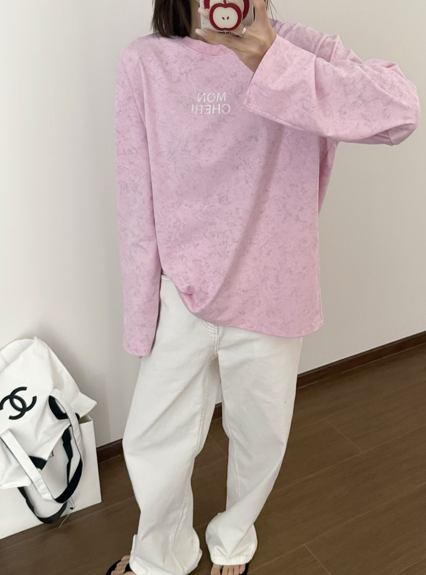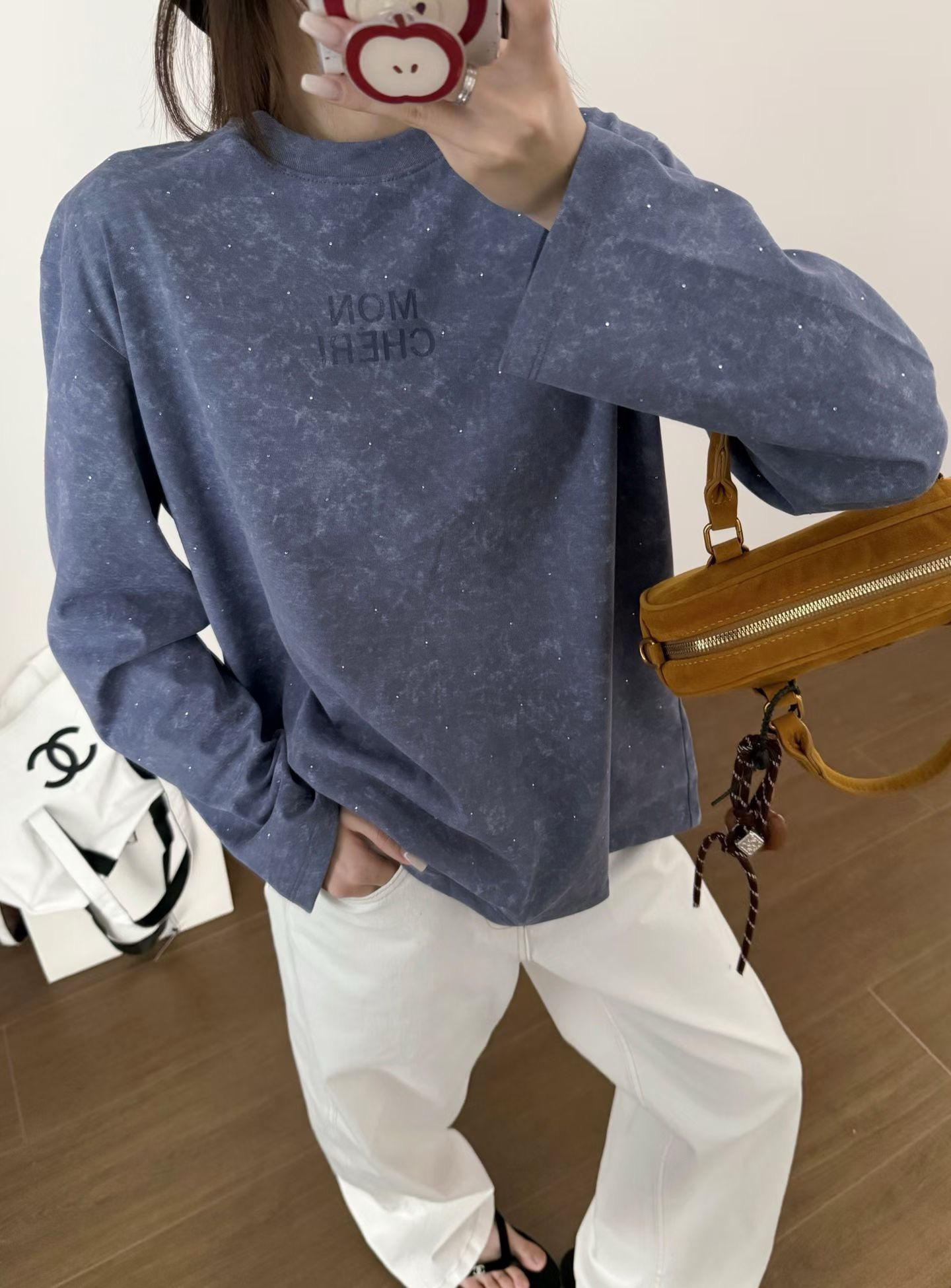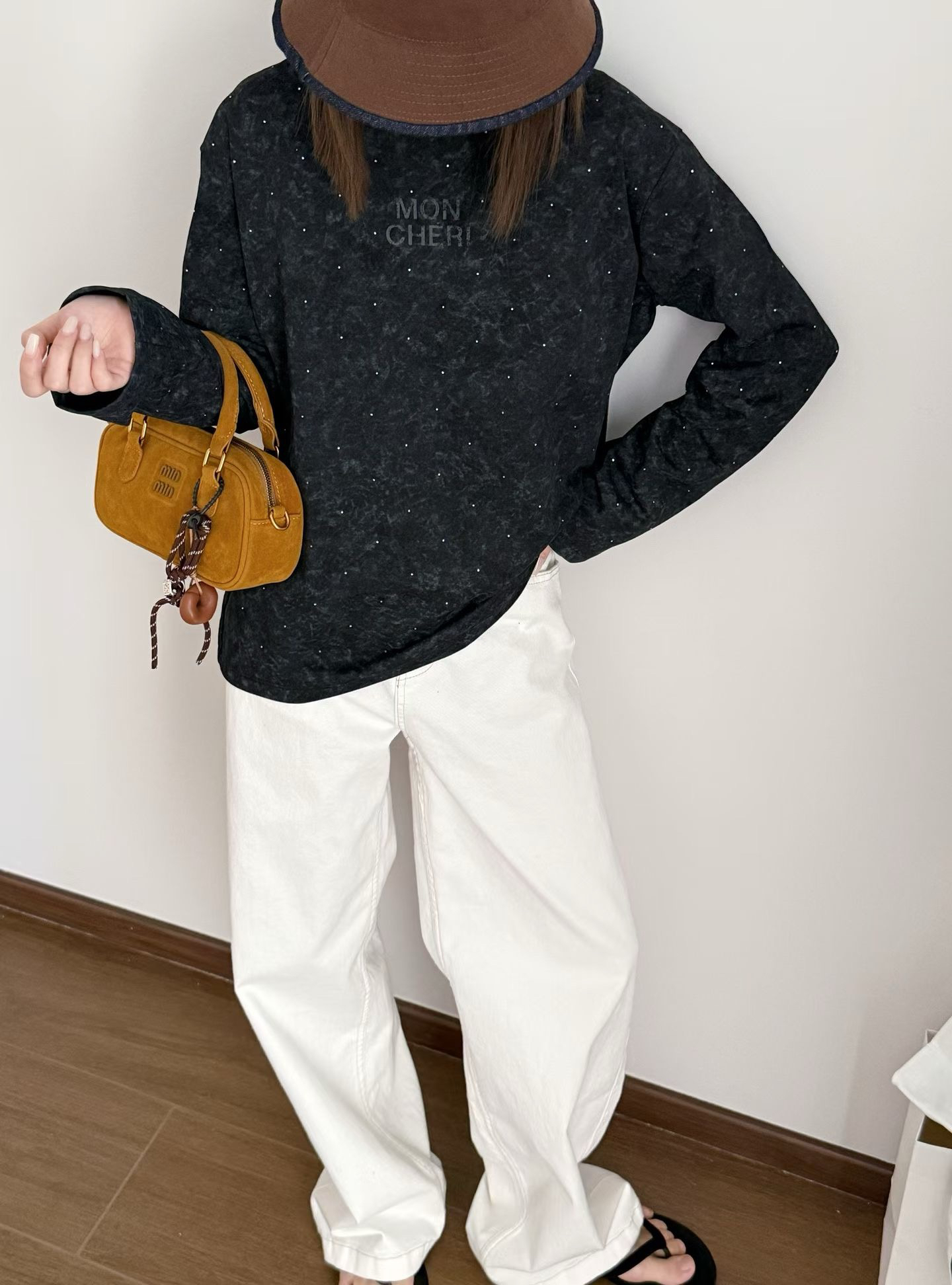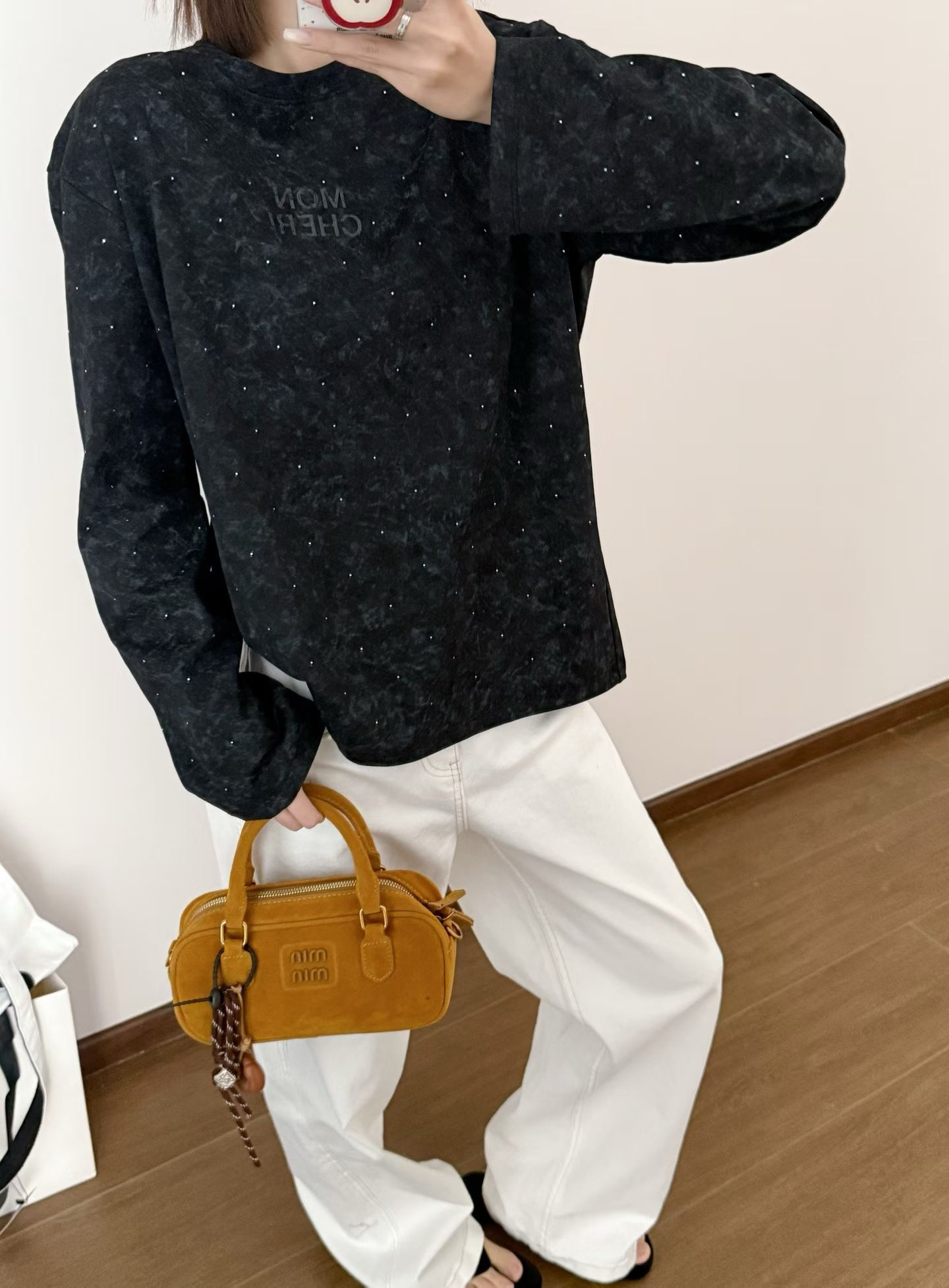 当植绒字母晕开做旧肌理,烫钻在斑驳感里藏住细碎光芒,这件卫衣便成了复古美学的载体