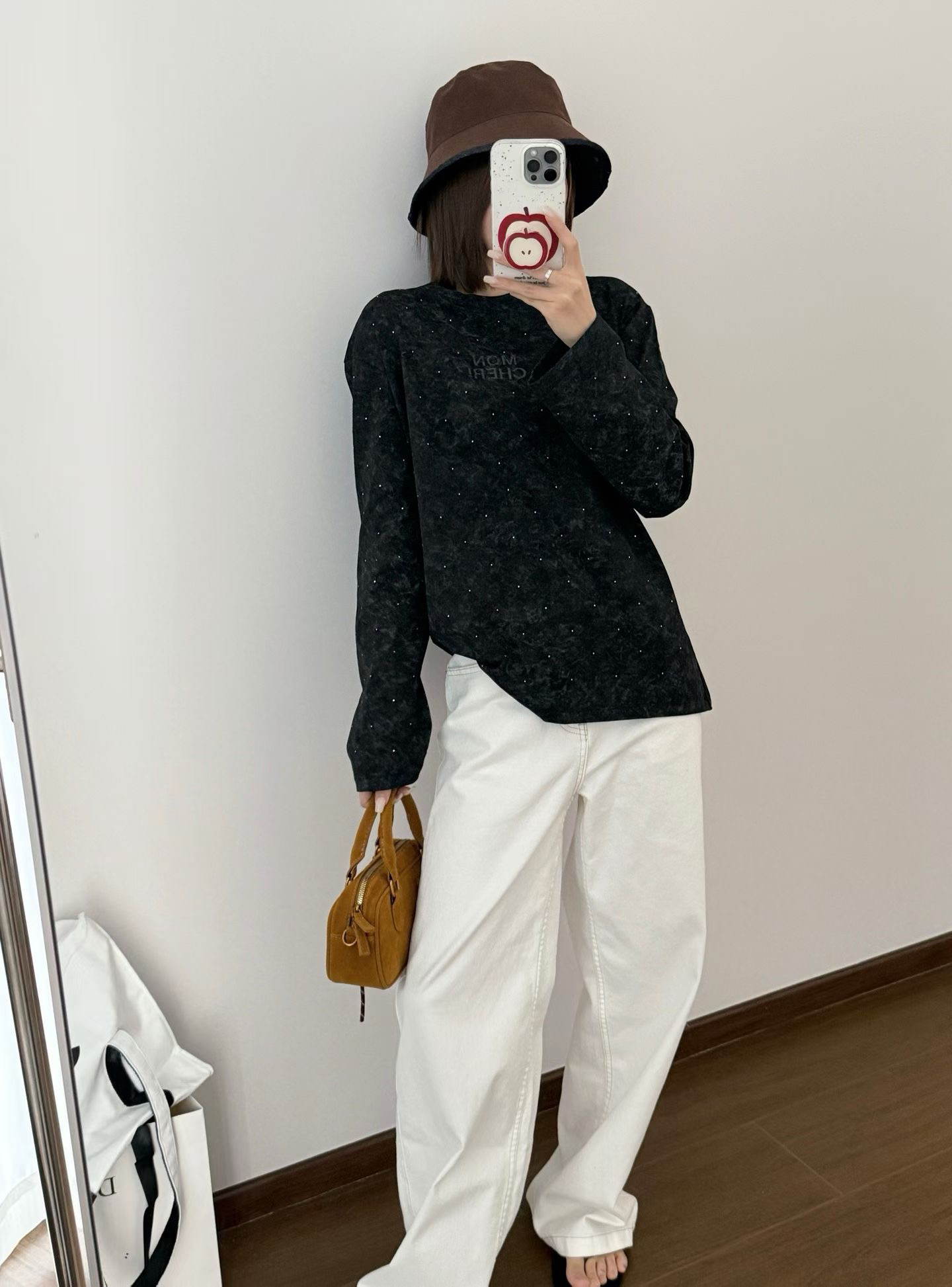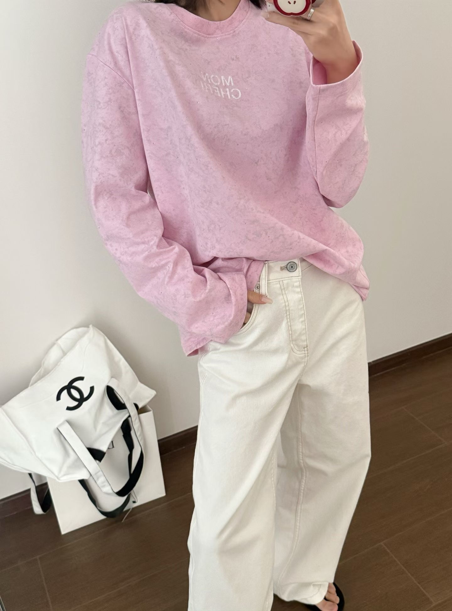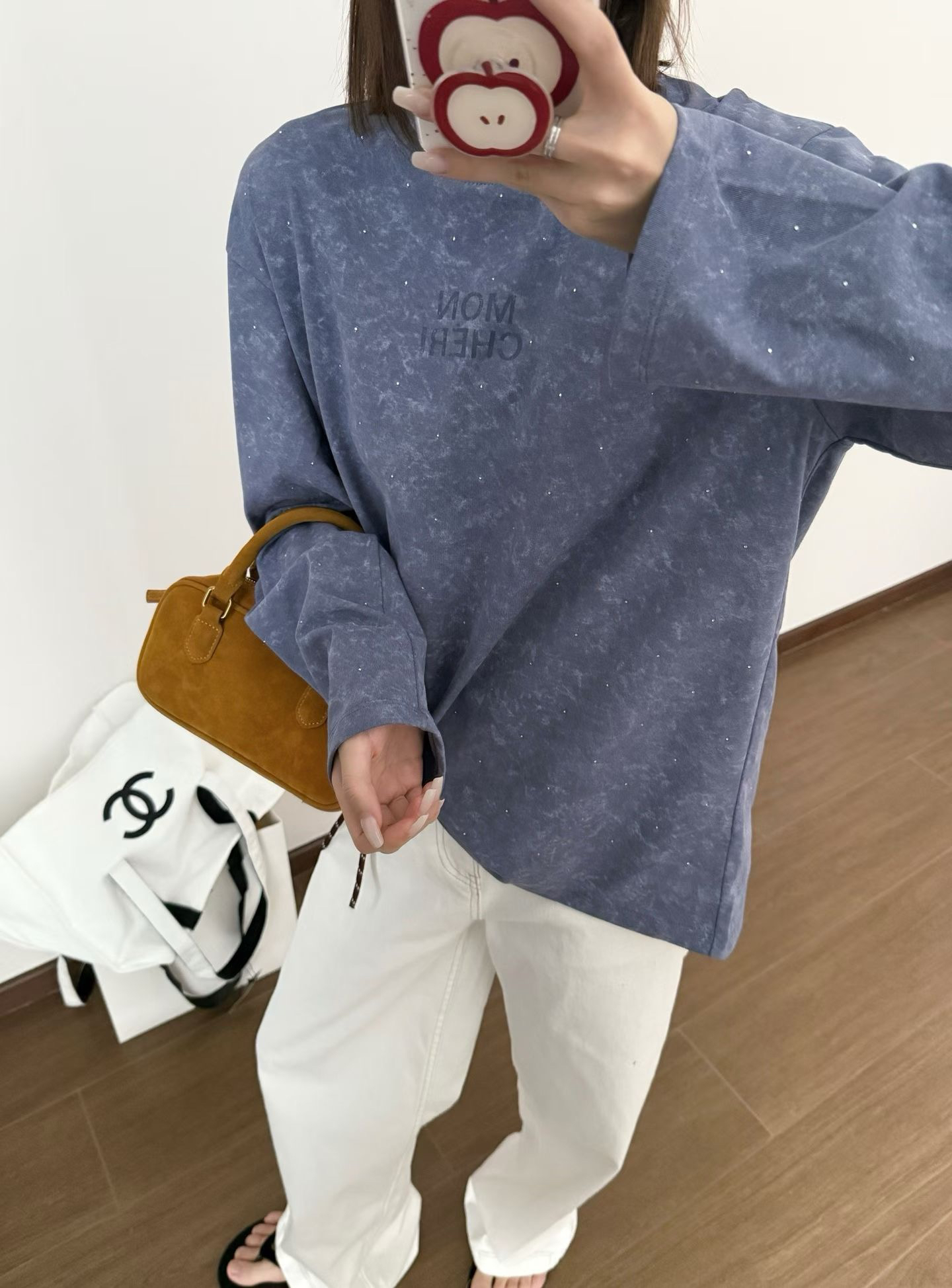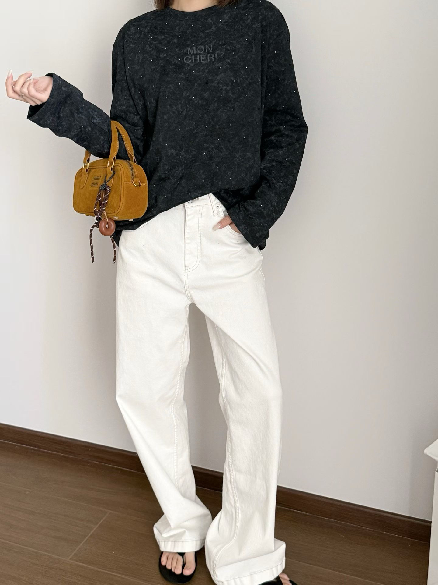 当植绒字母晕开做旧肌理,烫钻在斑驳感里藏住细碎光芒,这件卫衣便成了复古美学的载体