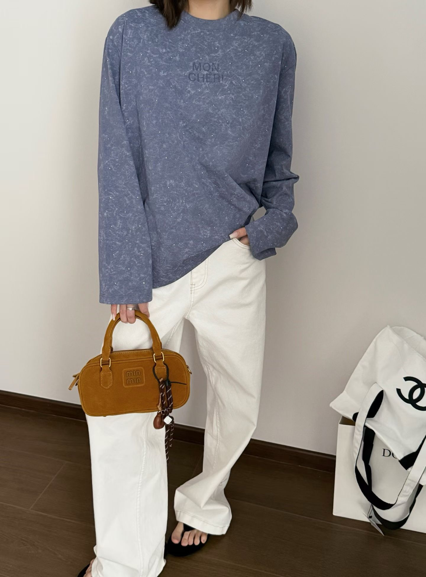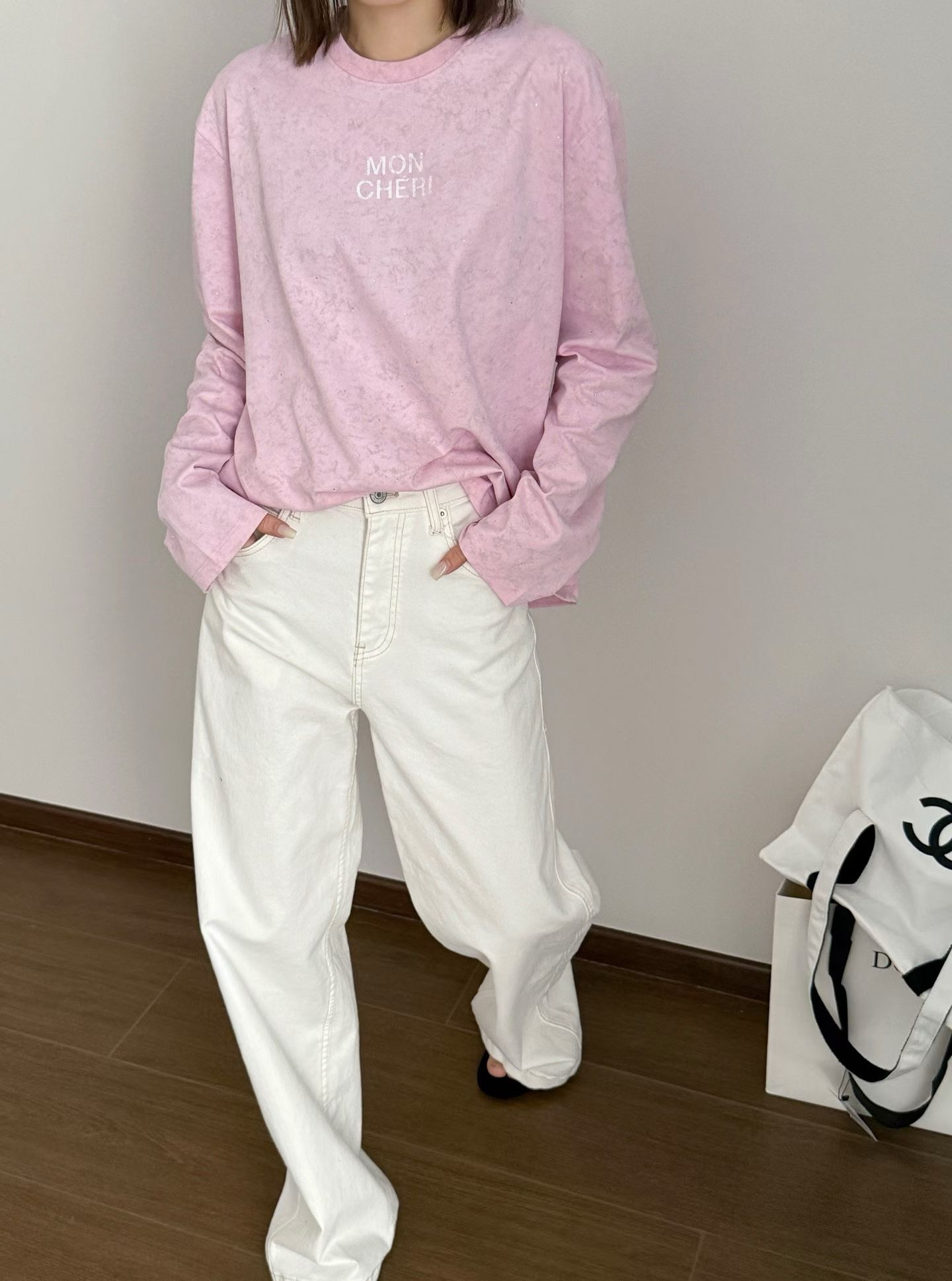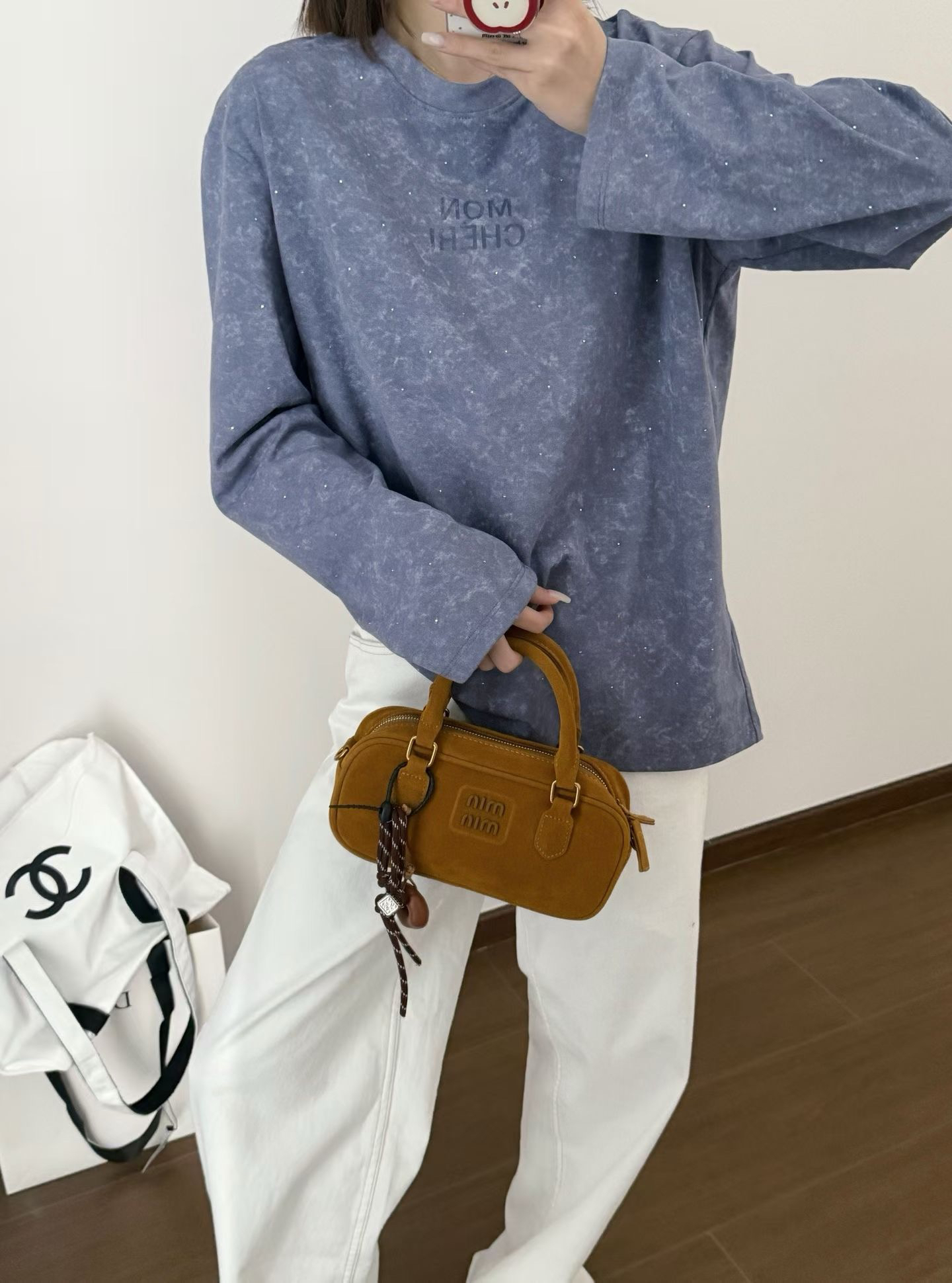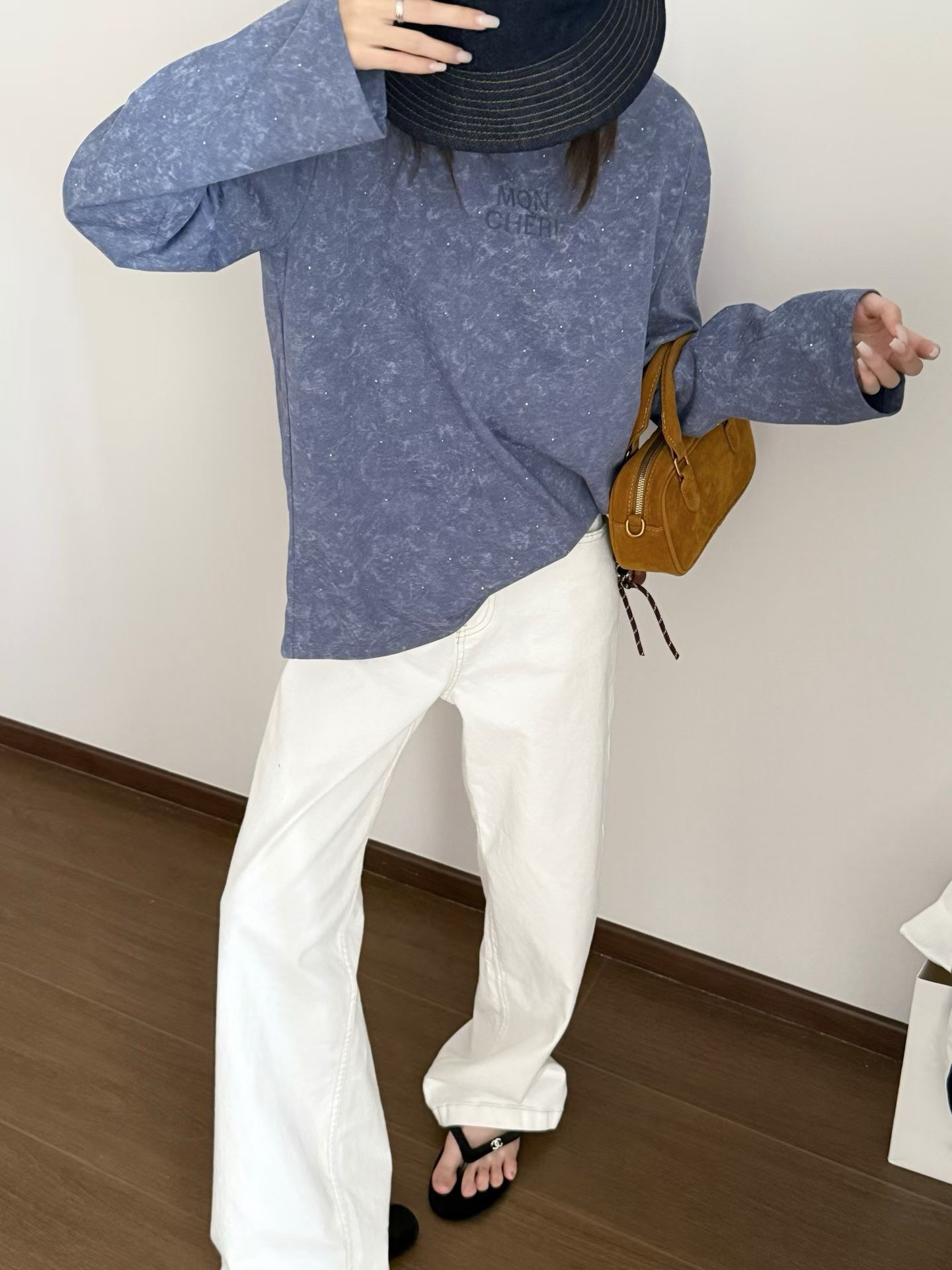 当植绒字母晕开做旧肌理,烫钻在斑驳感里藏住细碎光芒,这件卫衣便成了复古美学的载体