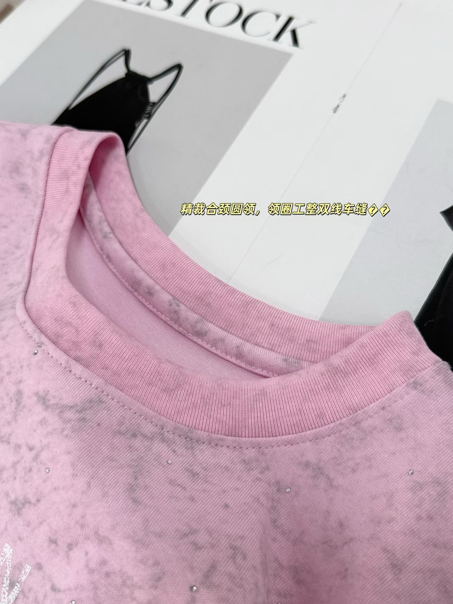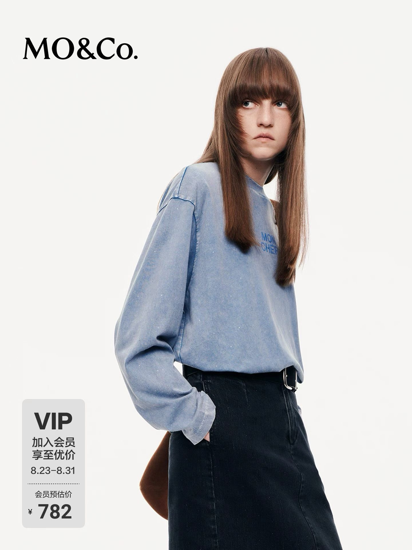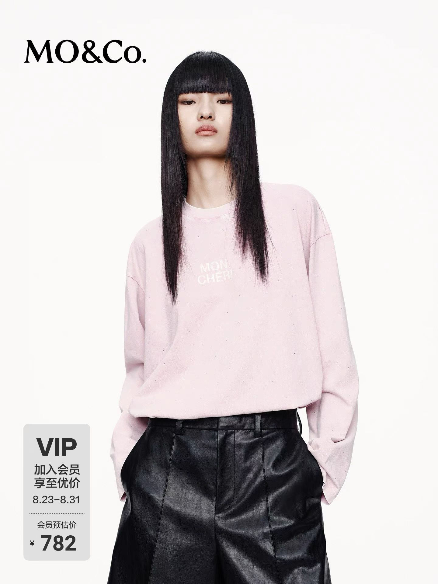 Mo&co 烫钻 美式复古 棉质做旧斑驳 褪色工艺 薄卫衣