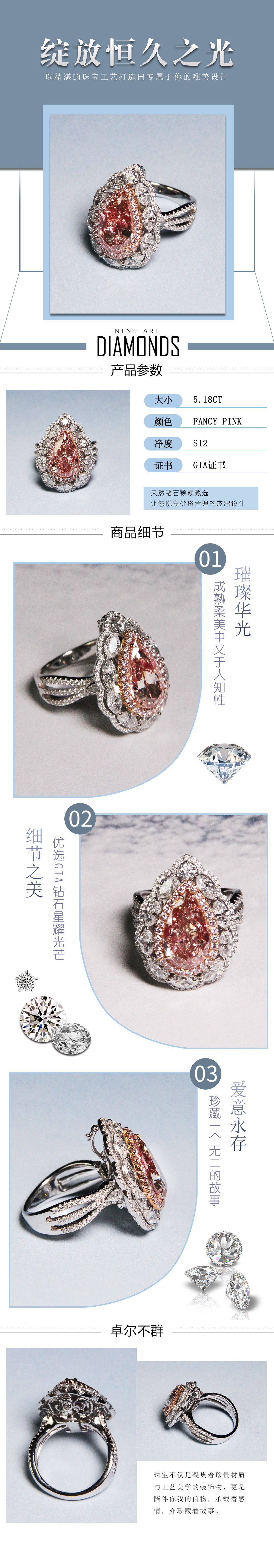 天然粉钻戒指5.18克拉
