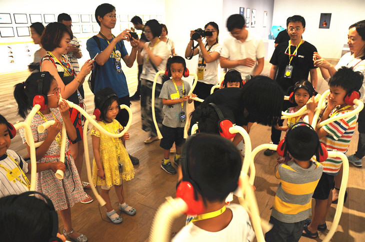 在展览现场,除了孩子们的手稿,还要一些大型互动装置。