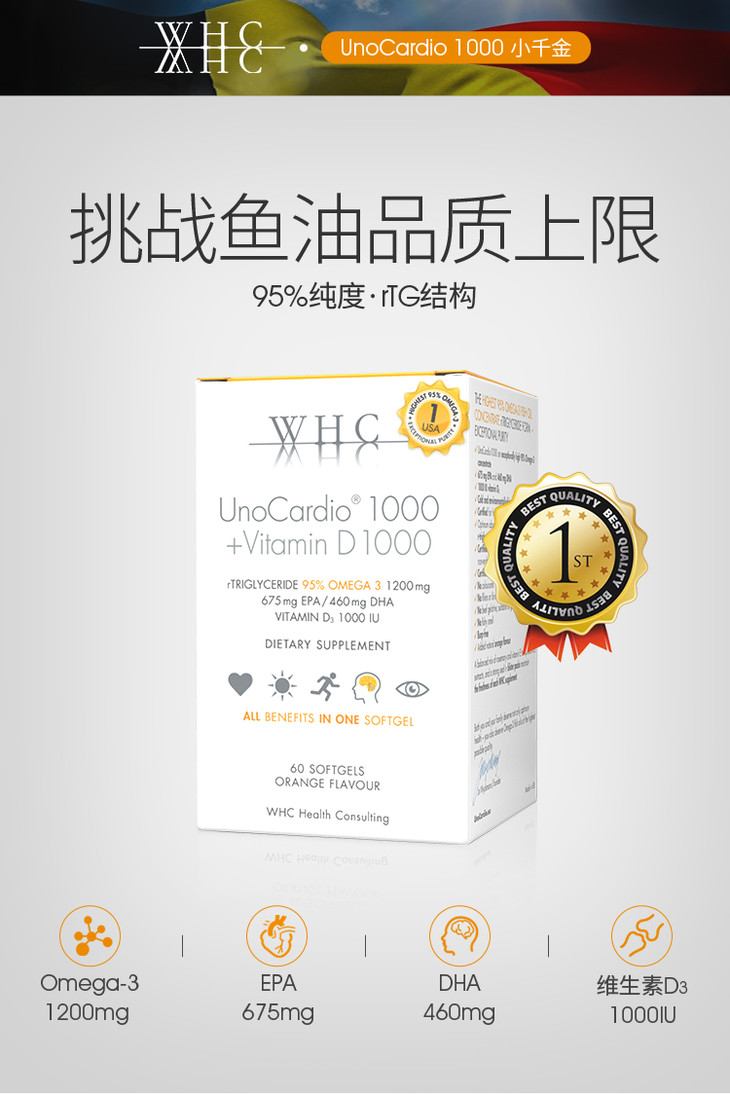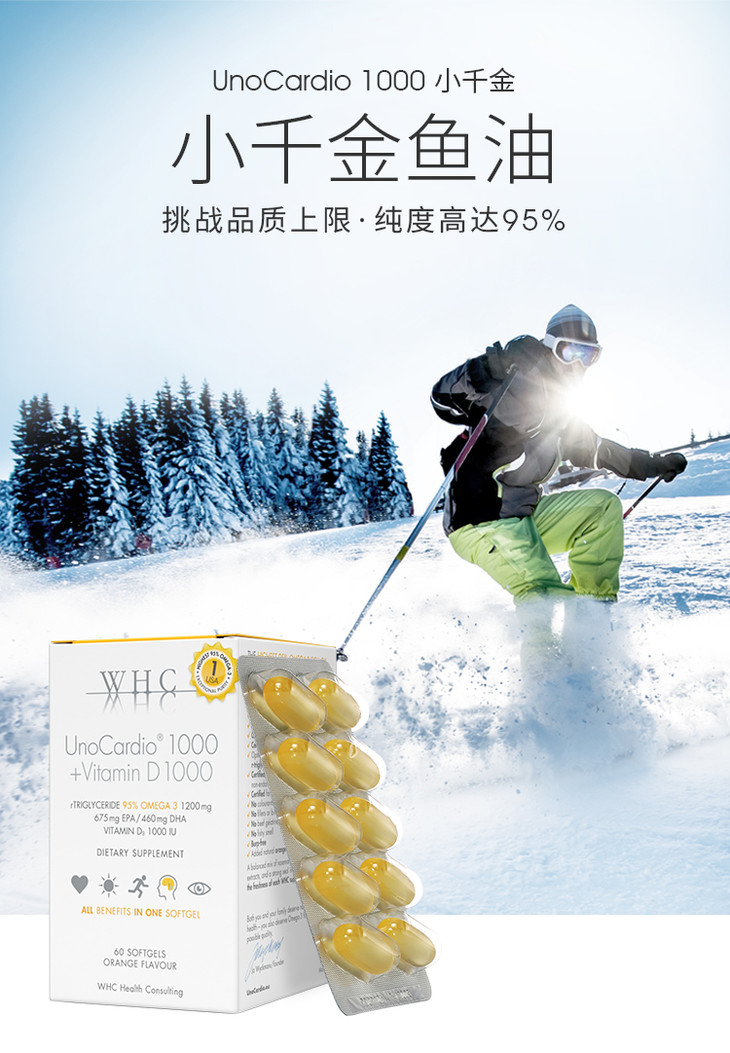 [屁侠推荐]WHC UnoCardio 1000 小千金鱼油 95%高纯度深海鱼油 含vd