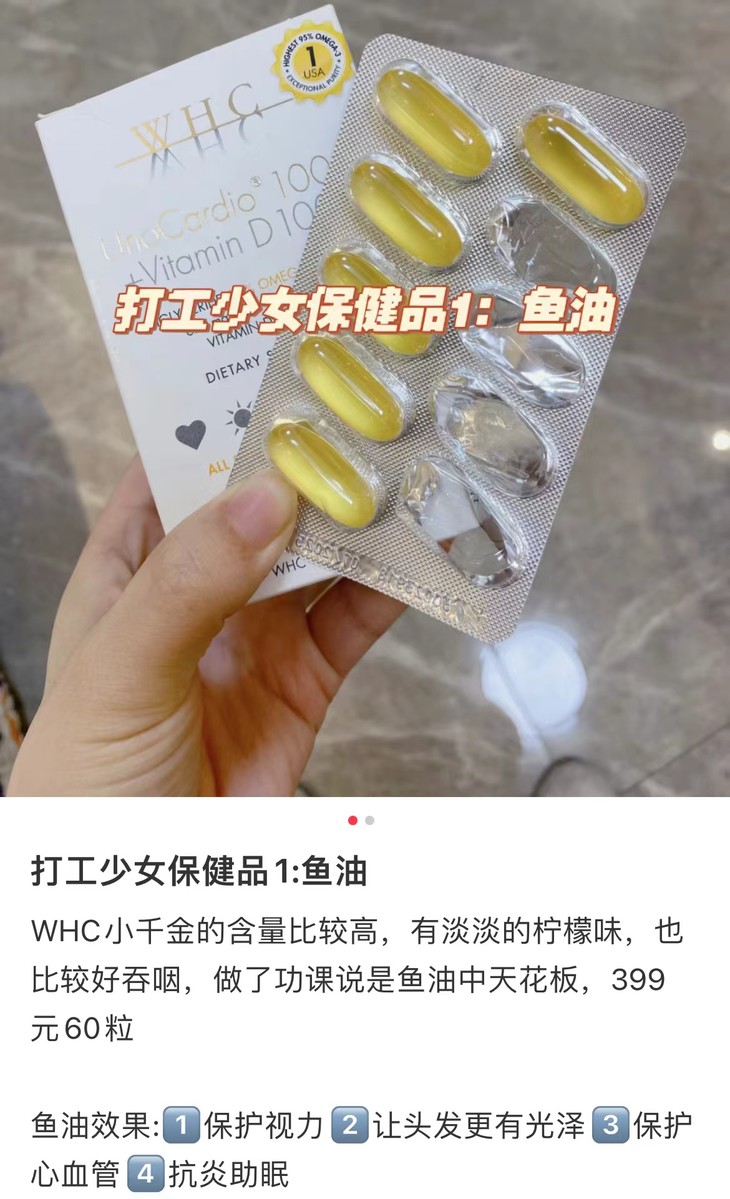 养生girl上线,来上些鱼油,最近刚需!成分都很不错,国货之光金维他®鱼油凝胶更有性价比,WHC的小千金和小红帽则是纯度更高,小千金适合日常没有额外补充维生素的老粉,而小红帽则适合已补充维生素的,宠物也可以补补哦!