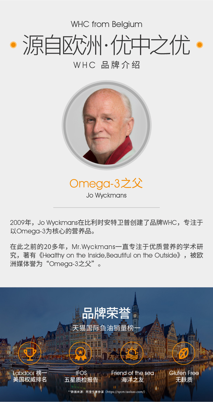 比利时专业鱼油品牌WHC,是omega-3之父维克曼于2009年创立的以专研鱼油为主的品牌,团队有多位权威营养专家,迄今已获得IFOS五星认证,Labdoor上榜鱼油,海洋之友,GOED成员等殊荣,之前WHC鱼油不打折,但很多款还是都卖断货,虽贵,但确实是数一数二。