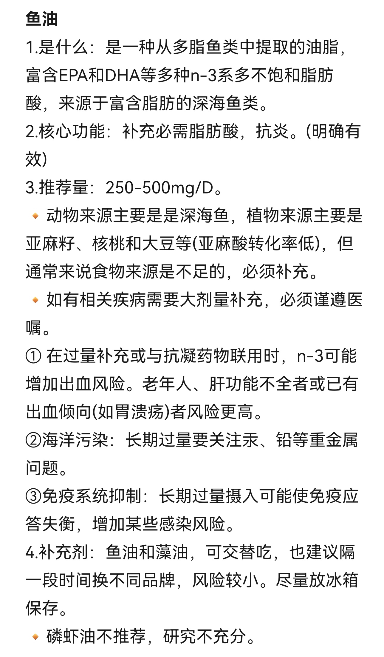 但,也要提醒下,鱼油仅能作为日常的补剂,是不能代替药物的,有具体情况还是建议看医生,不能讳疾忌医。同时,有海鲜过敏、痛风问题和再生障碍性贫血的老粉是不建议的。