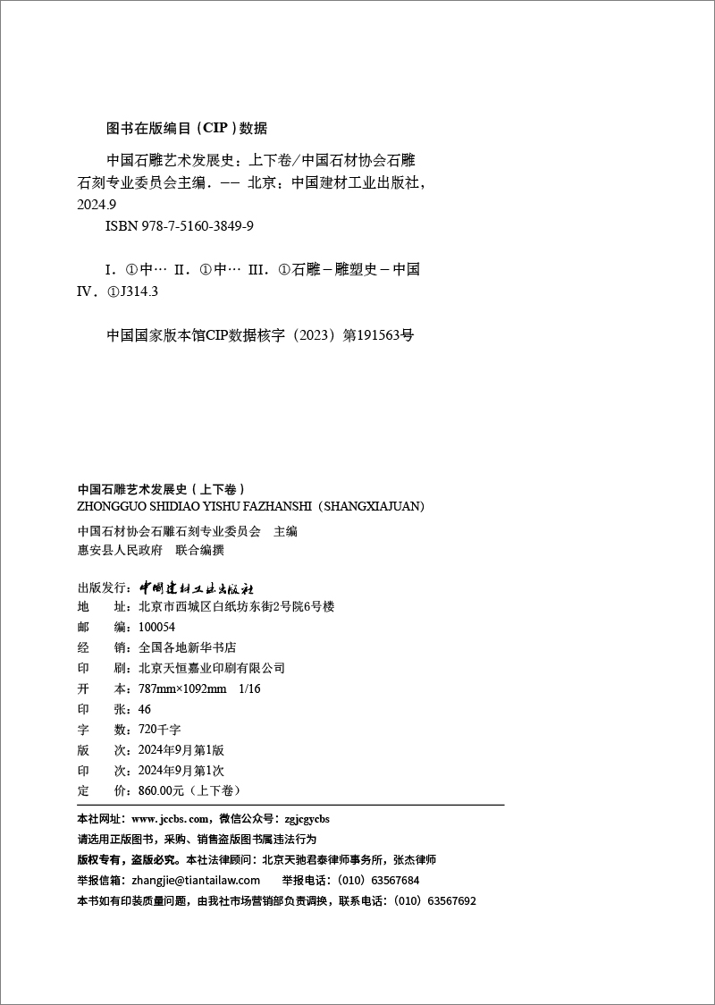 中国石雕艺术发展史:上下卷/中国石材协会石雕 石刻专业委员会主编. 中国建材工业出版社, 2024 ISBN 9787516038499