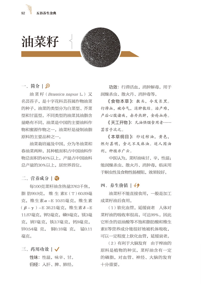 本书根据科学分类,选取了禾谷类、豆菽类、油料类等35种最具代表性的五谷,分别建立一张个性名片,囊括其产地种属、营养成分、药用功效、养生价值、食用方法和食用禁忌。