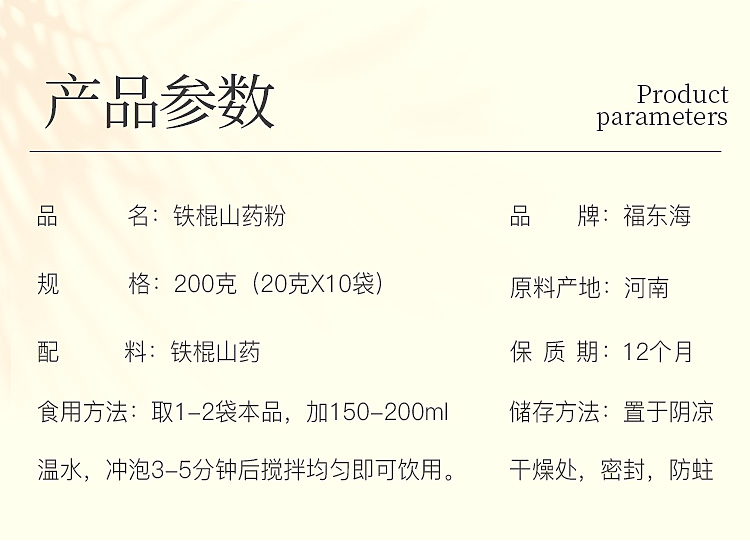福东海 铁棍山药粉200克(20克*10袋)