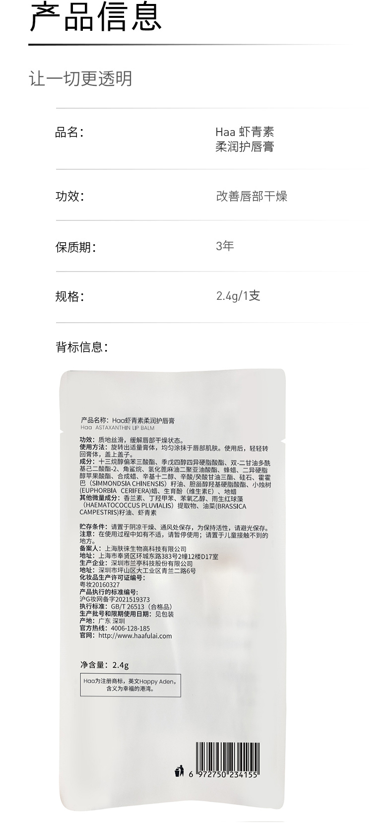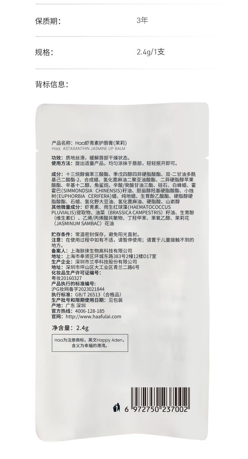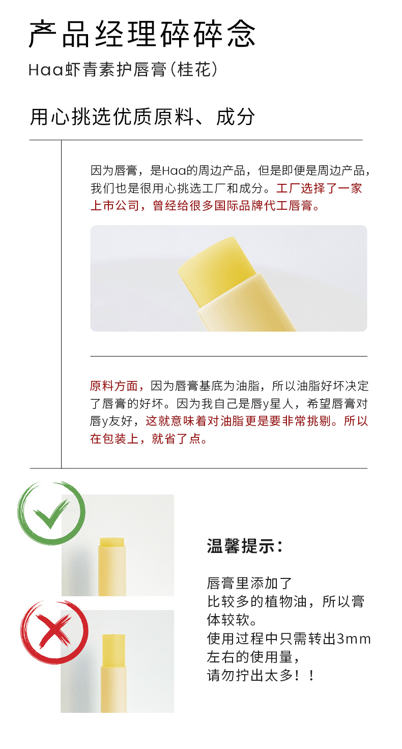 Haa虾青素角鲨烷润唇膏原味茉莉葡萄桂花