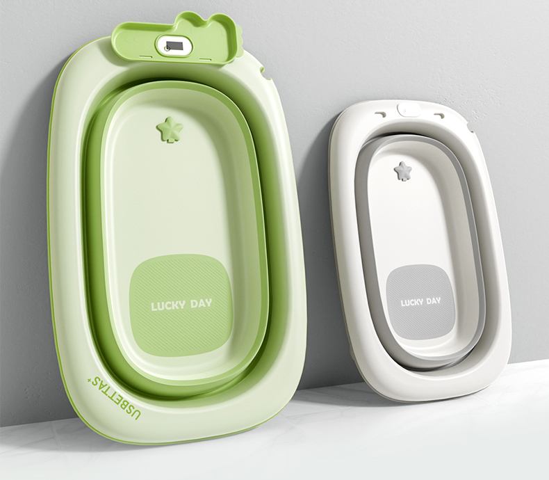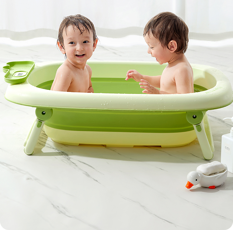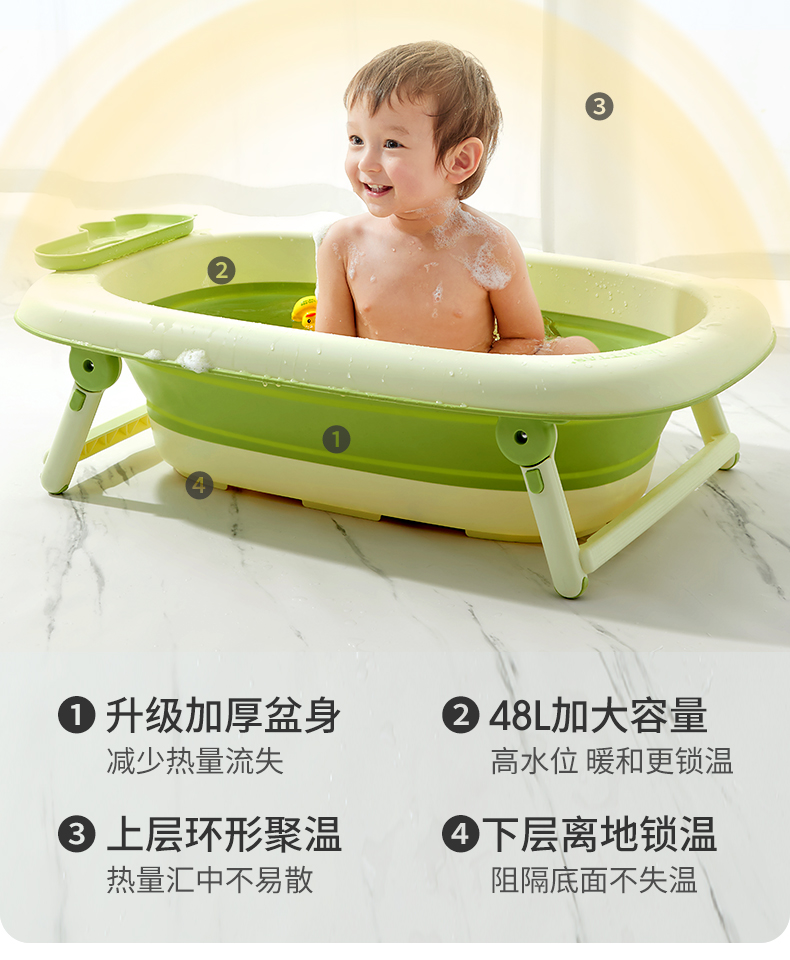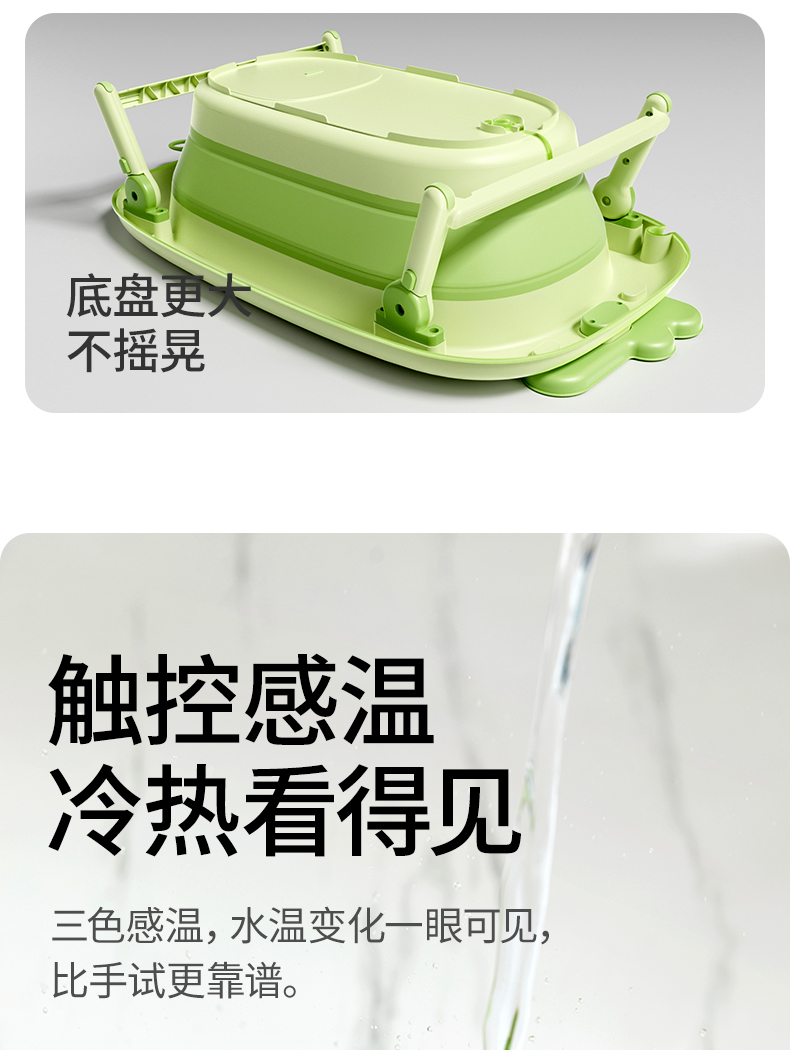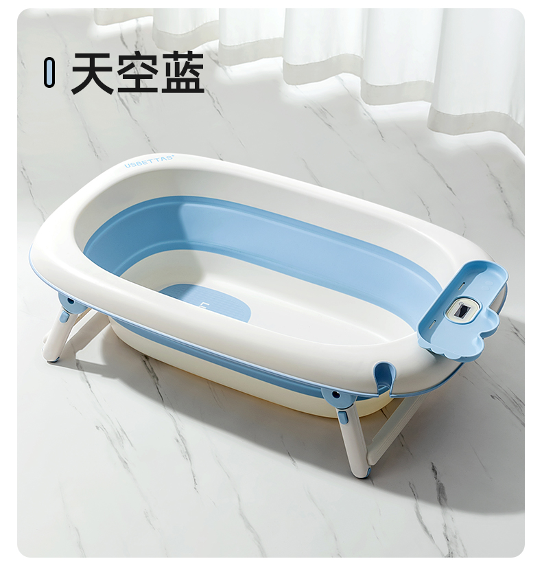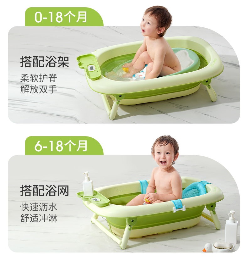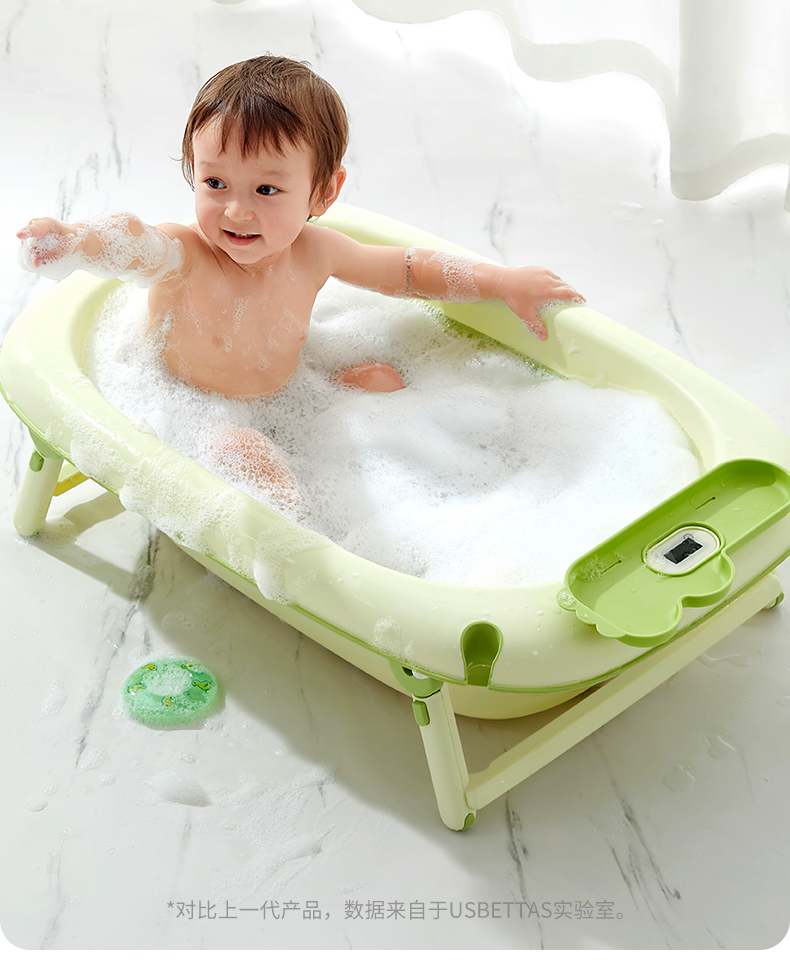 贝肽斯婴儿洗澡盆宝宝可坐躺折叠感温浴盆新生儿童大号抗菌泡澡桶