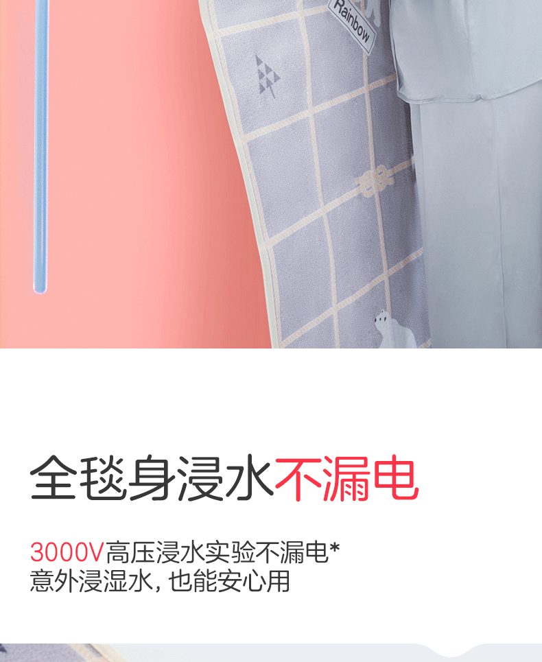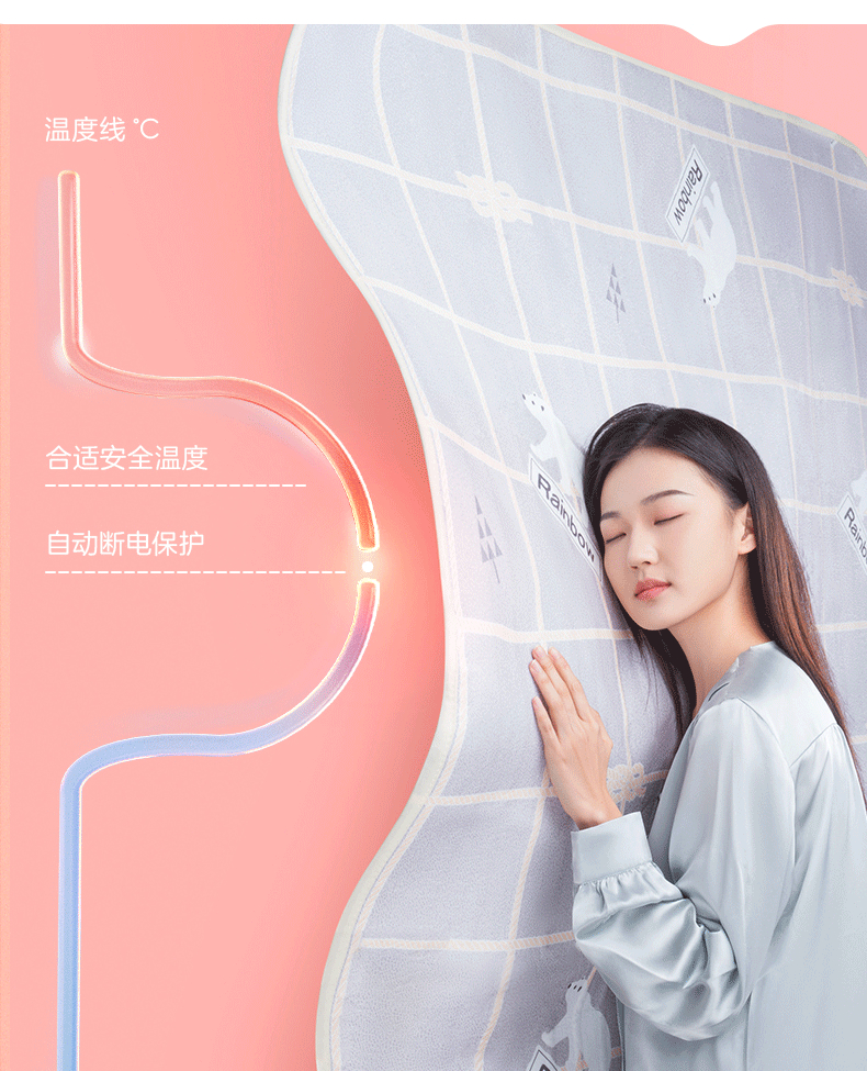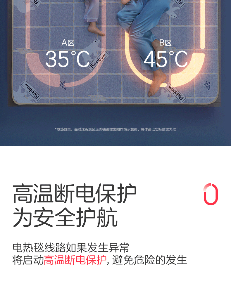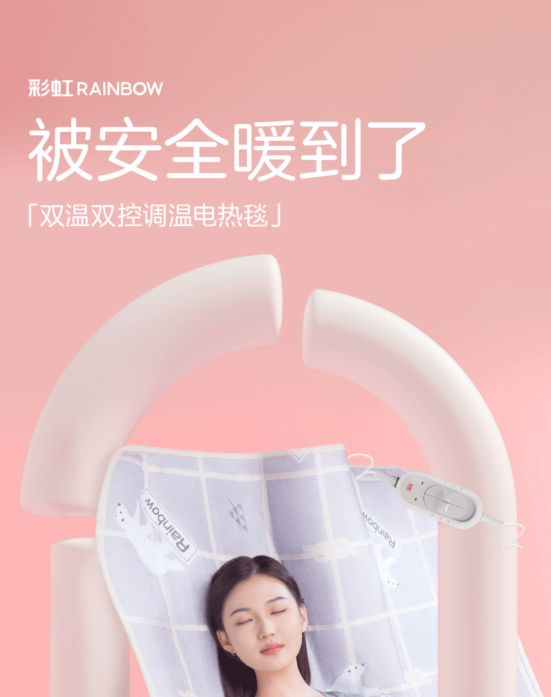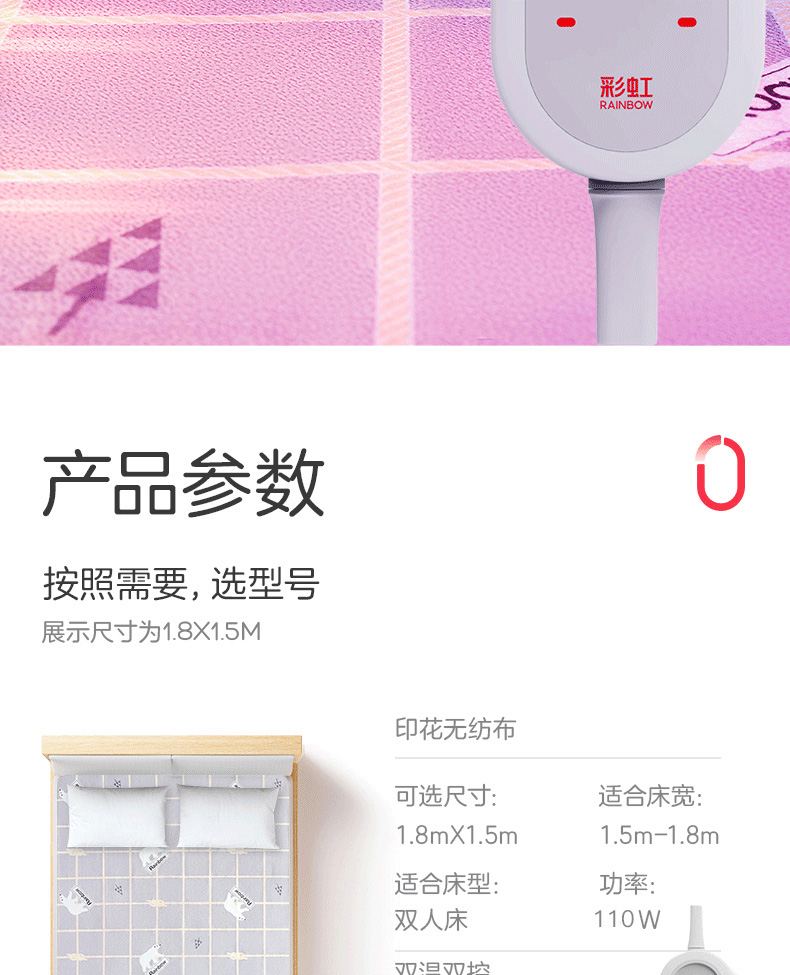 彩虹双温双控化纤印花双人电热毯1.8*1.5米