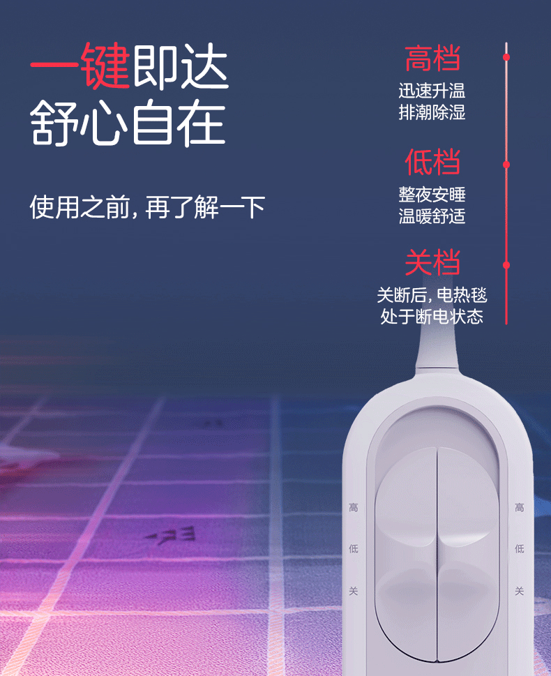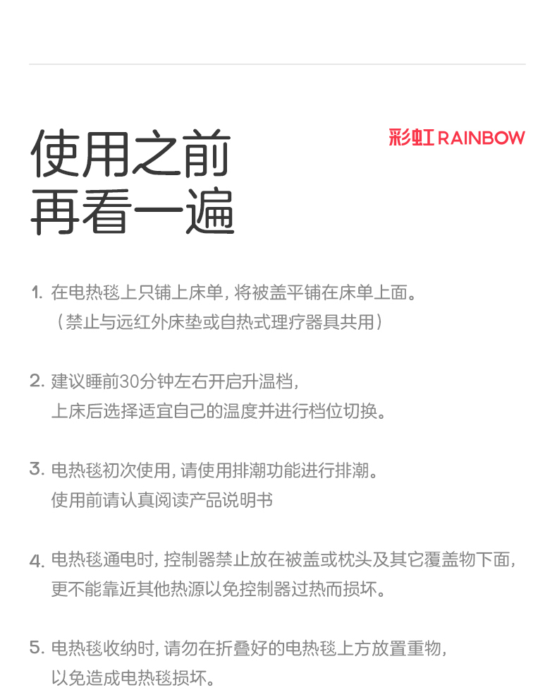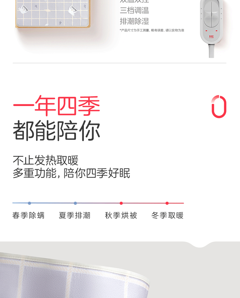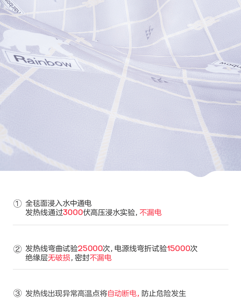 彩虹双温双控化纤印花双人电热毯1.8*1.5米
