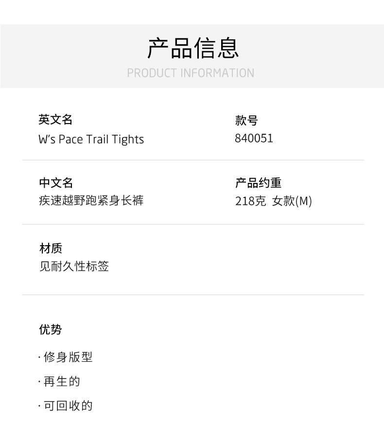 HOUDINI/胡丁尼Pace Trail Tights 疾速女款 越野速干紧身长裤 840051