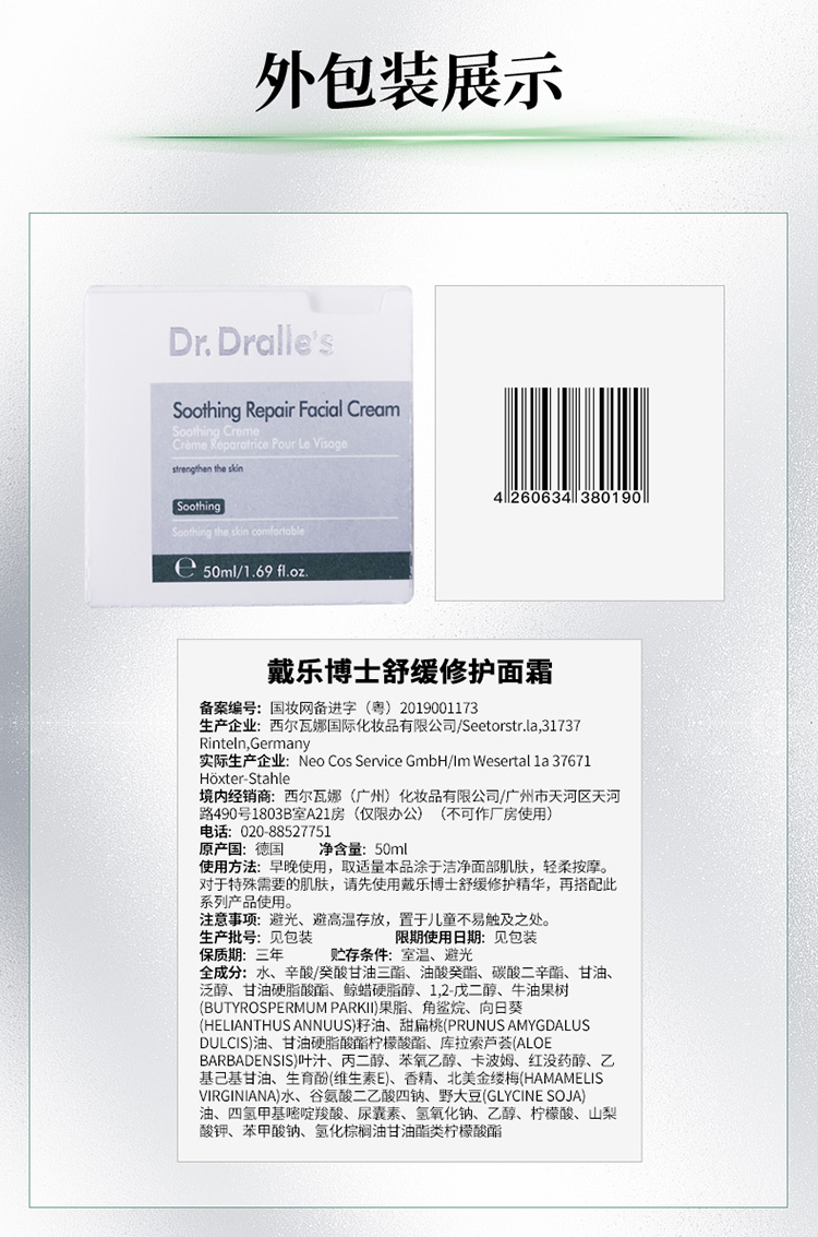 【品名】「德国原装进口」戴乐博士 舒缓修系列精华/面霜/乳液 换季易敏必备 【规格】 面霜50ml*1瓶 精华40ml*1瓶 乳液100ml*1瓶 【产地】德国 【保质期】3年 【发货包装】独立包装 【发货地】广州 【发货快递】中通、圆通、韵达随机发 【补邮费地区】新疆、西藏、内蒙古、宁夏、甘肃、青海、海南+5元/单 【发货时效】48-72小时,周末节假日顺延 |