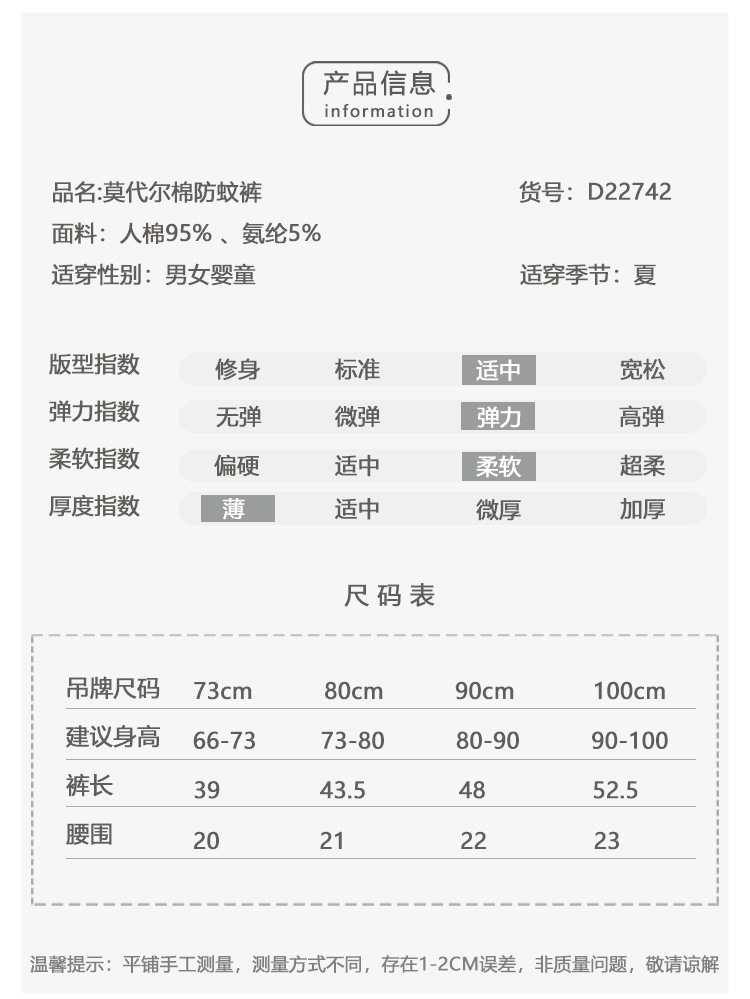 【物理防蚊 清凉透气 不缩水不起球】宝宝防蚊裤夏季新款男女童长裤婴儿莫代尔棉灯笼裤儿童空调裤