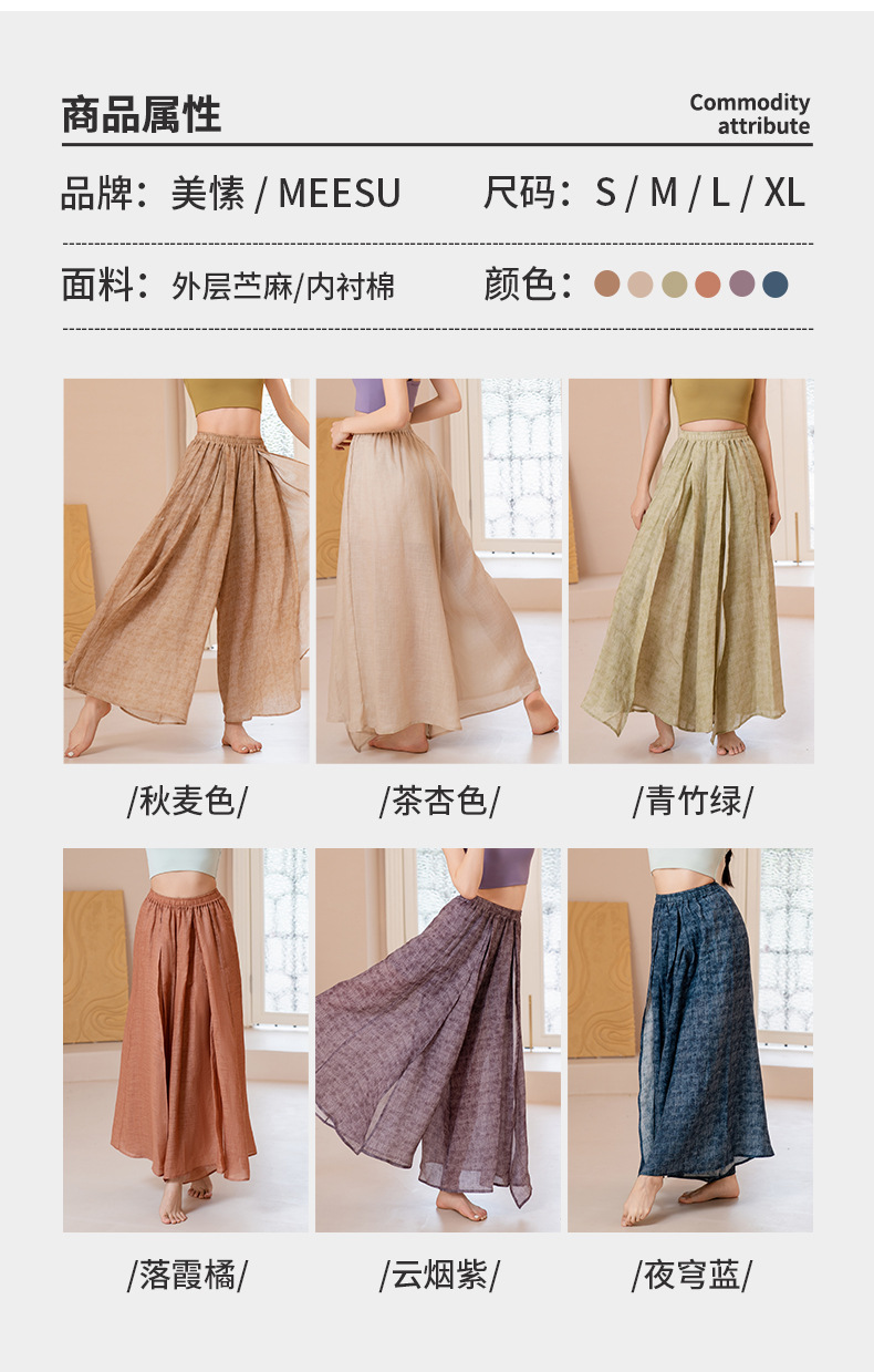 美愫苎麻瑜伽裤女宽松阔腿舞蹈训练裤普拉提禅修薄款打坐春夏长裤