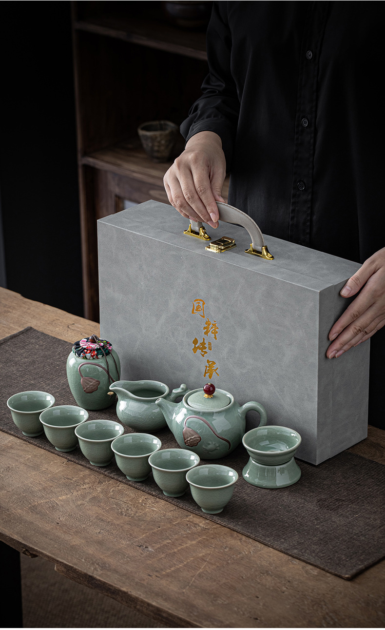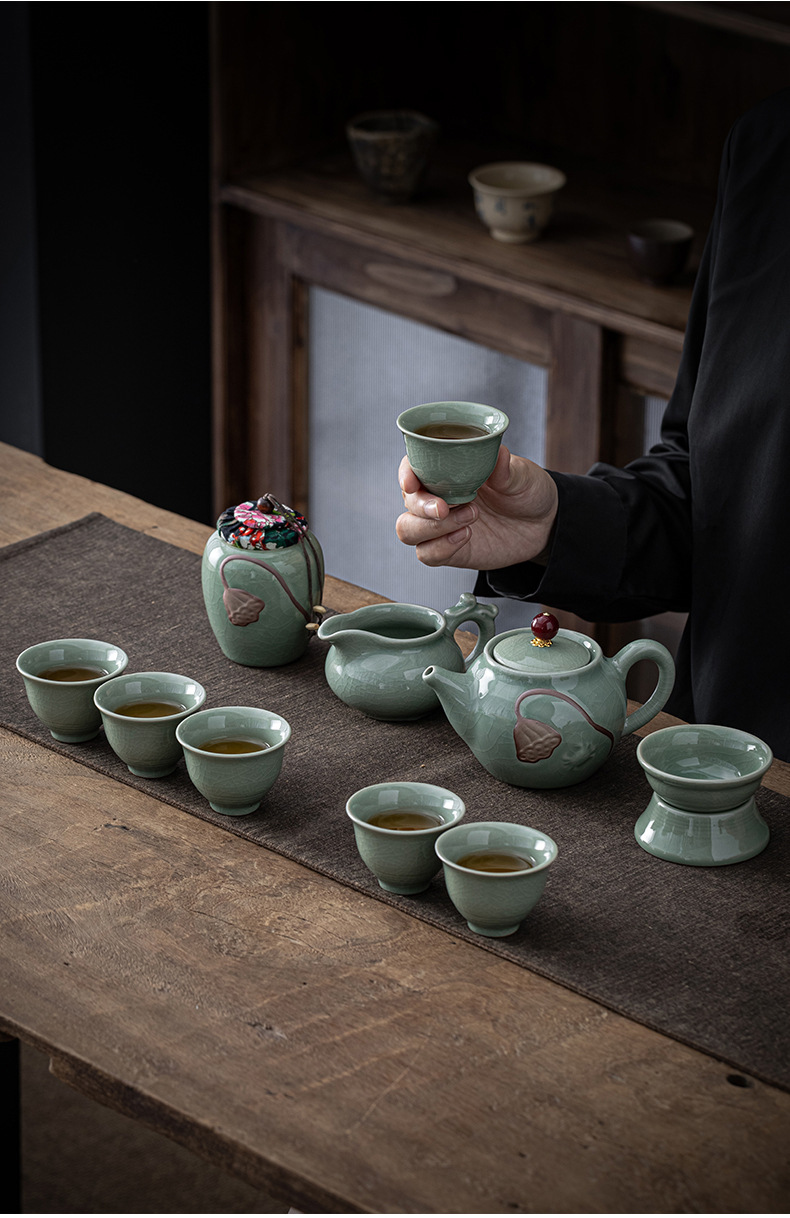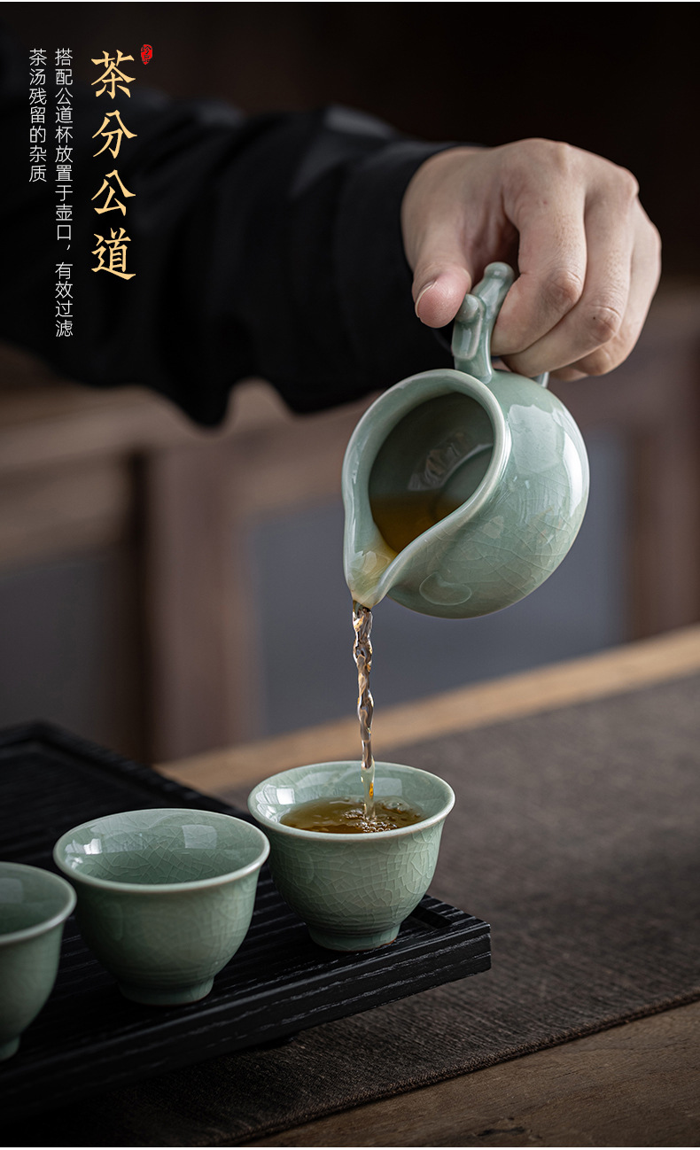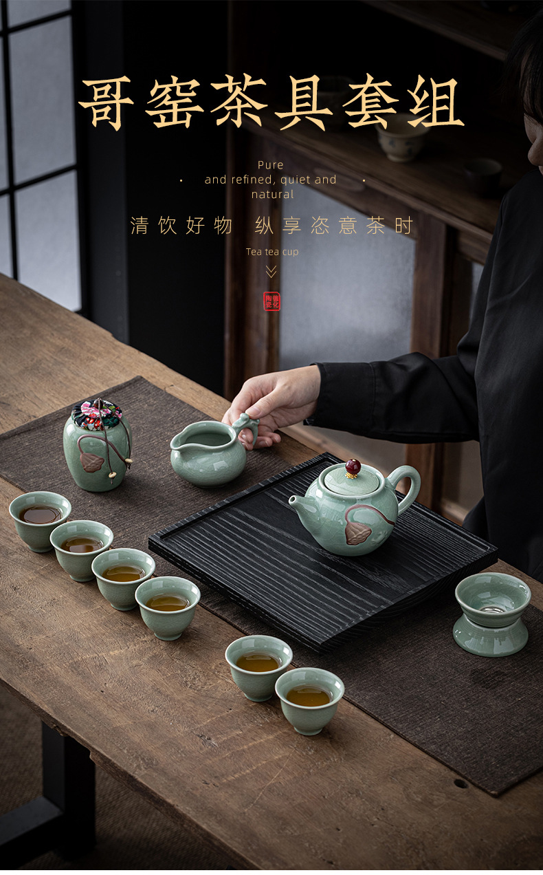 【国潮浮雕哥窑开片,功夫茶具套装】清饮好物哥窑茶具套组,茶香四溢出汤如柱,家用冰裂釉整套陶瓷办公室实用送礼大气有面QQ新年礼盒年货礼盒