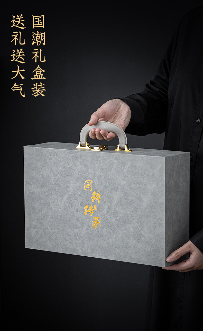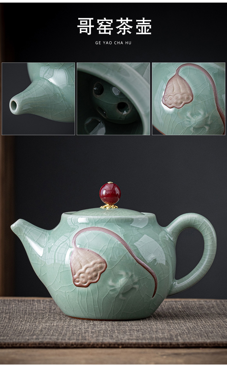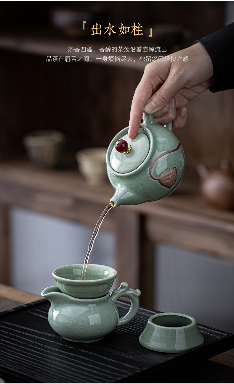 【国潮浮雕哥窑开片,功夫茶具套装】清饮好物哥窑茶具套组,茶香四溢出汤如柱,家用冰裂釉整套陶瓷办公室实用送礼大气有面QQ新年礼盒年货礼盒