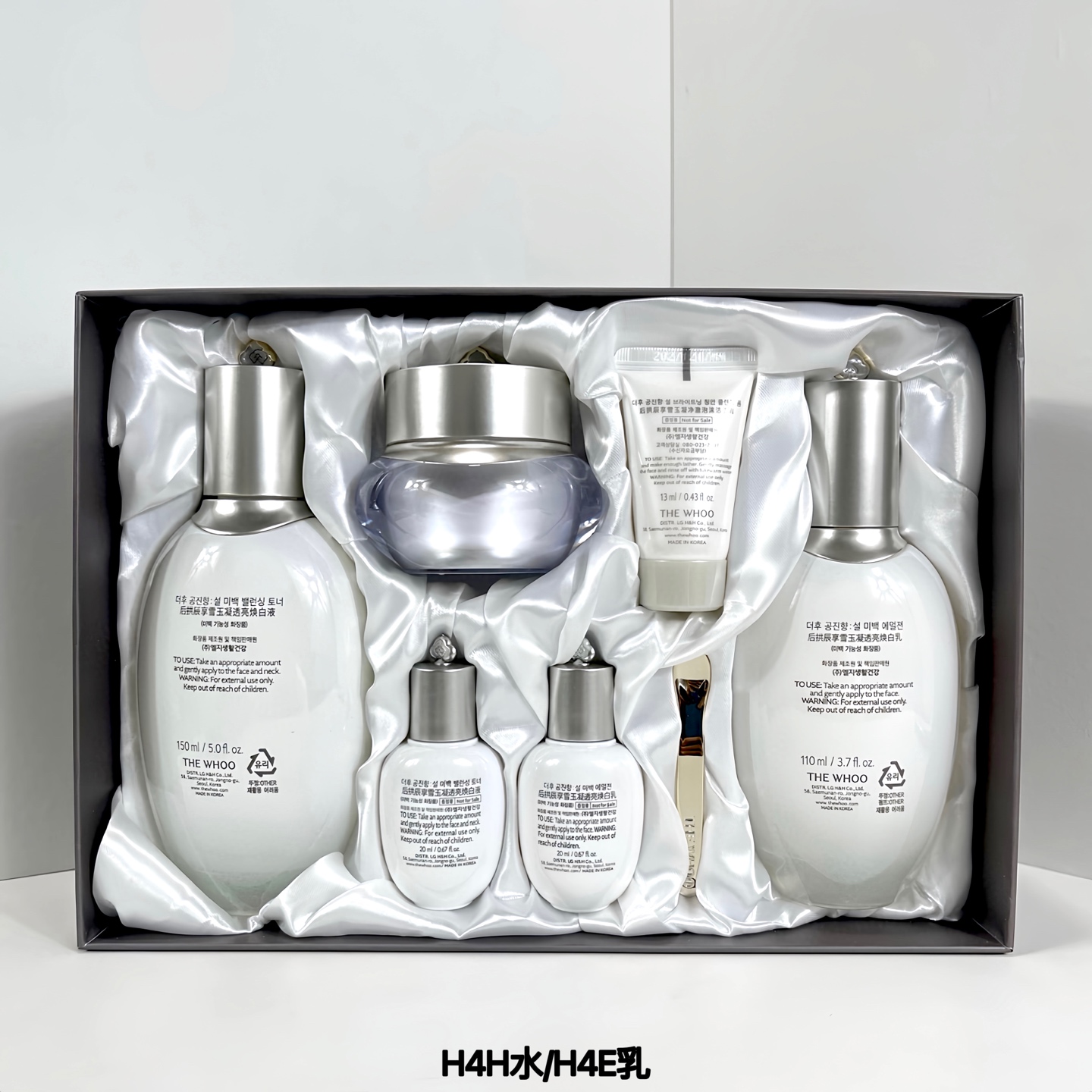 25版Whoo后雪美白六件套盒🔜水H4H/乳H4E编码!新版Whoo 后雪美白三件套,推荐给有斑、肤色不均匀的!舍不得买一千多一瓶的小灯泡,你可以买一套Whoo后美白三件套、能淡斑、防止斑、还可以晒后修复、美白~想除暗黄,各种杂斑的妹子的福音来了这款后雪套盒,美白➕淡斑,让您的肤色更加亮白,提亮肤色!!