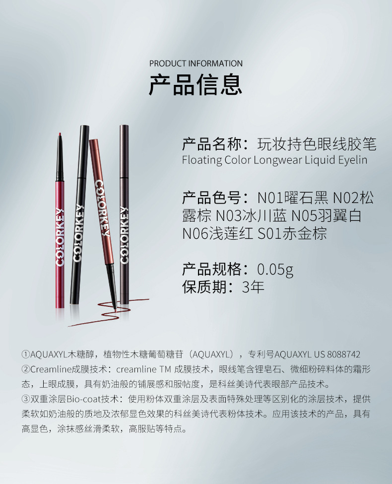 】colorkey珂拉琪玩妆眼线胶笔不易晕染持久防水防汗新手初学者