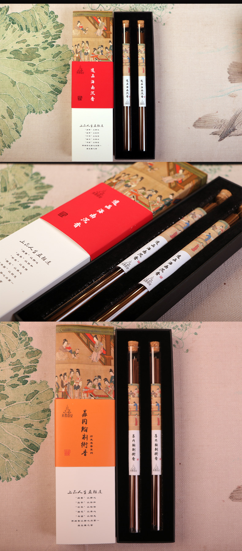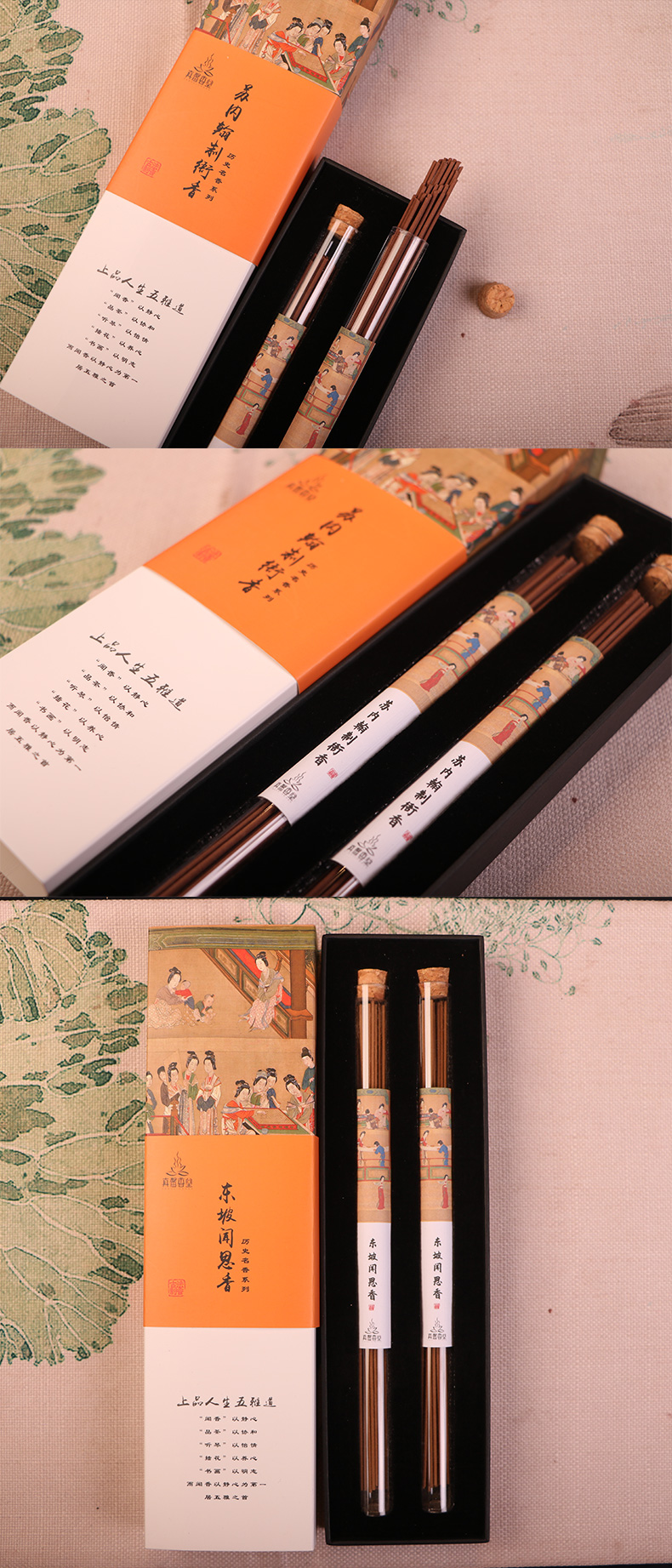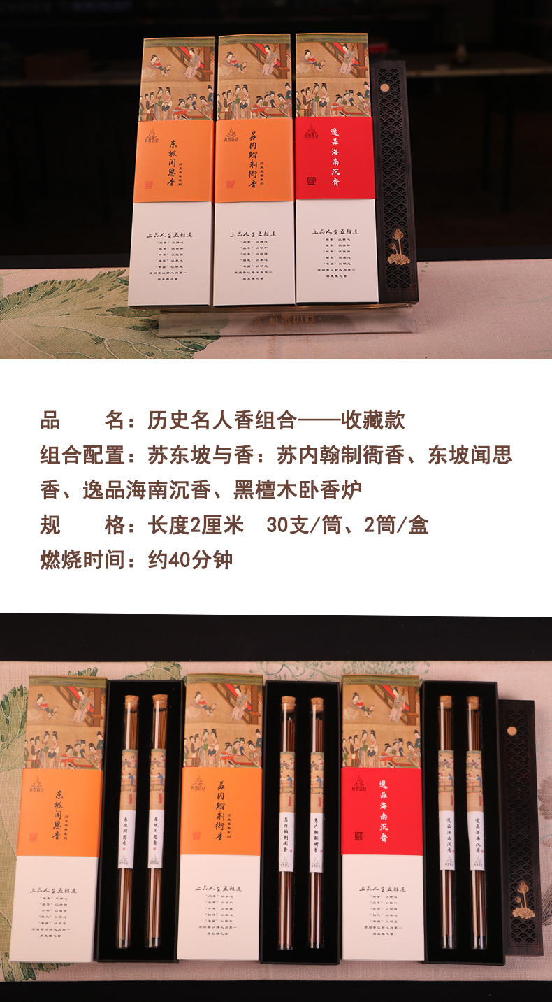 【茶香器韵】历史名人香组合——收藏款 苏东坡与香:苏内翰制衙香、东坡闻思香/逸品海南沉香 双管装 各一盒 赠荷塘月色黑檀线香炉