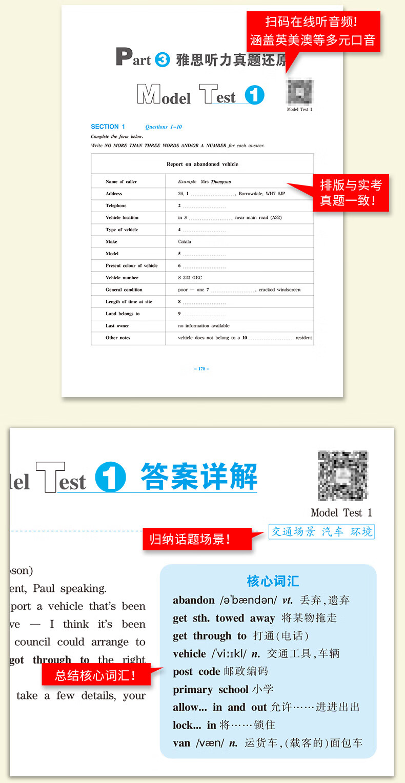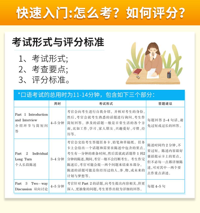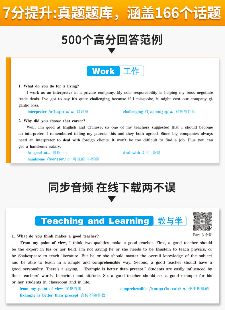 7.所有回答范例均配录音,均为纯正英音朗读,为考生提供地道的语音示范,扫码获取,方便快捷