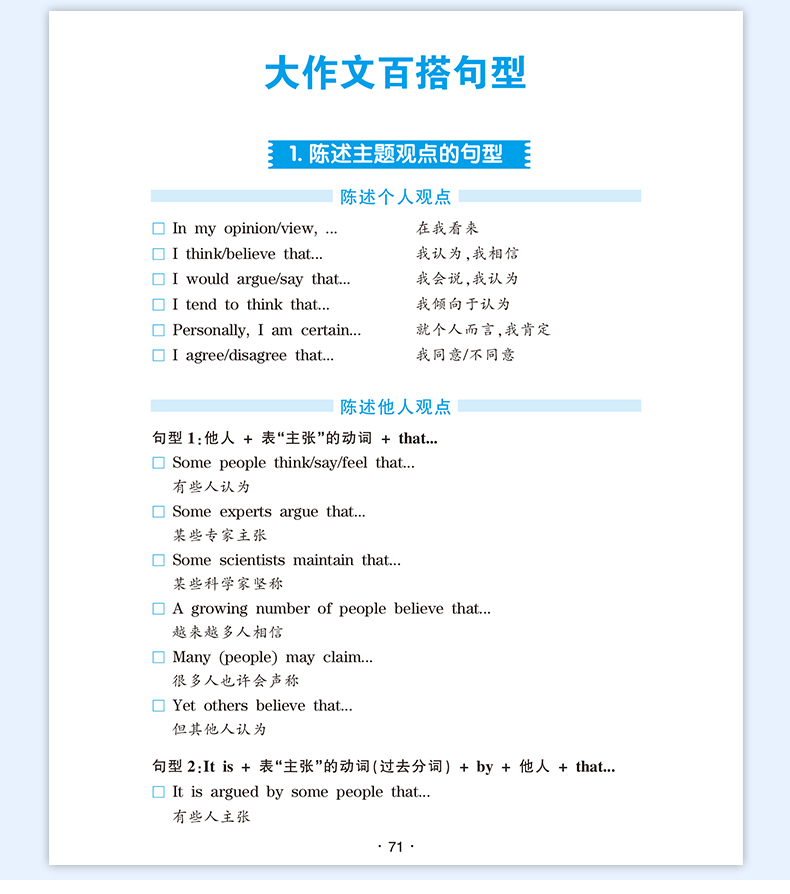 3. 总结大作文的常用展开方式和百搭功能句型,轻松理清写作思路,快速搭建行文框架。
