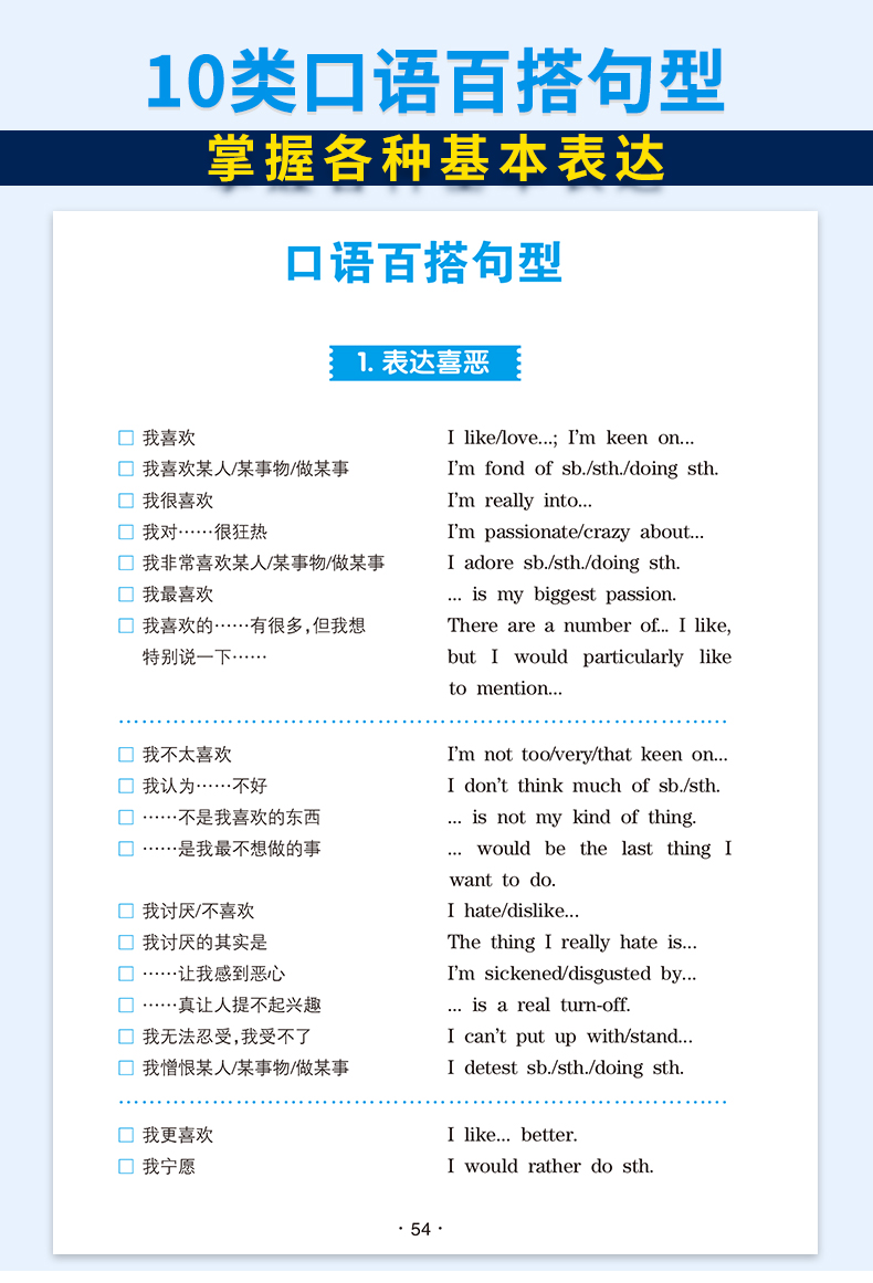 2. 归纳10类口语百搭功能句型,掌握各种基本表达,为流利说英文打通经脉。